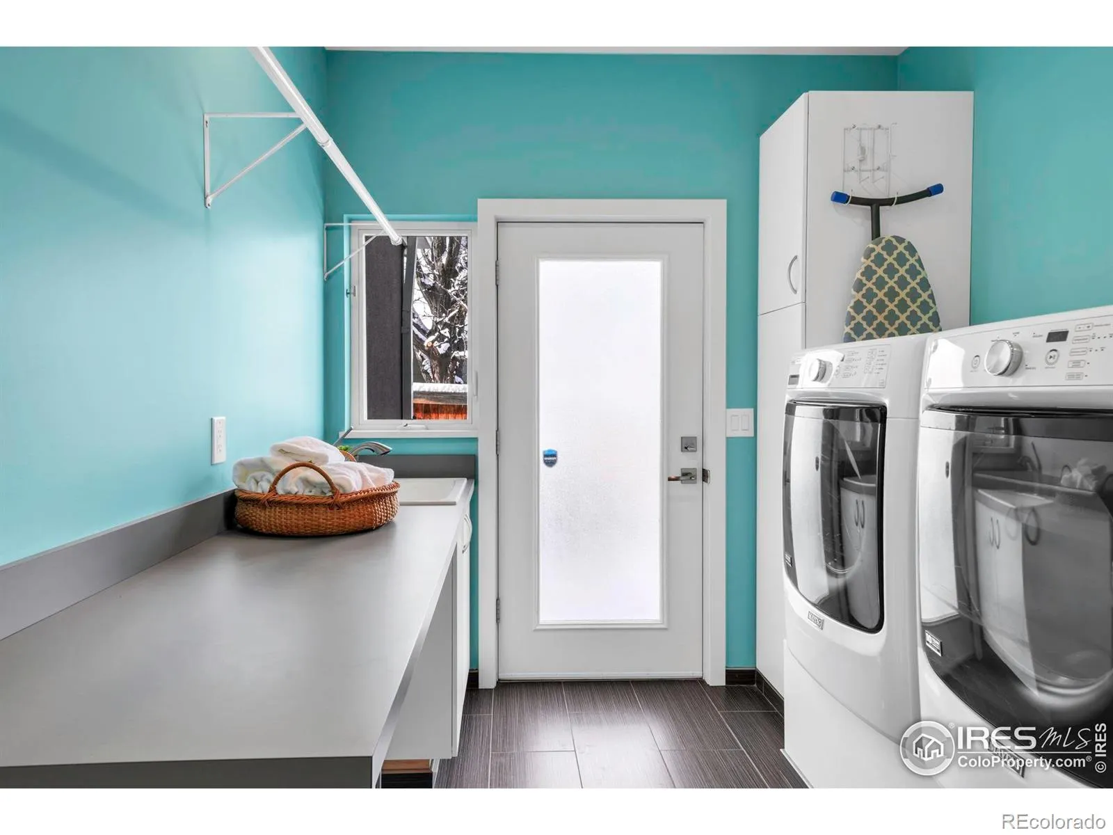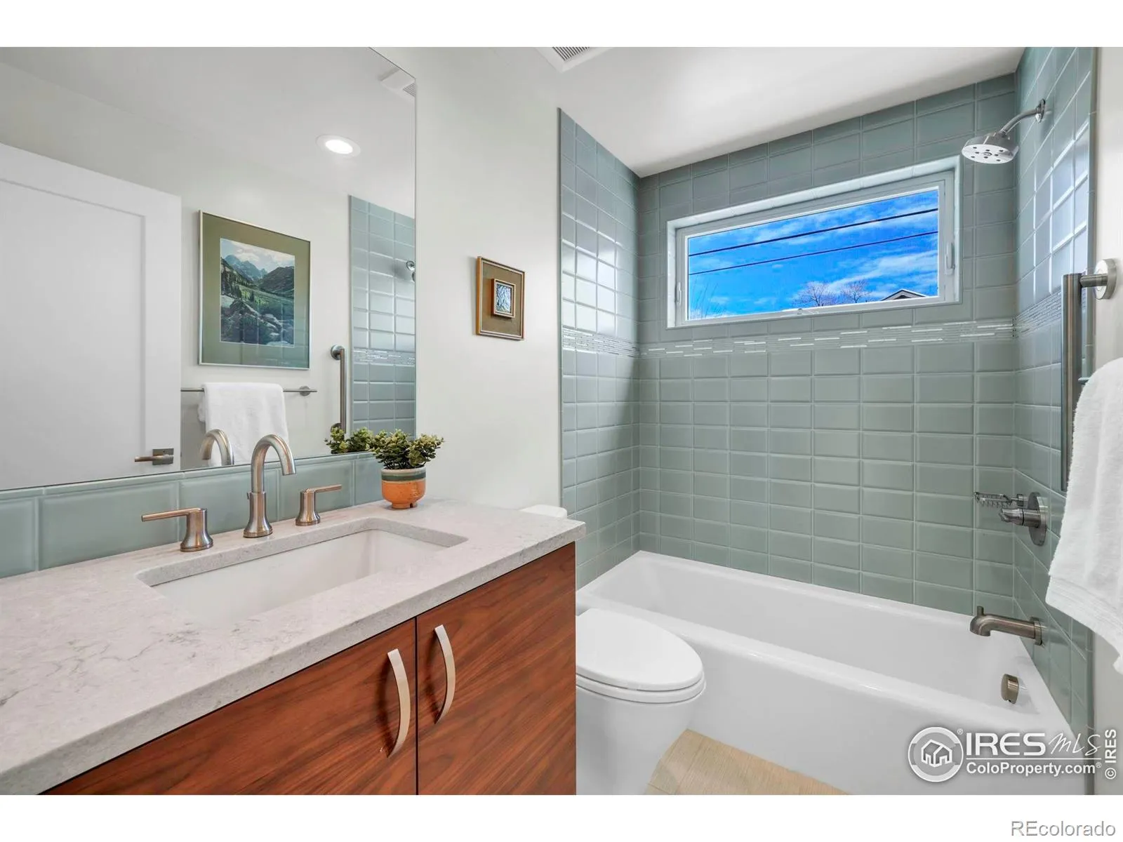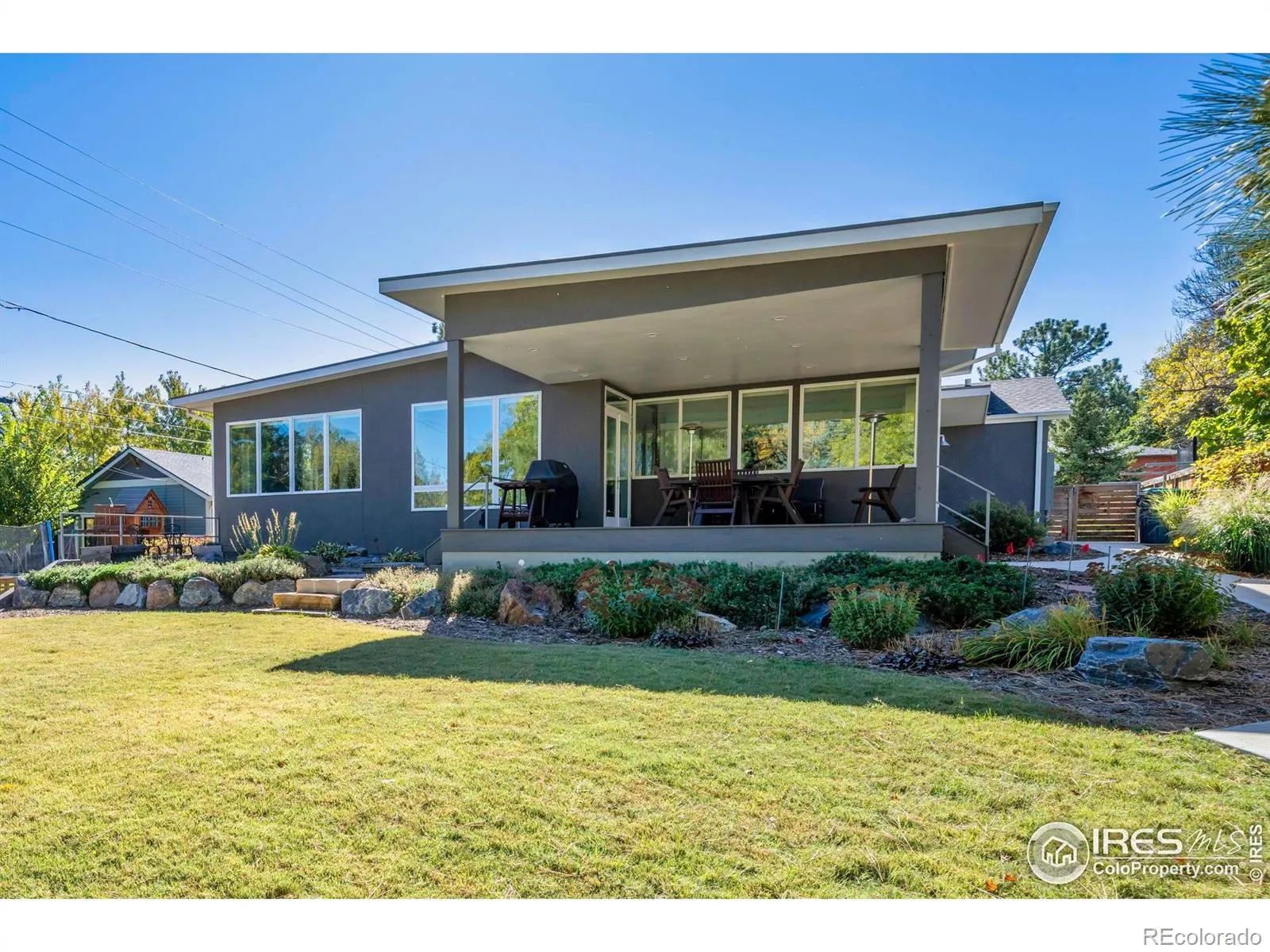 Whether you’re ready to enjoy single-level living in a fully ADA-designed contemporary home or need flexible space for a growing family, this exceptional residence delivers. From the moment you enter, you’re greeted by a dramatic wall of windows that floods the home with natural light and frames serene blue-sky views. Set on an expansive 11,219-sq-ft lot, the property offers mature trees, multiple outdoor living spaces, and a fully landscaped perennial garden surrounding a lush lawn of low-maintenance xeriscape buffalo grass. Double glass doors open to a generously sized covered deck with no-maintenance composite flooring, seamlessly extending the living space outdoors. The chef’s kitchen is a standout, featuring stainless steel appliances including an induction cooktop and counter-depth refrigerator, expansive Caesarstone countertops, and custom Wedgewood cabinetry offering exceptional storage. A pocket door leads to a large laundry/mudroom with raised washer and dryer, generous counter space, and a wall of custom shelving that doubles as an extended pantry. The open living and dining areas are ideal for entertaining or relaxing beside the modern gas fireplace. The main-level primary suite is thoughtfully designed with a zero-entry shower, radiant heated floors, and floating Wedgewood cabinetry. The walk-in closet features custom wood shelving, a detail carried throughout all closets in the home. Also on the main level are a second full bath, a bedroom currently used as an exercise/craft room, and a spacious office that could easily serve as another bedroom. Down the striking glass-encased stairs, you’ll find two sun-filled bedrooms, a full bath, and a comfortable living area-perfect for guests or kids who want their own private retreat. Energy-efficient with low utility bills and an EV-ready garage, this thoughtfully custom-designed home leaves no detail overlooked.