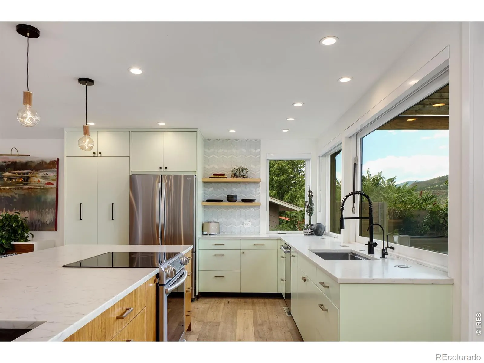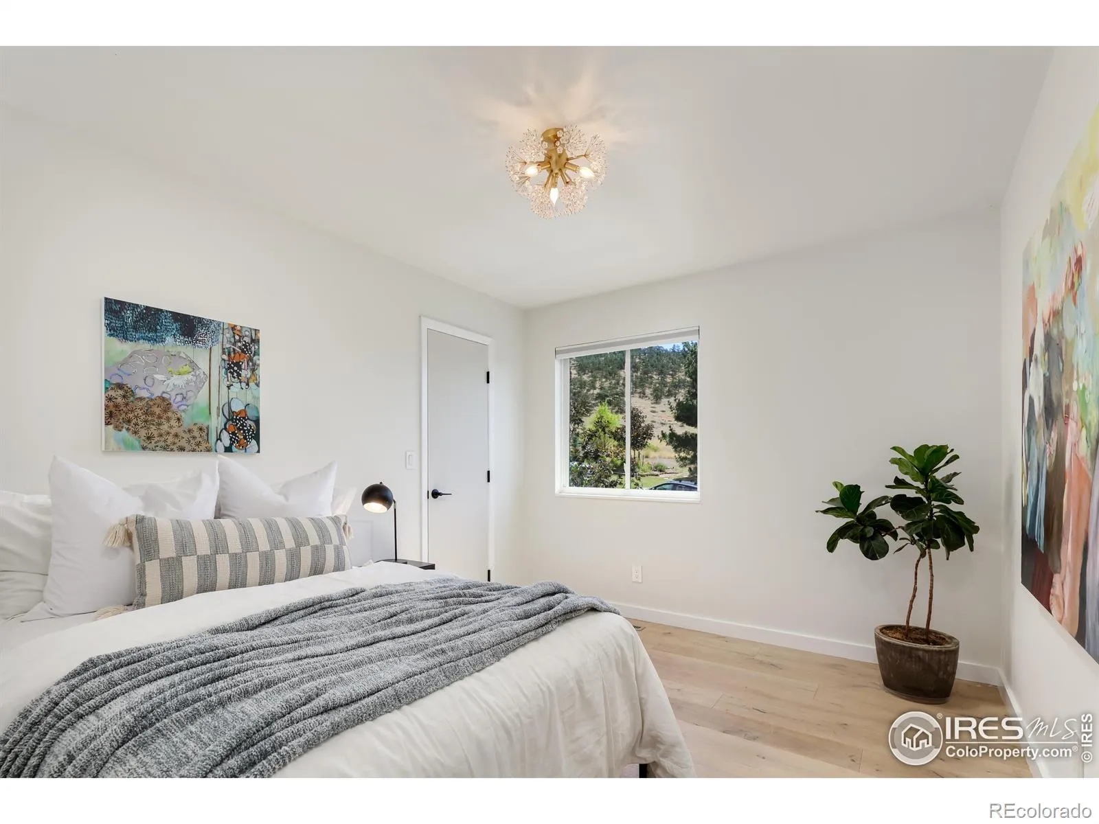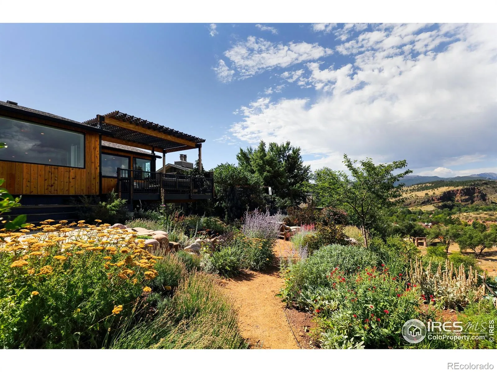 Poised above Lyons with what may be the region’s most commanding views, this modern four-bedroom, four-bath residence feels like stepping into a Monet – with Colorado as the canvas. Walls of glass transform Longs Peak and Steamboat Mountain into an ever-changing work of art. A pass-through window opens to the deck, where sunsets and mountain air elevate every meal. Lush, tiered gardens spill with seasonal color, leading to stone patios and a pergola that invite lingering conversations well into the evening. Inside, clean architectural lines and wide-plank oak floors create a harmony of warmth and design. Open-plan living spaces flow effortlessly yet retain an air of intimacy, while the bedrooms are scaled with comfort and livability in mind. The chef’s kitchen, anchored by an expansive custom island, opens gracefully into curated living and dining areas, making it both refined and effortless. Separate guest quarters, complete with kitchenette and private patio, provide visitors with independence wrapped in style. And when you desire connection, a brief golf cart ride carries you into the heart of Lyons for Moxie coffee, Marigold dining, or world-class music under the stars. In a county celebrated for extraordinary homes, this one stands as a true original offering elegance, livability, and unmatched views.