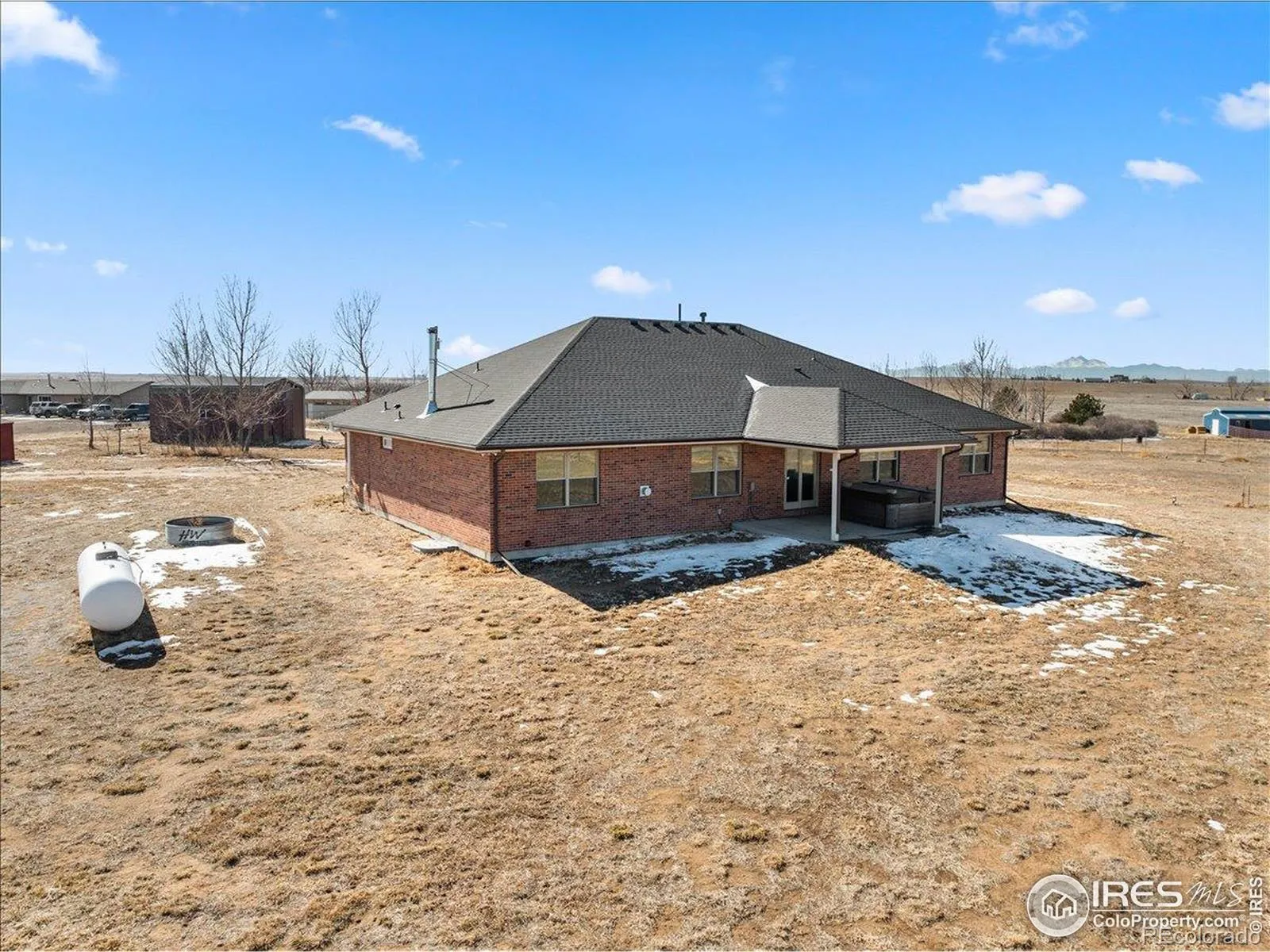 Escape the noise and discover peaceful living in this beautifully updated custom brick ranch, set on a serene rural lot with wide-open views in every direction. Thoughtfully designed for both comfort and functionality, this home is the perfect blend of country charm and modern convenience. Step inside to a spacious, sunlit interior featuring a large chef’s kitchen with brand-new granite countertops, pantry, and premium KitchenAid appliances including double ovens, refrigerator, dishwasher, and induction stove. Whether you’re entertaining or just enjoying a quiet meal, this kitchen is the heart of the home. Recent upgrades include a new roof, new carpet, and fresh interior paint, giving the home a clean, move-in-ready feel. The cozy living room is anchored by a propane fireplace, while an additional sitting area wired for surround sound offers the perfect spot for movie nights or relaxing with music.Work from home in style with a main-floor office accessed through elegant French doors. The primary suite is a true retreat, featuring a walk-in closet and a spa-inspired en-suite bath with dual-head shower, copper sinks, granite counters, and tile floors. Secondary bathrooms echo the same quality finishes for a cohesive, upscale feel. Downstairs, the newly finished basement adds even more flexible living space with a dry bar, 3/4 bath, wood-burning stove, a large multi-use flex room, and a generous unfinished area perfect for hobbies or storage. Outside, entertain on the back patio, or tinker in the outbuilding. Located just 15 minutes from Fort Lupton, Hudson, and Platteville, and with easy access to I-76 and Hwy 85, you’re never far from what you need – but always far enough to enjoy the peace and privacy of country living.