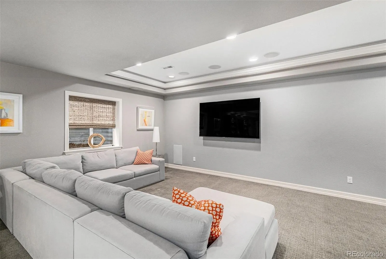 Updated & move in ready in The Hearth at Highlands Ranch! This stunning Shea Homes Hawthorne model offers the largest floor plan in the neighborhood with 6 bedrooms, 5 bathrooms, and 5,109 total square feet (3,641 above grade/4,564 finished), plus a 3-car garage and exceptional indoor-outdoor living. Soaring ceilings and a light, bright, open layout welcome you inside. The gourmet kitchen features a gas cooktop, stainless steel appliances, slab granite countertops, a huge center island, and a spacious breakfast room-perfect for everyday living and entertaining. The dramatic two-story great room showcases a gas fireplace with stone accents. The main floor includes a guest suite/study with a ¾ bath, formal dining room, and convenient laundry room with utility sink. Refinished hardwood flooring, new designer carpet and paint throughout make the home shine. Upstairs, the luxurious primary suite offers a spa-like five-piece bath with oval soaking tub, a walk-in shower with dual heads and a large walk-in closet. Three additional spacious bedrooms each enjoy access to two full bathrooms, including one ensuite. A third-level loft/bonus room provides flexible space for a home office, 2nd media room, or playroom with views of The Denver Tech Center. The fully finished basement is an entertainer’s dream with a media/theater room, recreation/game space, an amazing custom wet bar with wine refrigerator and ice maker, a 6th bedroom or office, and a ¾ bath. Enjoy multiple outdoor living spaces including a covered front porch and a beautifully landscaped backyard with patio and gas fire pit. Additional highlights include high-efficiency HVAC, water softener, and designer finishes throughout. Ideally located just minutes from Park Meadows, DTC, shopping, dining, and major highways including C-470, E-470, and I-25. Close to RidgeGate, Sky Ridge Medical Center, light rail, and within walking distance to parks, sports fields, rec center, and miles of scenic trails.