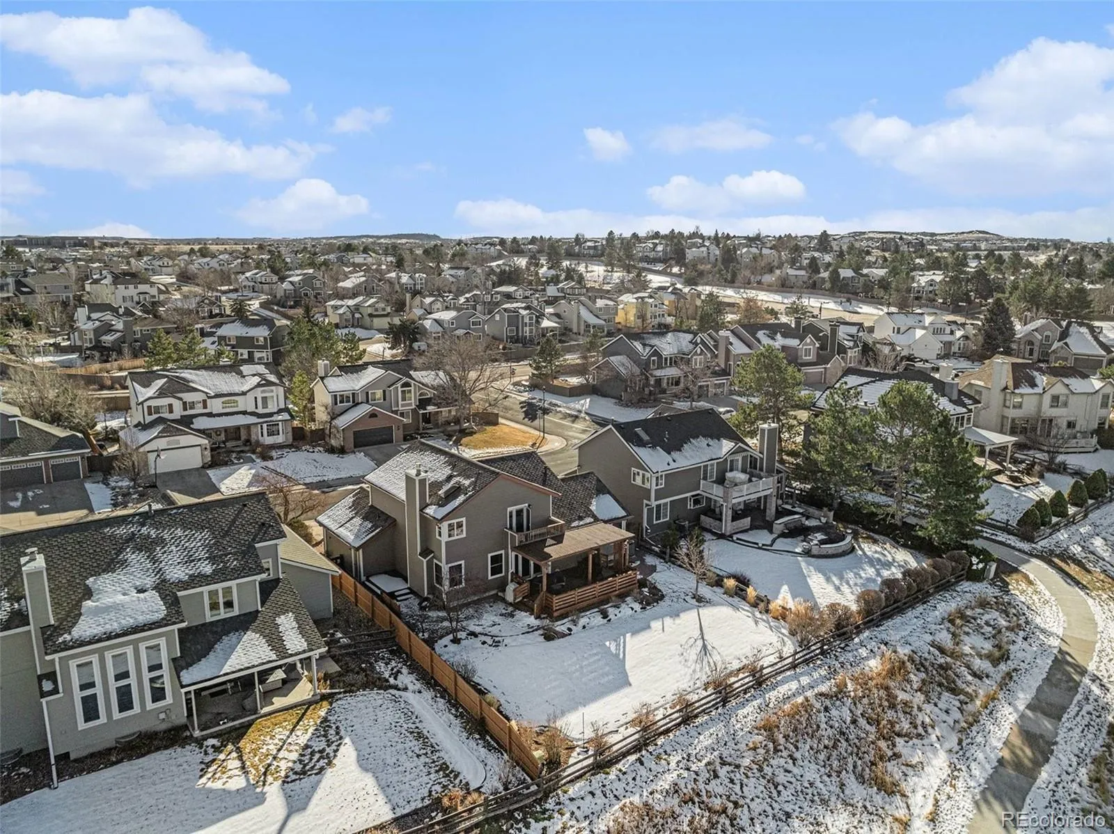 Gorgeous Highlands Ranch Home on a Spectacular Open-Space Lot with the Most Amazing Panoramic Views That You Will Find! This stunning residence offers exceptional indoor and outdoor living, backing to open space and showcasing breathtaking views from multiple vantage points. Enjoy a beautifully manicured yard with a large redwood deck, pergola, and expansive outdoor entertaining areas—perfect for relaxing or hosting guests. Inside, the light-filled, open floor plan features soaring ceilings and refined finishes throughout. The spacious kitchen is a chef’s dream with stainless steel appliances, built-in refrigerator, Bosch dishwasher, wine refrigerator, center island, and a large breakfast nook. The inviting family room includes a cozy gas fireplace, complemented by plantation shutters. Custom paint, top-down/bottom-up blinds, and refinished hardwood floors complement the main floor living areas. The main level also includes formal living and dining rooms, a convenient laundry room, and a ¾ bath. Retreat to the incredible primary suite featuring a private deck with sweeping panoramic views, an updated spa-like bath, and a walk-in closet. Two additional bedrooms and a full bath complete the upper level. The finished basement expands the living space with a large recreation room, guest suite or fourth bedroom, ¾ bath, and a second laundry hookup—ideal for guests or multigenerational living. Recent upgrades include a new composition shingle roof, newer windows, Phyn leak detection system, saline water softener, and smart irrigation system. Ideally located just minutes from Highlands Ranch Town Center, Park Meadows, DTC, and major highways including C-470, E-470, and I-25. Close to RidgeGate, Sky Ridge Medical Center, light rail, parks, recreation centers, sports fields, and miles of scenic trails.