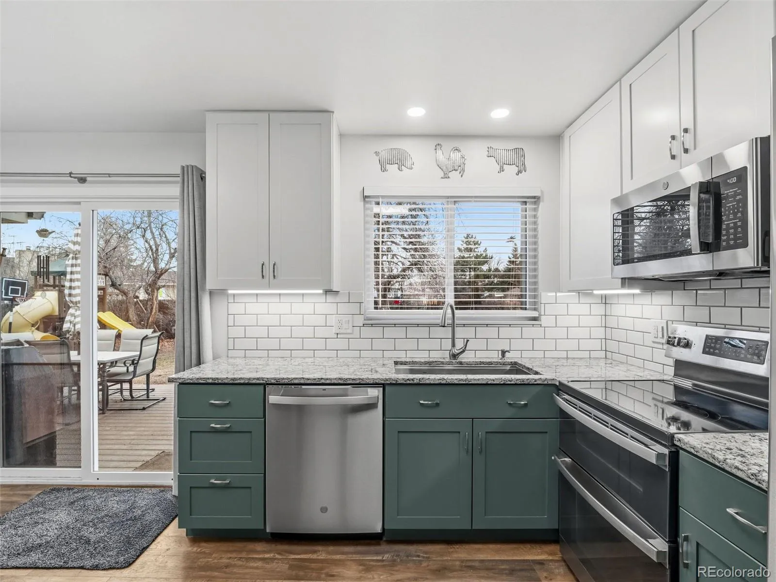 Beautifully updated tri-level home in the desirable Kingsborough neighborhood! The sleek, modern kitchen was updated in 2025 and showcases newer cabinetry, stainless steel appliances, a stylish tiled backsplash, and granite countertops. The open floor plan features newer flooring throughout and a spacious bedroom with a walk-in closet. Step outside to a large, level backyard complete with a deck—perfect for entertaining, family gatherings, and outdoor enjoyment. Just a short stroll to the newly renovated Horseshoe Park, and ideally located near Aurora Town Center, I-225, I-70, and an array of shopping and dining options. A wonderful opportunity in a prime location!