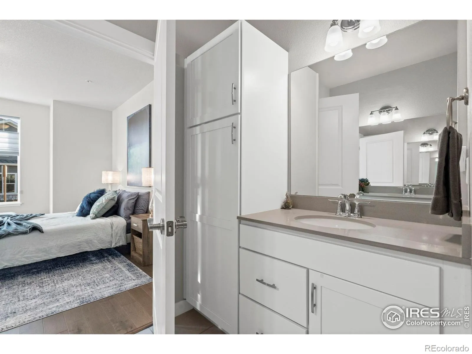 Easy living starts the moment you arrive in this main-floor condo at The Lakes! Designed for a true lock-and-leave lifestyle, this well-located unit puts everyday convenience front and center, with quick access to the shops, dining, and entertainment found throughout the Centerra area. Lovingly maintained by the original owners, this 2-bed, 2-bath unit shines with major upgrades already completed, creating a polished, move-in ready space that feels fresh and welcoming from the moment you arrive. Inside, the open main living area draws you in with abundant natural light and engineered hardwood flooring throughout, creating a seamless flow that’s perfect for everyday living. The kitchen features quartz countertops, stainless steel appliances including a new refrigerator, generous prep space, and ample storage that keeps everything organized and within reach. Tucked neatly into the layout is a cozy office or study nook, perfect for focused work, creative projects, or a quiet reading corner without sacrificing the openness of the living space. The primary suite offers a relaxing escape with its own ensuite bathroom and a walk-in closet. Both bathrooms are finished with ceramic tile flooring, adding durability and a cohesive look that complements the rest of the home. A one-car garage adds secure parking and storage, while additional driveway parking offers flexibility for guests or extra vehicles. The home sits adjacent to a community park and is surrounded by scenic walking trails that wind around nearby Houts Reservoir and Equalizer Lake. A few minutes west is Boyd Lake State Park, where you can enjoy more trails, plus boating and water recreation. A community unlike any other, The Lakes proudly stands as Colorado’s only Certified Community Wildlife Habitat, offering a rare blend of thoughtfully planned living and a deep connection to nature that truly sets it apart.