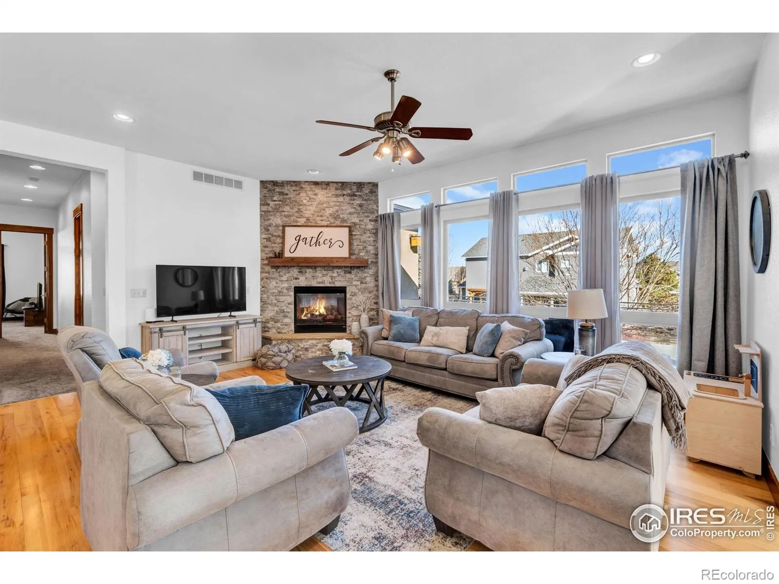 From the moment you step inside, this exceptional residence makes a statement with its striking entry and a seamless, wide-open flow through the living, kitchen, and dining spaces-designed for both everyday comfort and the best entertaining. The updated, chef-inspired kitchen is the heart of the home, showcasing upgrades at every turn: an expansive island, professional-grade gas oven/range, upgraded cabinetry, gleaming quartz countertops, and both an eat-in dining area and a separate formal dining room. The spacious living room features rich wood flooring and a stunning stone fireplace, creating a warm yet sophisticated atmosphere. A dedicated study offers the perfect work-from-home retreat. The main-floor primary suite is a true sanctuary, complete with a luxurious five-piece bath designed for relaxation and style. Downstairs, the fully finished walk-out basement impresses with an bar featuring custom cabinetry and countertops, a massive recreation room with a gas fireplace, two additional bedrooms with bathrooms, and abundant storage throughout. The home is radon-mitigated for added peace of mind. Enjoy outdoor living on the massive deck or lower level walk out patio, ideal for gatherings or quiet evenings. Additional highlights include a three-car garage and west facing driveway/east facing patio. This is a rare opportunity to own a truly custom home that blends luxury, functionality, and thoughtful design throughout with an incredible price.