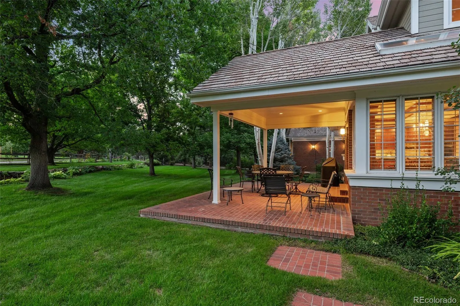 Outdoors, the beautifully landscaped grounds are enhanced by subtle up-lighting, creating exceptional curb appeal. Backing to open space and located near the Highline Canal, this elegant home offers privacy, scale, and endless potential in an enviable setting.