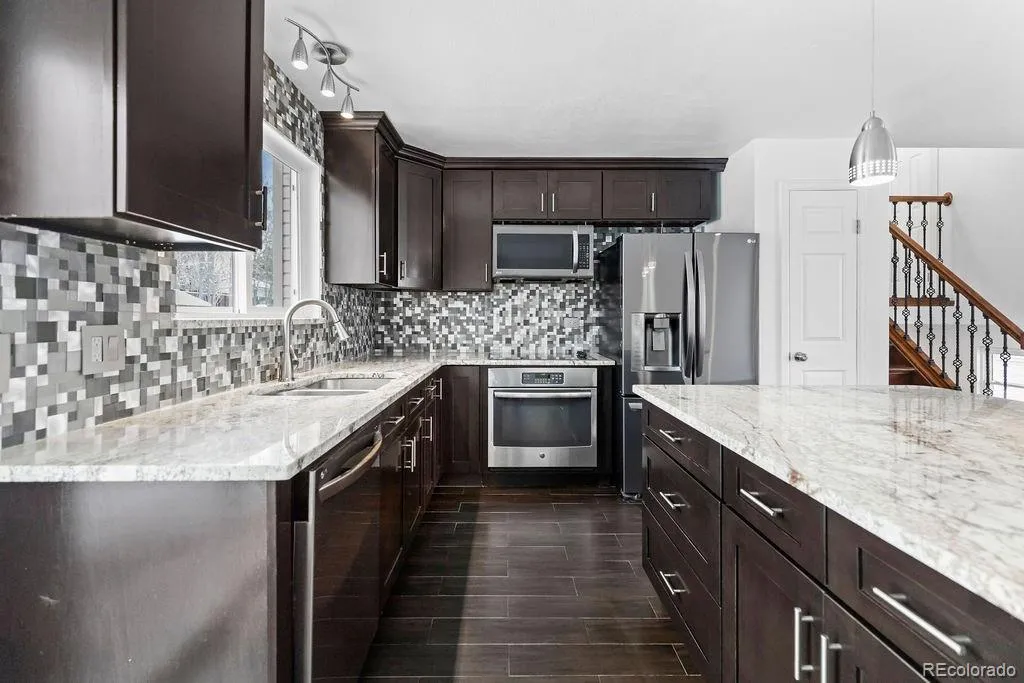 Designed for the way people actually live, this thoughtfully updated tri-level home blends modern comfort with flexible spaces in the established Grange Creek neighborhood. Clean lines, fresh finishes, and abundant natural light set the tone the moment you step inside, creating an inviting backdrop for both everyday life and entertaining. At the heart of the home, the main-level kitchen anchors the space with generous counter surfaces, a large island, and an easy flow into the adjacent family room, ideal for hosting, gathering, or simply staying connected. Bright windows and an open feel enhance the sense of space, while durable flooring ties the main living areas together with a cohesive, contemporary look. The upper level offers two spacious bedrooms and a refreshed bathroom with timeless design elements, providing comfortable, private retreats. Downstairs, the lower level expands the home’s versatility with a secondary living area, an additional bedroom, a stylish three-quarter bath, and a conveniently placed laundry space… perfect for guests, work-from-home needs, or multigenerational living. Outside, a fully fenced backyard creates a private escape with room to relax, entertain, or customize to your lifestyle. Recent system updates add peace of mind, while the home’s location offers easy access to parks, schools, shopping, and commuter routes.
