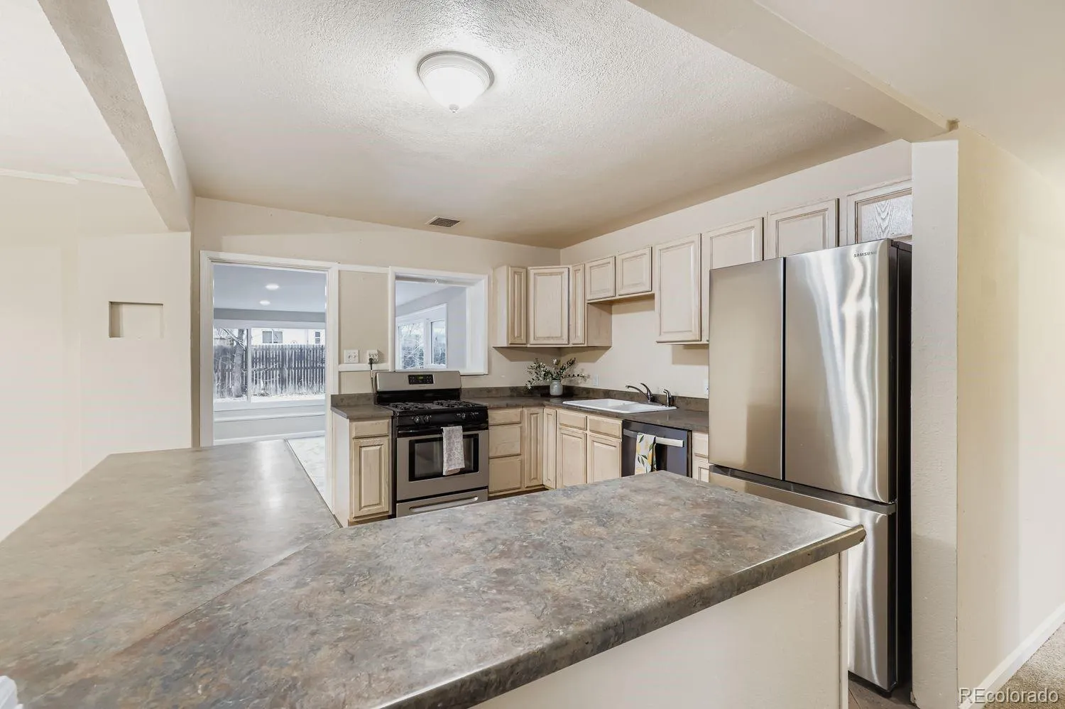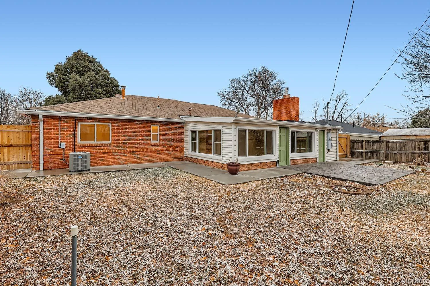 Classic mid-century red-brick ranch tucked between Anschutz Medical Campus and Del Mar Park. The bright open-concept floor plan centers around a large open kitchen adjacent dining and living rooms, plus a large south-facing bedroom/office. A hallway leads to two comfortable bedrooms, a spacious hall bath with tub, and an east-facing primary suite with ¾ bathroom. Through the kitchen, find a cozy family room including a gas log fireplace and wall to wall windows, with easy access to the back patio and large backyard. A large laundry/wash room provides interior access to a convenient storage room off the southwest corner of home. Recent upgrades include a driveway and walkways surrounding the home (2025), new gutters (2025), refrigerator (2024) and water heater (2022) as well as various window upgrades (2025). Easy Access to Hoffman Park, Del Mar Park and Pool, as well as Stanley Marketplace/Central Park. Quick commute to Anschutz and Denver Tech Center, or take nearby RTD light rail to DIA or Downtown.