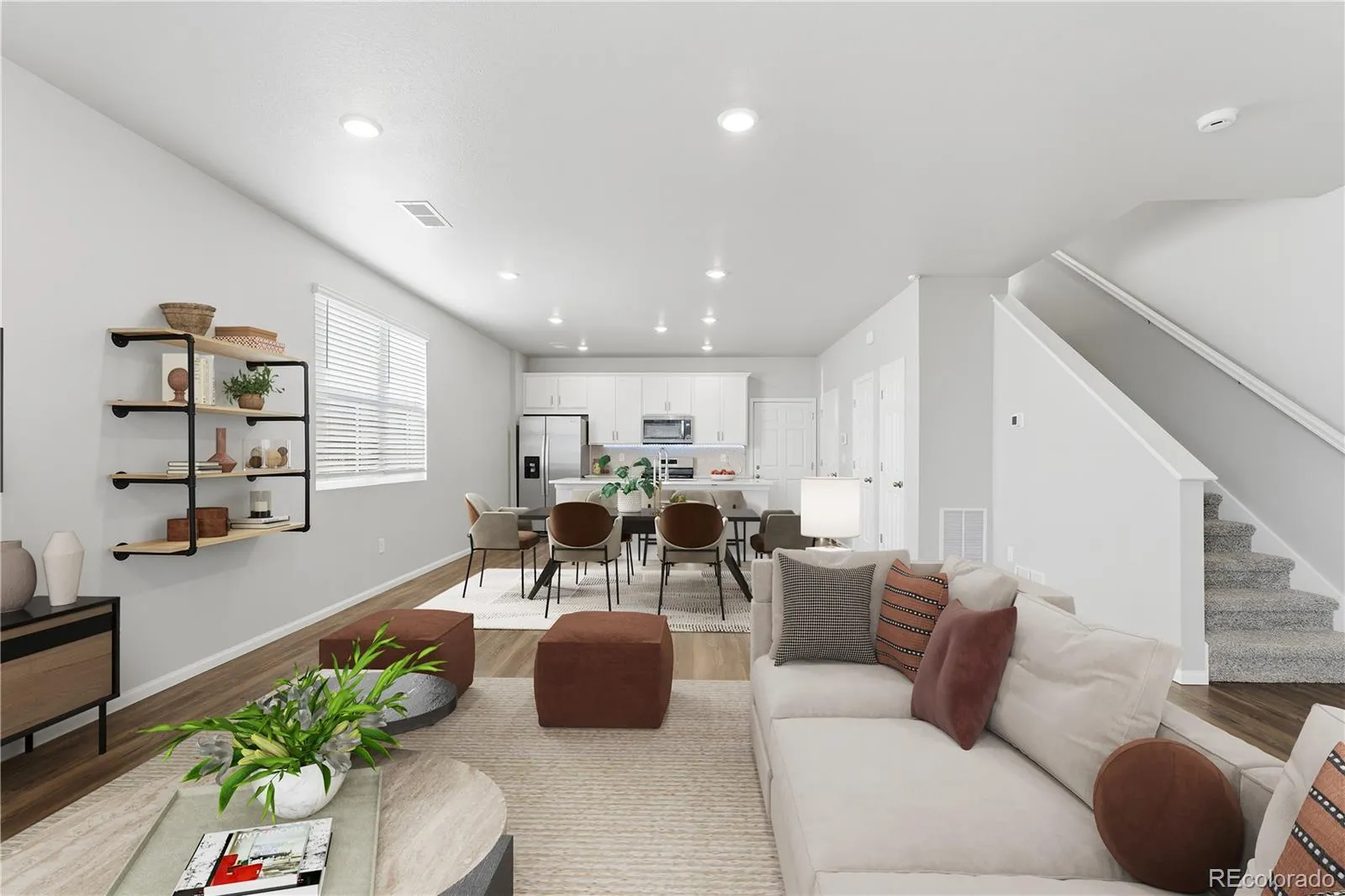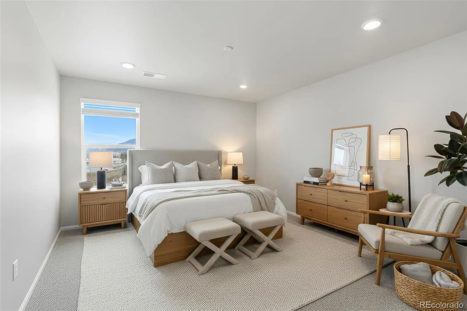 An exceptional opportunity to own a nearly new, sun-drenched corner townhome in the tranquil Dakota Ridge community. Thoughtfully designed and barely lived in, this residence captures breathtaking mountain views from nearly every room while offering a seamless blend of comfort and style. Step inside from the covered front porch to an expansive open-concept layout filled with natural light. The inviting living area is framed by oversized windows, creating a warm and airy atmosphere. At the heart of the home, the contemporary kitchen impresses with pristine white cabinetry, a large statement island, and sleek stainless steel appliances—ideal for both entertaining and everyday living. Retreat to the private primary suite, complete with a spacious walk-in closet and a spa-like bath featuring a walk-in shower. Two additional bedrooms and a versatile upper-level loft provide flexible space for guests, a home office, or creative use. A dedicated laundry room with washer and dryer and an oversized two-car garage add everyday ease. Perfectly positioned with direct access to scenic nature trails, this home offers an active outdoor lifestyle in a peaceful setting, while remaining just minutes from Littleton’s shopping, dining, and amenities.