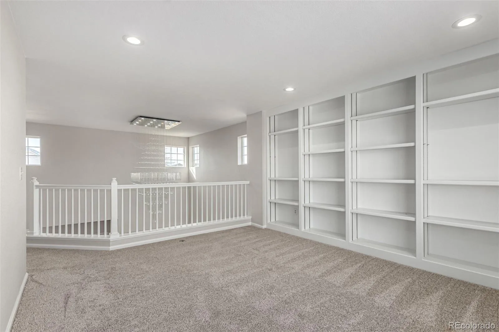 Upstairs, a cozy loft with built-in bookshelves awaits for reading or relaxing. The primary suite features a luxurious bath with dual sinks and an expansive walk-in closet, plus three additional spacious bedrooms and baths.