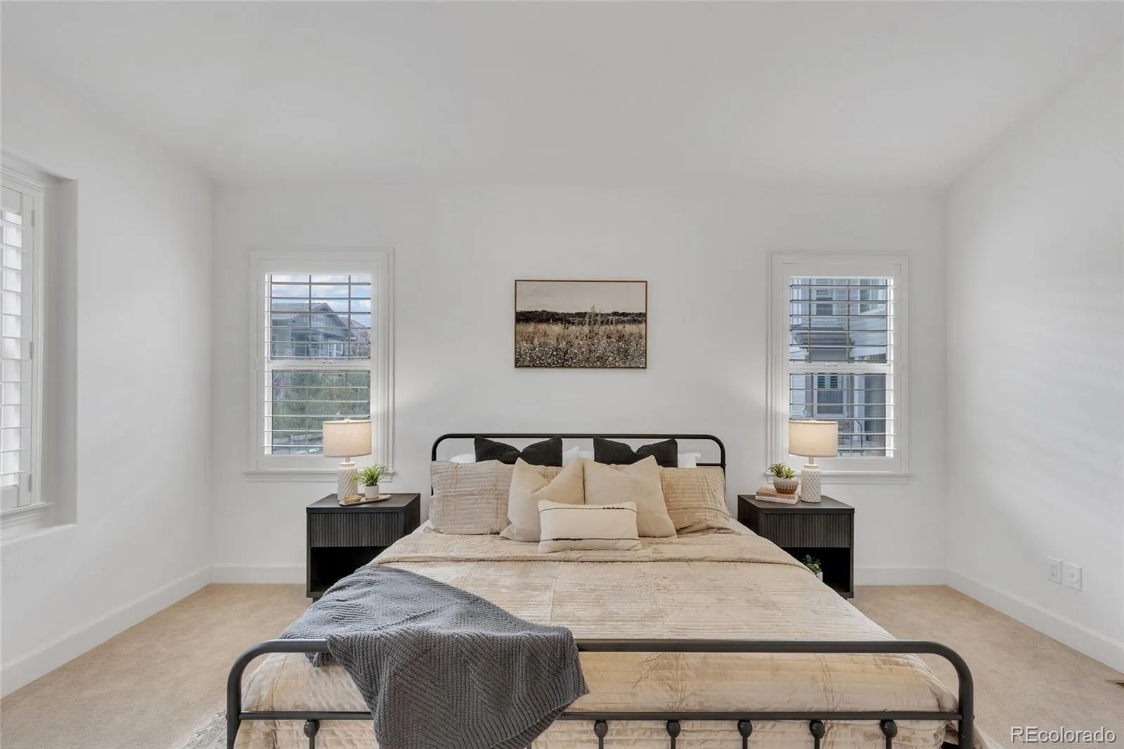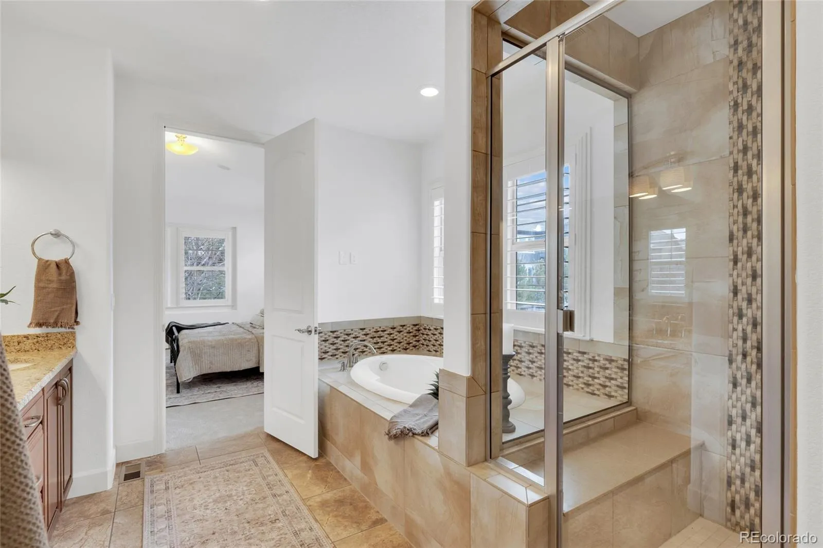 Luxury and effortless living meet in this stunning Shea-built ranch in the gated BackCountry community. Designed for comfort and flexibility, the home offers 6 bedrooms, 6 bathrooms, and a layout ideal for multigenerational living or hosting guests. The main level features vaulted ceilings in the primary suite and living room, creating an open, airy feel. The gourmet kitchen includes stainless steel appliances, double ovens, Masterpiece cherry cabinetry, and a walk-in pantry. Designer finishes throughout include Hunter Douglas shutters, granite and marble surfaces, premium tile, ceiling speakers, and refined architectural details. The main-floor primary suite is a private retreat with a spa-like five-piece bath, oversized shower, and walk-in closet. Two additional main-level bedrooms provide flexible living or workspace options. The finished basement adds three more bedrooms, three baths, a large gym room and a bonus room with built-ins. Outdoor living shines with a landscaped backyard, astro turf, mature plantings, flagstone patio, hot tub, and gas line for grilling. The west-facing driveway offers minimal snow buildup and extra parking. Additional features include two laundry rooms, paid-off solar, tankless water heater, air purifier, CAT-5 wiring, Tesla charger, new carpet throughout the entire home and extensive storage. A fully integrated Control4 smart home system includes in-wall panels, eight security cameras, smart lighting, climate control, intercom, and remote access. BackCountry residents enjoy a private clubhouse with resort-style pool, fitness center, spa rooms, wine bar, coffee shop, and vibrant community events—offering the best of Colorado living.