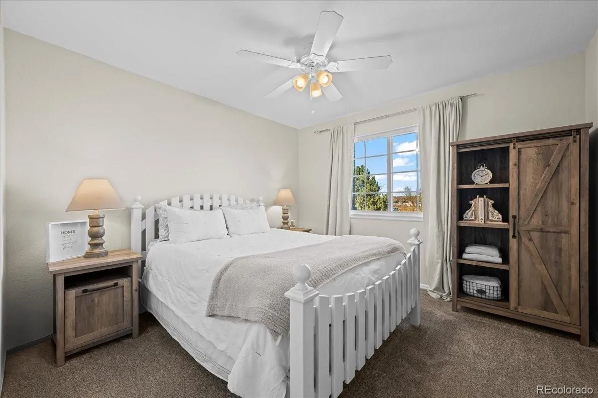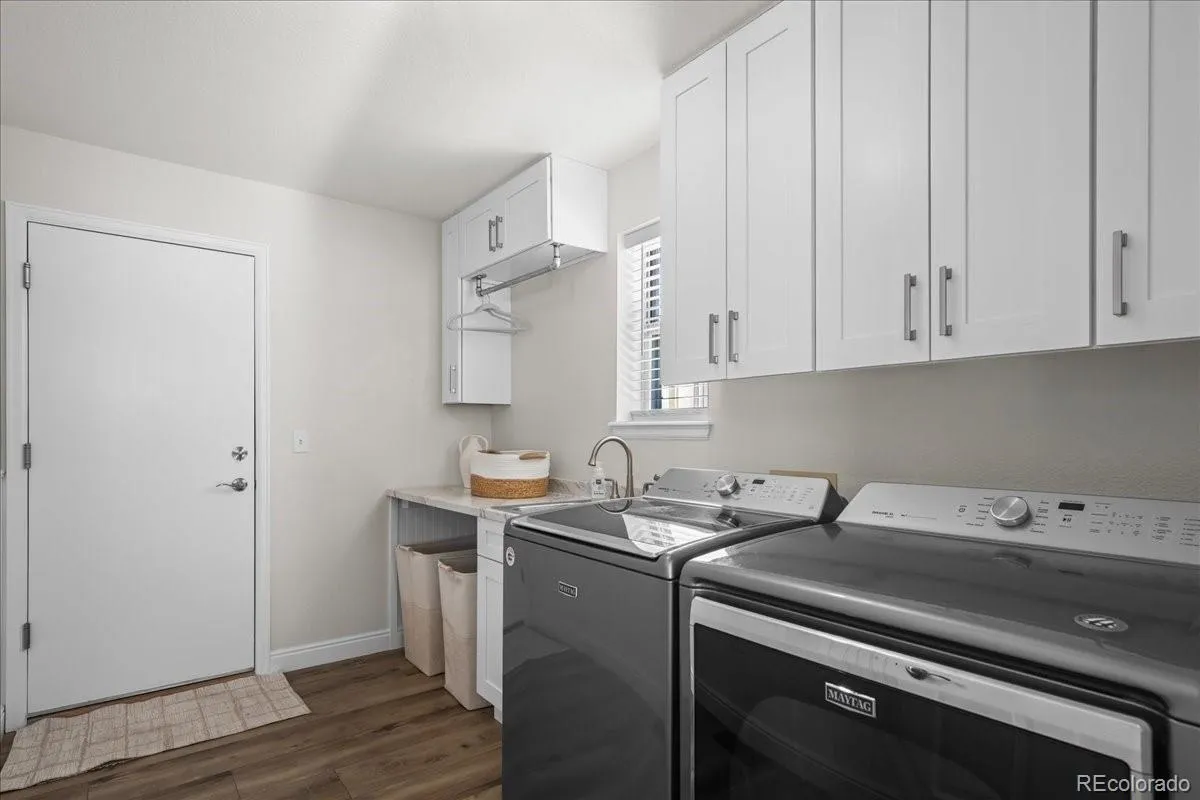 Beautifully updated and meticulously maintained, this stunning 5-bedroom, 3-bath home plus a dedicated office offers an exceptional blend of style, function, and future potential. A dramatic two-story foyer and two-story family room with a striking wall of windows and gas fireplace create a bright, welcoming atmosphere from the moment you enter. The gourmet kitchen is a true showstopper, featuring Bertazzoni appliances, Brazilian quartzite countertops, and a Moroccan Zia tile backsplash—perfectly complemented by luxury vinyl plank flooring that flows throughout the entire main level. Also on the first floor is a bedroom with an adjacent full bath, ideal for guests or multigenerational living, along with a private office. The large laundry room is thoughtfully designed with a washer and dryer included, utility sink, and folding counter. Upstairs, the spacious primary suite boasts vaulted ceilings, a 5-piece ensuite bath, and a walk-in closet. Three additional generously sized secondary bedrooms and a full bath with dual sinks complete the upper level. All bedrooms are equipped with ceiling fans, and one secondary bedroom features a walk-in closet. The full, unfinished garden-level basement offers abundant natural light and endless possibilities—ready for future expansion or ideal for storage as-is. An attached 3-car garage includes two dedicated 220v Outlets for EV Chargers for modern convenience. Step outside to a gorgeous, private backyard designed for relaxation and entertaining, featuring a Trex deck, lower-level patio, additional concrete patio space off the garage, and a separate paver area perfect for a fire pit. Fully fenced with garden areas and peek-a-boo mountain views, this outdoor space is a true retreat. A rare opportunity to own a thoughtfully upgraded home with exceptional indoor and outdoor living.