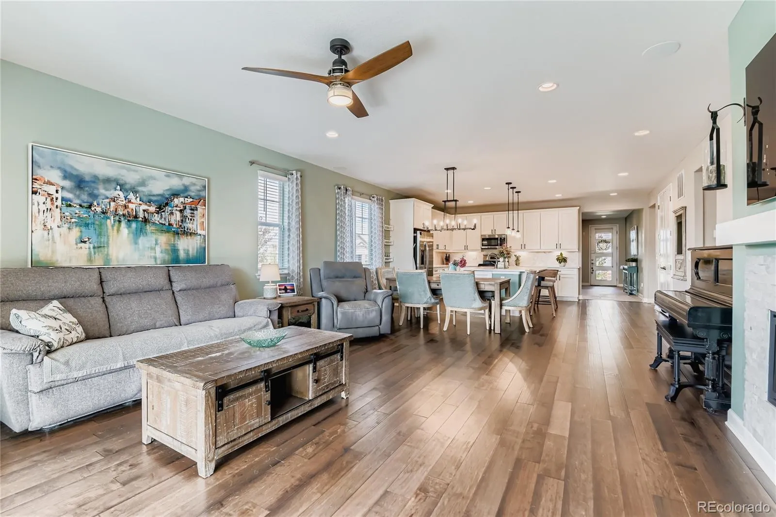 Welcome to this exceptional and like-new ranch on a premium corner lot in Collier Hills offering unparalleled privacy with no homes directly behind (land scheduled for elementary school to start in Spring-this home will be backing to softball and soccer fields of elementary school). This home incorporates nearly every available builder upgrade, a true value. The home is further enhanced by the seller’s addition of a fully paid for active solar system ensuring low utility bills. The upgraded gourmet kitchen is a chef’s dream, featuring an expansive center island, solid wood cabinetry, top-of-the-line appliances, quartz countertops, and large pantry. Flowing seamlessly from the kitchen the living room offers a stylish tile fireplace, integrated surround sound, and direct access to your private outdoor oasis: a 2-tier covered patio with pergola and a vibrant xeriscaped yard showcasing over 100 native perennial flowering plants and bushes. The oversized primary suite is a retreat with a coffered ceiling, spacious walk-in closet, and an upgraded 5-piece deluxe bath with a separate soaking tub and shower. Two additional main-floor bedrooms offer flexibility, with one perfectly suited as a study/home office. A convenient large main-floor laundry/mud room offers one level living with the washer and dryer being included. The finished basement offers a remarkable secondary living space with 9-foot ceilings, a large wet bar designed like a full kitchen (with quartz counters and extensive cabinetry), a spacious recreation room with surround sound, two additional bedrooms, and a versatile exercise/hobby room. The finished two-car garage features a 220-volt Powerhub for convenient electric vehicle charging, epoxy floor and additional storage space. Throughout the home you’ll find engineered wood floors, upgraded carpet, quartz countertops, and more. A dream home move in ready. Colliers Hill is a planned community with pools, clubhouse, parks, playgrounds, and trails.