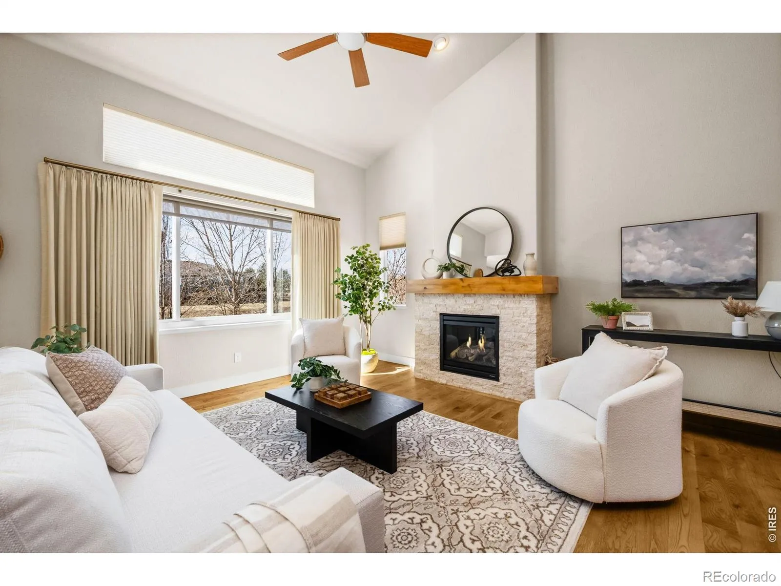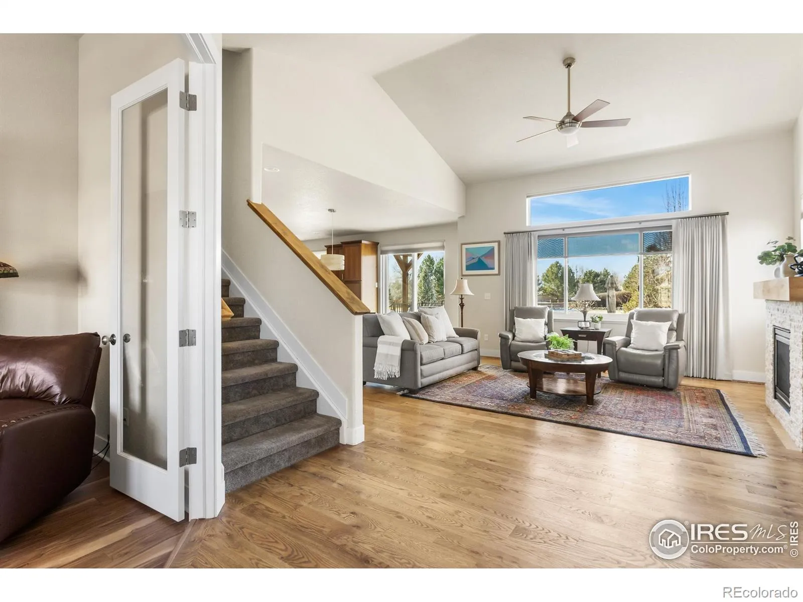 Welcome to the former model home with the BEST VIEWS! Beautifully maintained 4-bedroom, 4-bath home with a study in the charming Shadow Grass Park subdivision. Backing to open space and a trail, this property offers privacy, views, and a great connection to the outdoors with low-maintenance landscaping! The main level features a stunning kitchen with 42″ soft-close cherry cabinets with crown molding, granite countertops, wide plank hardwood floors, and newer appliances, including a brand new electric range, newer microwave (2024), and new dishwasher (2025). Vaulted ceilings, large windows with sunshades, and a stacked stone gas fireplace fill the living area with natural light and warmth while showcasing the open space views. The fully finished basement adds excellent flexibility with an additional bedroom, bathroom, and spacious recreation area. Premium carpet throughout, a high-efficiency furnace, tankless hot water heater, and central A/C round out this thoughtfully upgraded home. A rare opportunity in a prime Longmont location. This home really is a must-see!