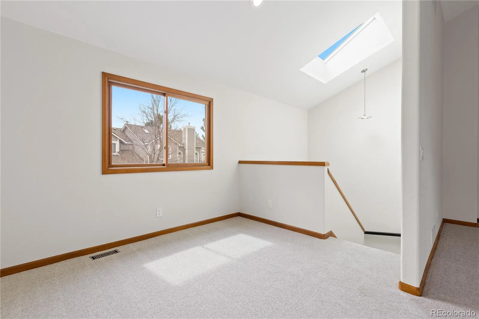 Welcome to this beautiful and fully updated townhome in the peaceful Spring Creek at Foxridge community. Extensive 2024–2025 high-end upgrades include solid oak hardwood floors on the main level, natural travertine tile found in the kitchen backsplash & primary bedroom fireplace surround, a fully remodeled chef’s kitchen with natural quartzite countertops, solid maple cabinetry in a modern biscotti stain, new natural granite in the bathrooms, marble countertops in primary bath, fresh interior paint, and stylish Kichler Galaxy lighting in the entry, hallway, living room, stairway, & dining area. Modern touches continue with rocker-style switches and outlets, satin nickel door hardware and registers, and a fully integrated Nest smart home system controlling the thermostat, doorbell, smoke & carbon monoxide monitoring—all via the Nest app. The 2-car garage adds convenience with a MyQ remote open/close system and keypad. The open-concept main level is designed for both comfort and entertaining, flowing seamlessly into the stunning new kitchen. Step out onto the private deck for effortless indoor-outdoor living. Upstairs, the primary retreat offers a sitting area, cozy fireplace, spa-like 5-piece bath, and an impressive walk-in closet. A full unfinished basement with bathroom plumbing already in place provides excellent potential for future bedrooms, a bath, or additional living space. Superb location close to DTC, light rail, Park Meadows Mall, Greenwood Athletic Club, Cherry Creek School District, and open space with trails next to the house. Enjoy immediate access to South Suburban open space and trail systems, perfect for walking, biking, and dog lovers. Trails connect to the High Line Canal and Platte River Trail with access to Chatfield State Park, Parker, and Downtown Denver. Centennial is known for some of the lowest property taxes in Colorado and offers South Suburban memberships, providing access to golf, tennis, pools, gyms, & more.
