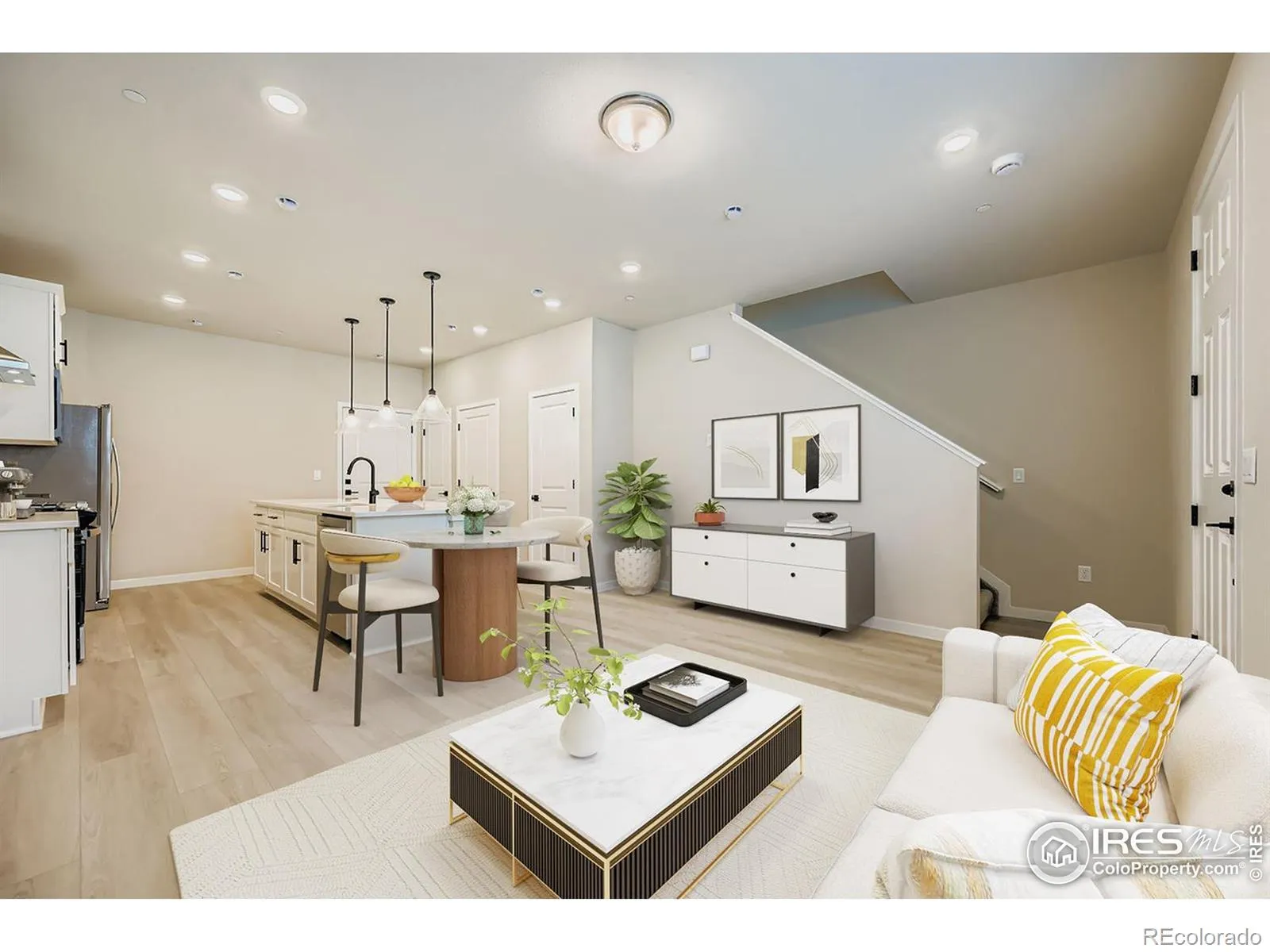 Welcome to this beautifully crafted brand new two-story townhome on Longmont’s sought-after southwest side, perfectly positioned near shopping, dining, Boulder, and quick access to I-25. Lots natural light, the open-concept design features soaring 9′ ceilings and large windows that enhance the home’s airy, inviting feel.At the center of the home is a sleek, modern kitchen with upgraded cabinetry, stainless steel appliances, and a generous island ideal for gatherings or everyday living. Well-appointed bedrooms offer walk-in closets and comfortable retreats, complemented by tasteful finishes throughout. Step outside to your private fenced yard-perfect for enjoying Colorado sunshine, pets, or a bit of gardening. With its blend of modern design, low-maintenance living, and prime location, this townhome truly offers the best of comfort and convenience.