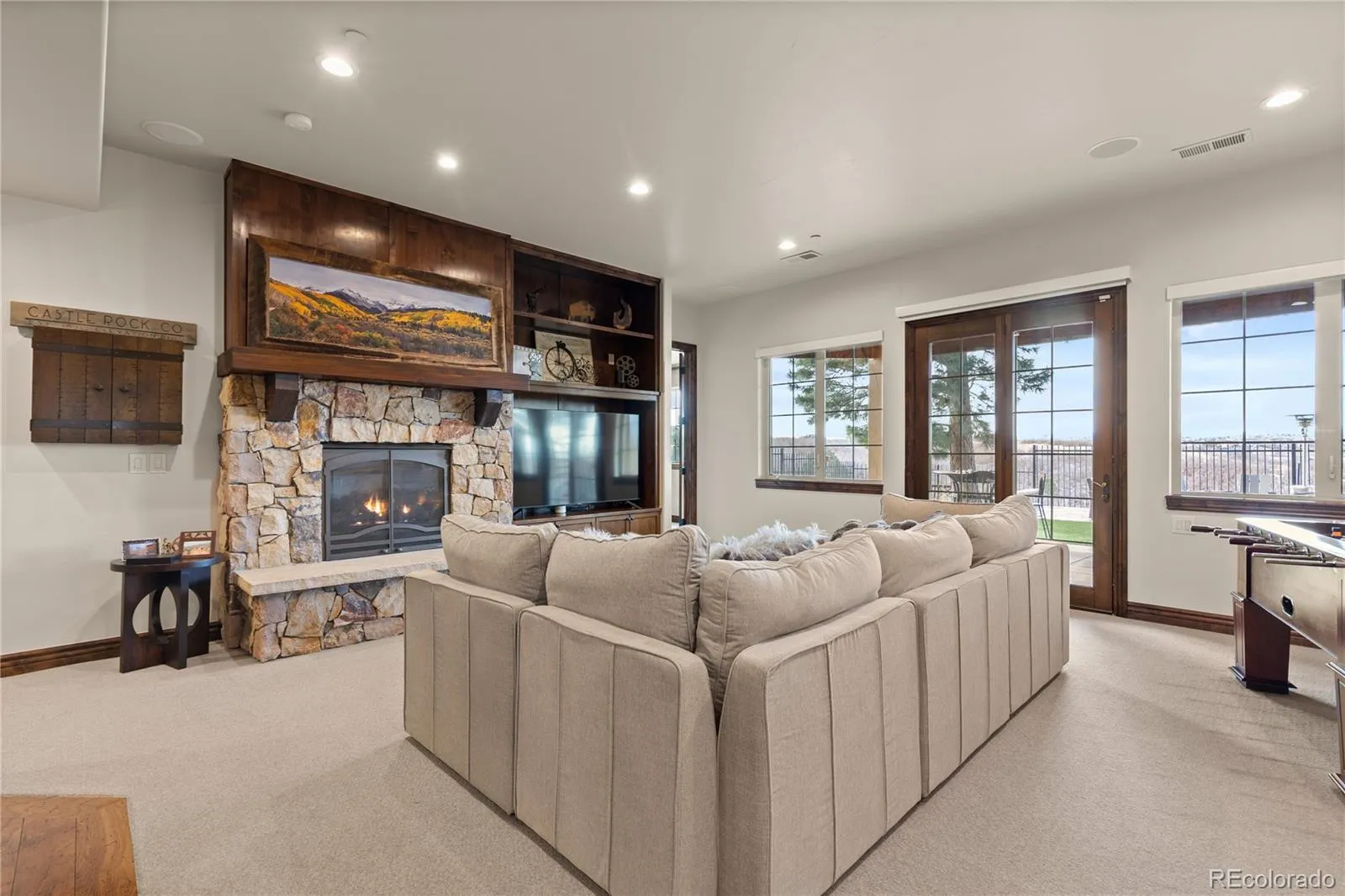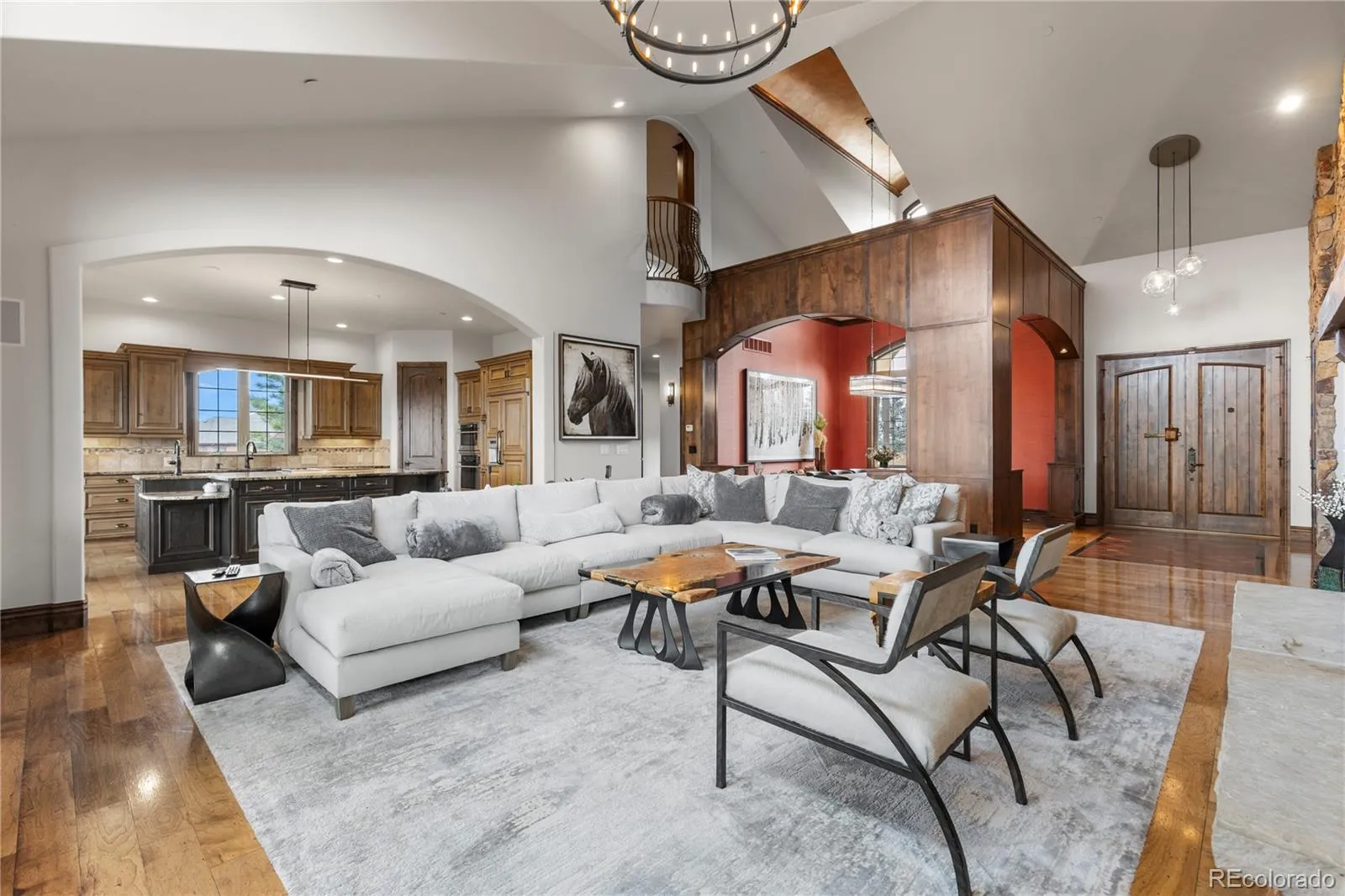 Imagine a Mediterranean-inspired multi-generational estate with warm terracotta stucco, exposed stone accents, Juliet balconies, and wrought iron details, perfectly paired with the rustic elegance of a custom Colorado mountain retreat. Inside, discover wide-plank hardwood floors, granite countertops, travertine tiles, hammered copper sinks, and alabaster vanities, all framed by breathtaking Rocky Mountain and open space views that are forever preserved by the property’s prime location. THIS is the home you’ve been dreaming of! The main residence offers an expansive layout with soaring vaulted ceilings and abundant living and storage space. Five bedrooms and five baths are thoughtfully designed, including a luxurious main-level primary suite featuring a steam shower, jetted soaking tub, travertine finishes, copper sinks, and a custom walk-in closet. The upper level boasts a private mother-in-law suite with a kitchenette, dining area, loft, bedroom, 3/4 bath, and office. The lower level is an entertainer’s paradise, complete with a pub-style bar, wine cellar, game room, gym, and additional bedrooms with ensuite and Jack-and-Jill baths. A separate carriage house provides a private living arrangement with a bedroom, bathroom, kitchen, and living/dining area, offering endless possibilities for guests or extended family. Outside, the sparkling pool, hot tub and pool cabana w/a 3/4 bath, newly installed pickleball court, built-in fire pit paired and covered patio, create the ultimate setting for year-around resort-style fun. The gated backyard playground, maintenance-free deck, and expansive patio make outdoor entertaining effortless. Set on nearly four acres backing to dedicated open space, this exclusive cul-de-sac property offers panoramic views from Pikes Peak to Mount Evans. Its ideal location near Castle Rock provides easy access to dining, shopping, the Outlets, Tony’s Market, and quick commutes via I-25 and Santa Fe. Welcome to your forever home!