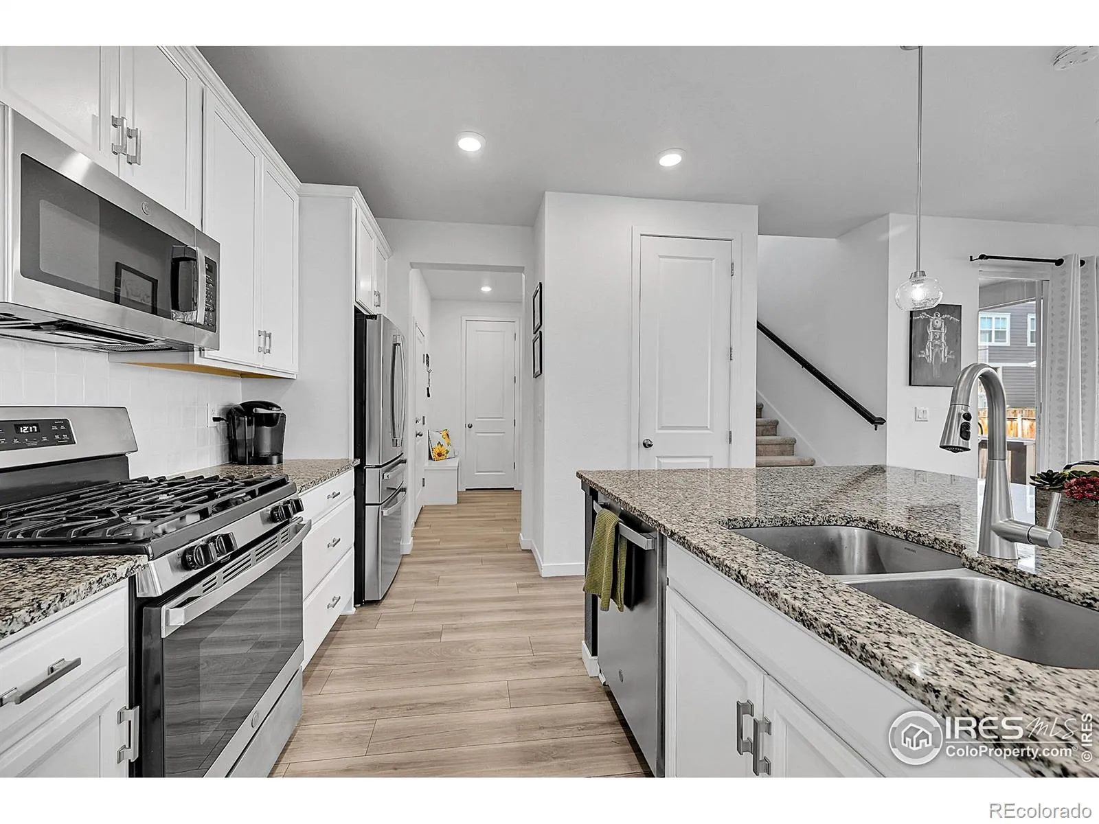 Welcome home to this beautifully updated paired residence by Lennar, featuring the sought-after Plateau floor plan and designer touches throughout. The heart of the home is a modern kitchen with a spacious oversized island, stainless steel appliances, 42-inch cabinets, and a gas range-perfect for cooking, entertaining, and gathering with loved ones. Upstairs, retreat to three generous bedrooms and two full bathrooms, including a luxurious primary suite with an impressive walk-in closet measuring 8’3″ x 10’8″. The main level offers an open, airy layout and a convenient powder room for guests. Downstairs, enjoy abundant storage or finish the basement to create the space of your dreams. Step outside to a backyard designed for relaxation and low maintenance, complete with covered patio and stamped concrete, turf, and a French drain system for peace of mind. This home blends comfort, style, and functionality