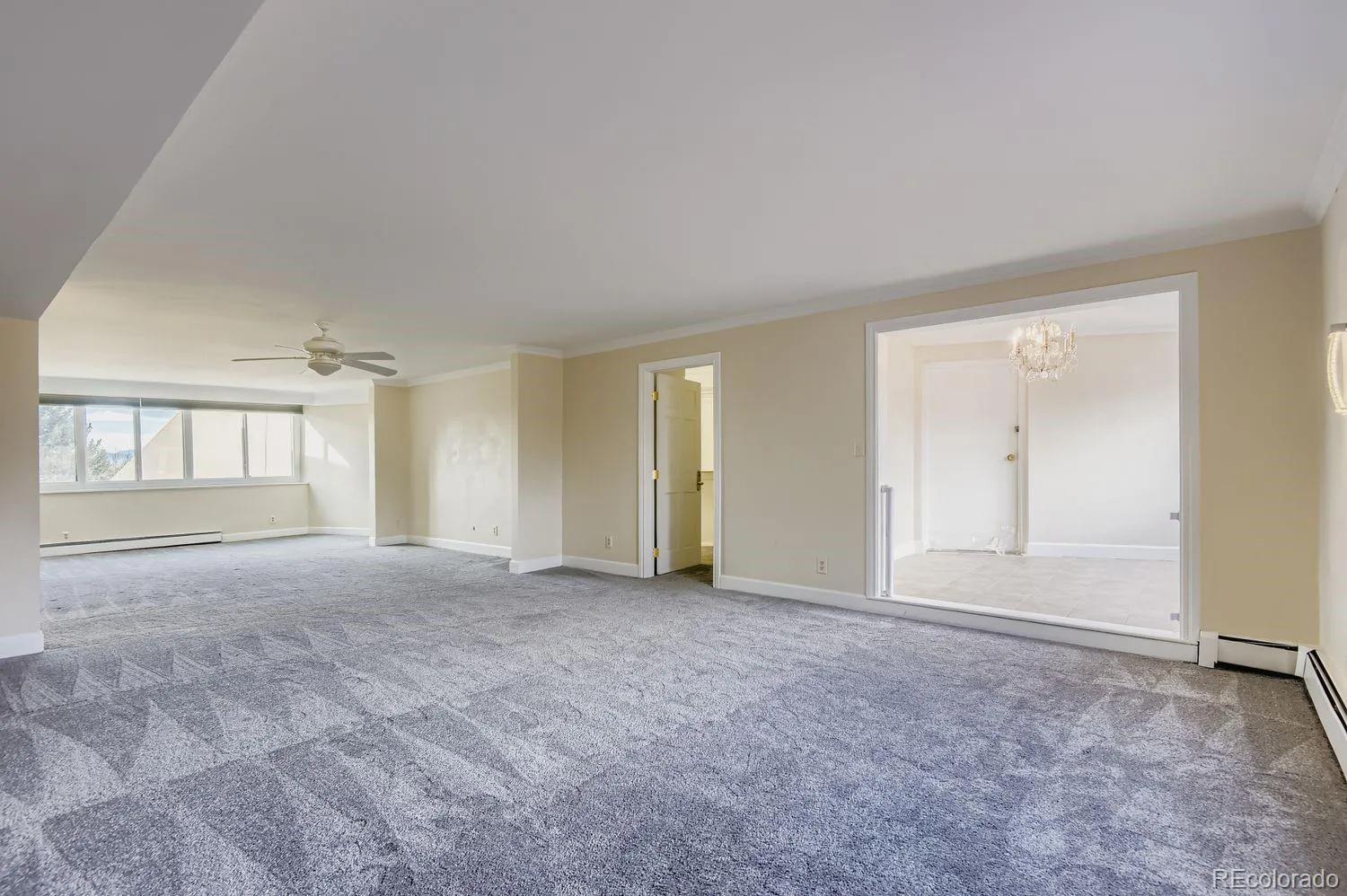 Enjoy elevated penthouse-style living with exceptional space, privacy, and breathtaking Front Range views in this top-floor 3-bedroom condo. Ideally located near the Denver Tech Center, light rail, and major highways, the home is set within a gated community spanning more than five acres of beautifully landscaped, park-like grounds. A welcoming foyer leads to a mudroom and coat closet, setting the tone for the thoughtful and spacious layout.