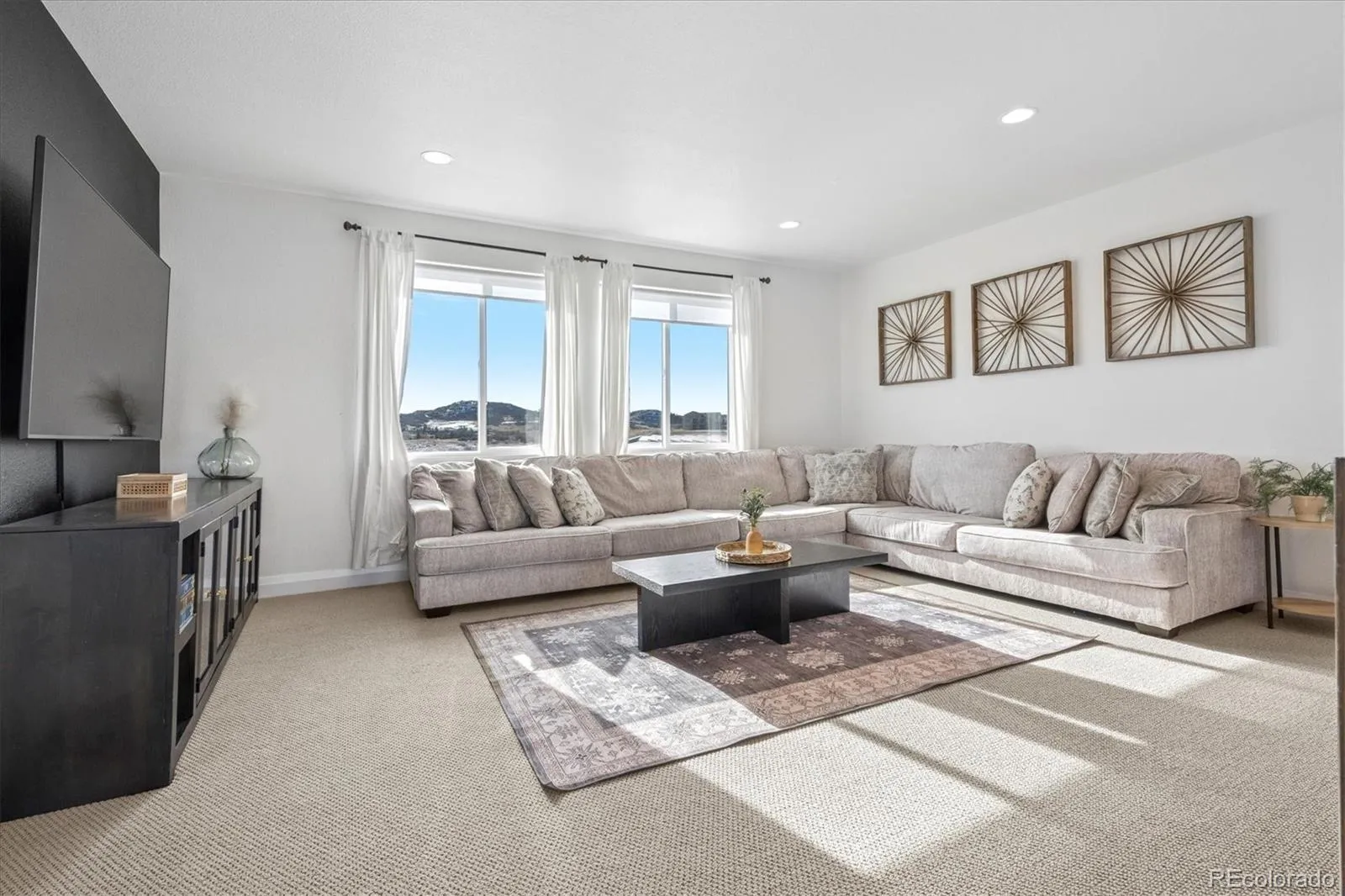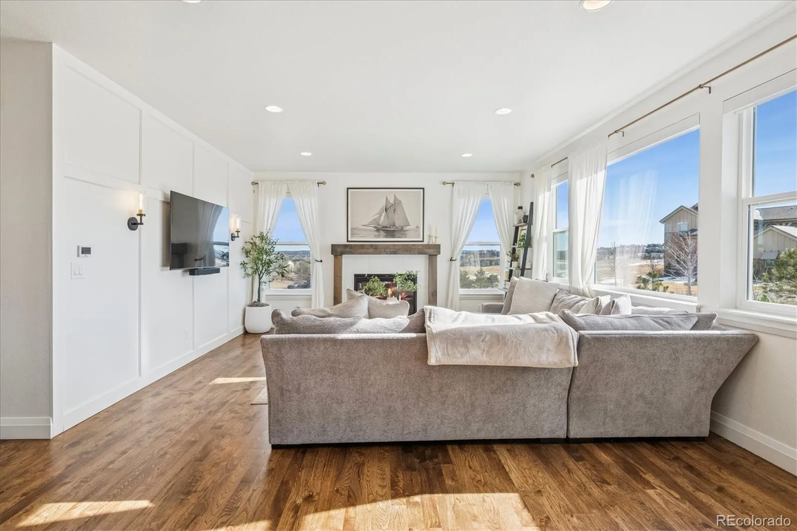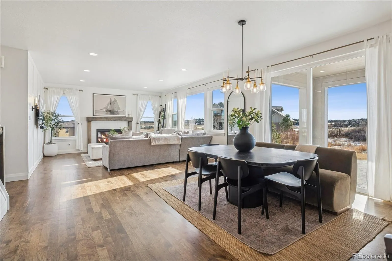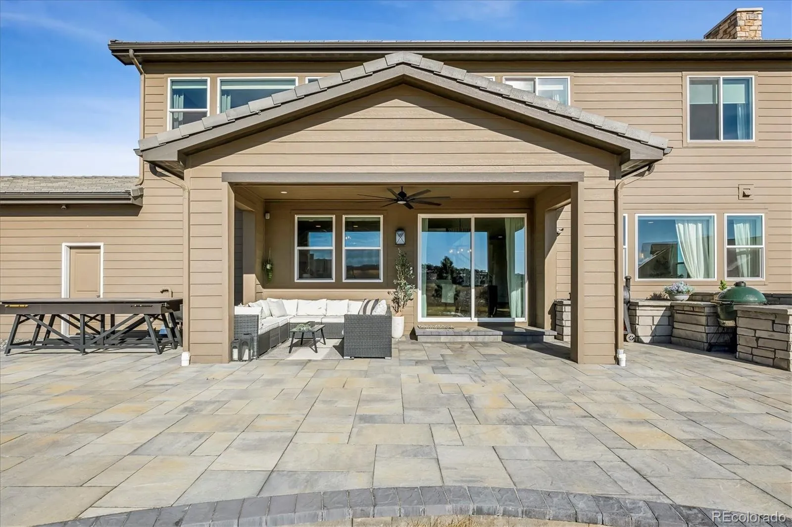 Near-new Celebrity Homes contemporary/modern masterpiece built in 2021 and now far less than a new build!!! We are ready to go now – why wait? Modern style, bright, light and open with sunny southern exposure on back of this lovely, sunny home. Large, cul-de-sac and private flat lot of 0.704 acres with great views out the front, side and rear!. The photos do not do the views justice. Enjoy sunrises and sunsets from the spacious rear patio which is partially covered and expanded. This is a very unique setting with views in the renowned Pradera Golf Club community – the golf course itself is behind this lot. Playground and firepit in back with those great views! Privacy and quiet are assured by being located near the end of an already short cul-de-sac!. The proud owners have finished the oversized 4-car garage including the flooring, nice landscaping, playground, built-in refrigerator, window covering and more! This is move-in ready so why wait to build and then do landscaping, window treatments, etc.??? Gourmet kitchen and family room create a Great Room with beautiful views and southern, sunny exposure. Enjoy the flexibility this amazing floorplan offers with two secondary bedrooms, Jack-N-Jill full bathroom, loft. laundry room and primary bedroom on the upper floor plus two more bedrooms on the lower level with a full bathroom. The expansive game room on the lower level has 12′ ceilings which is perfect for a golf simulator, exercise area, etc.to die for when it comes to children/entertaining or having a great time. Ample space for pool table, working out, media area, hobby area and more. That is correct: 12′ ceilings in basement!!! Drive your private golf cart mere blocks to the Pradera Golf clubhouse for a round, dinner or hit the driving range. Quick and easy access to shopping, hospitals, restaurants, highways, DTC, DIA, Park Meadows Mall and more. Pradera is in the middle of Parker and Castle Rock for convenience. Don’t miss out on a rare opportunity!