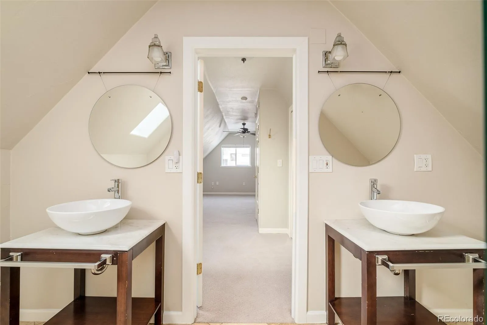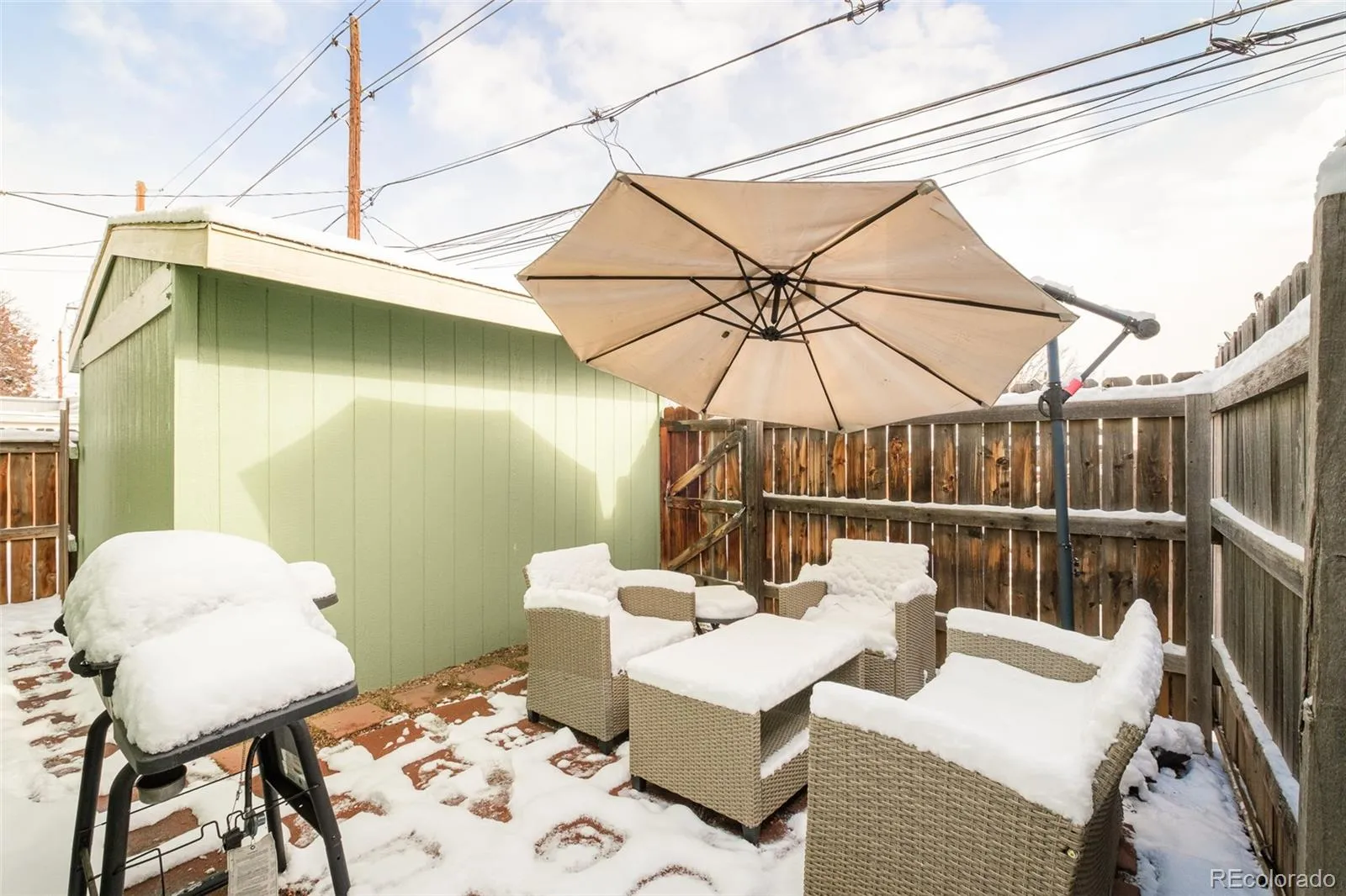 Beaming with charm and urban sophistication, this LoHi home offers an effortless balance of timeless character and modern comfort. A gated front yard sets a welcoming tone before entering a bright, spacious living area filled with abundant natural light from large windows. The dining space, accented by a classic light fixture, flows seamlessly into a luminous kitchen boasting stainless steel appliances, cozy exposed brick and generous cabinetry. Three main-floor bedrooms provide flexible living options, while the upstairs primary suite presents a secluded retreat with vaulted ceilings and an en-suite bath featuring dual vanities and a walk-in shower. An additional office offers potential to become a bedroom, enhancing versatility. Everyday convenience is elevated by a dedicated laundry area with a stackable washer and dryer set. Outside, a private, fenced-in patio creates an intimate setting for entertaining or quiet relaxation — perfectly complementing LoHi’s vibrant lifestyle.
