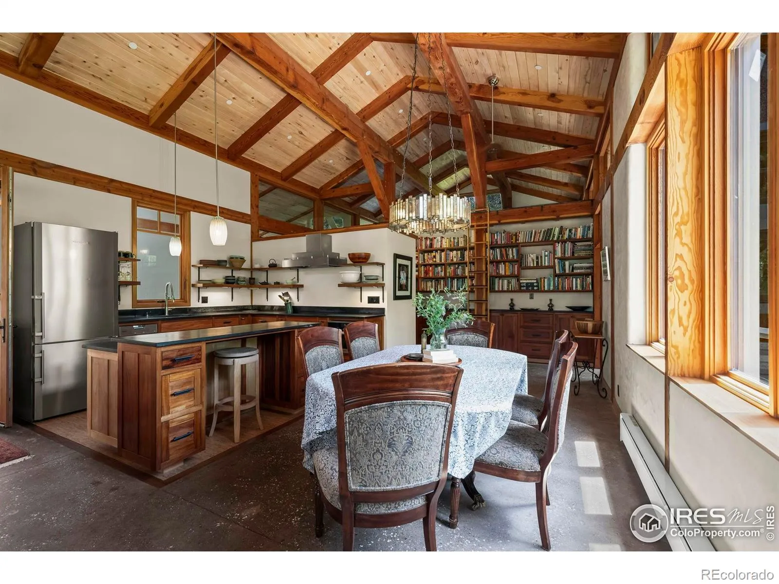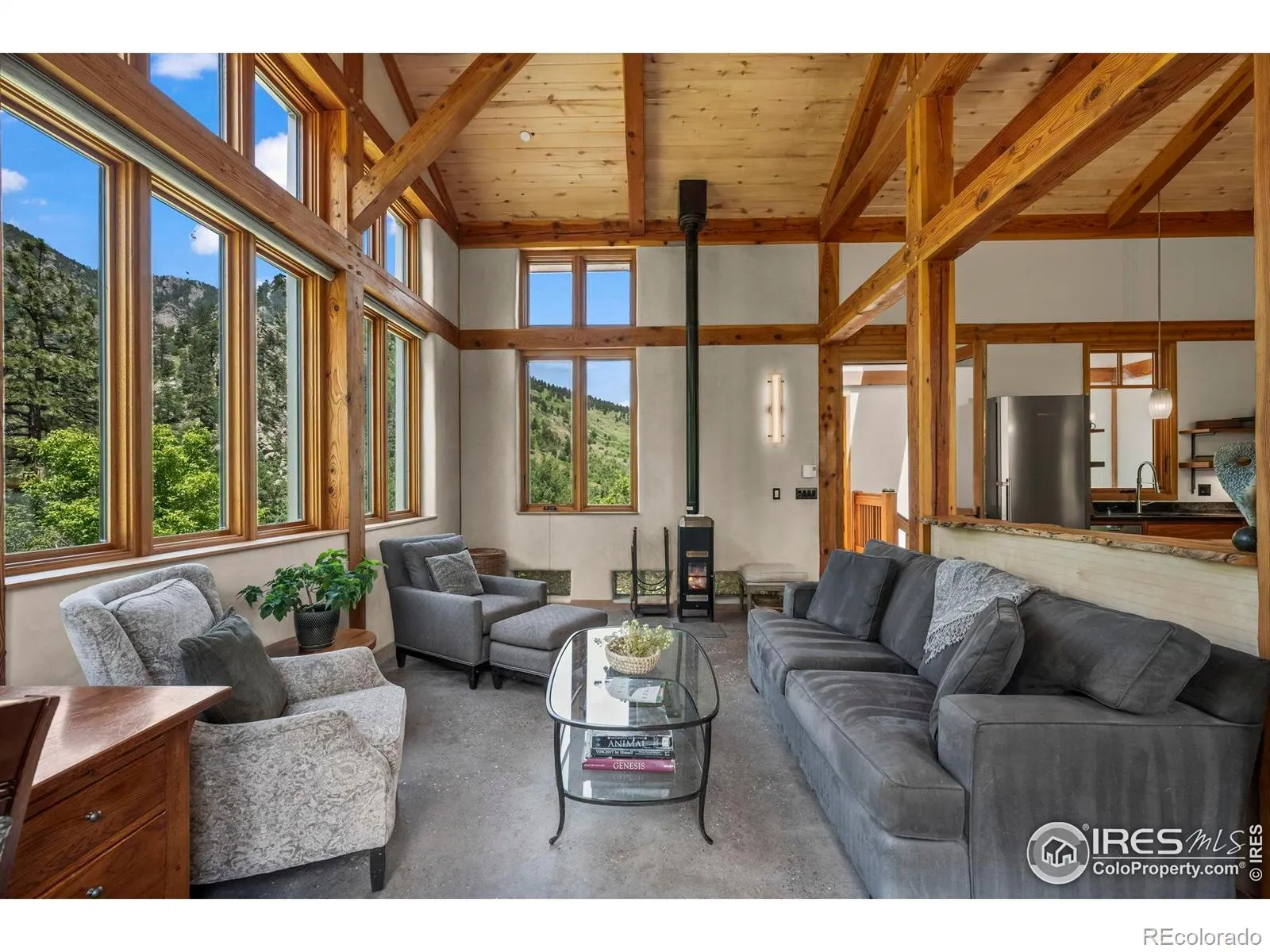 Ever dream of living in Eldorado Springs? Now is your chance! Live amongst the treetops and the towering cliff walls at the entrance to Eldorado Canyon. Be inspired by the soaring 17-foot ceilings and hand-crafted timber frame. Marvel at views from every window of the canyon, sweeping meadows and majestic landscape. Be immersed in privacy and nature, as the home is situated 300 feet from the road on a verdant hillside, soothed by the sounds of S. Boulder Creek and bird song. Custom built in 2018 with an emphasis on sustainability and energy efficiency including a robust 5-kW solar system. The integration of natural materials underscores the home’s harmonious relationship with its environment. The warm ambiance is complemented by a woodstove and a heat pump for temperature extremes. The chef’s kitchen is equipped with soapstone counters, mahogany cabinetry, premium appliances, and a walk-in pantry. With 3 spacious bedrooms, 2 baths, and a versatile studio that can serve as a 4th bedroom, the home offers flexibility. Rejuvenate in the Japanese-style soaking tub, or unwind on one of the two decks, offering a sublime setting for both relaxing and hosting social gatherings. Set on a fully-fenced 1.15-acre lot, the property supports home farming with corrals, outbuildings, vegetable beds, and fruit trees. Gated access and ample distance from neighbors ensure total privacy. Enjoy abundant natural light year-round, with 12+ hours of summer sun and 5+ hours in winter. Access the home via 3 flights of sandstone stairs or the included 4WD utility vehicle. Located just minutes from downtown Boulder with bus service to top schools. Hike or bike from your door to miles of local trails and world class climbing and fishing. Stroll to the historic Eldorado Springs Pool, eclectic Art Center and the Eldorado Mountain Yoga Ashram. Don’t miss this rare opportunity to own this eco-friendly sanctuary in coveted Eldorado Canyon, where sustainable living meets unparalleled natural beauty!