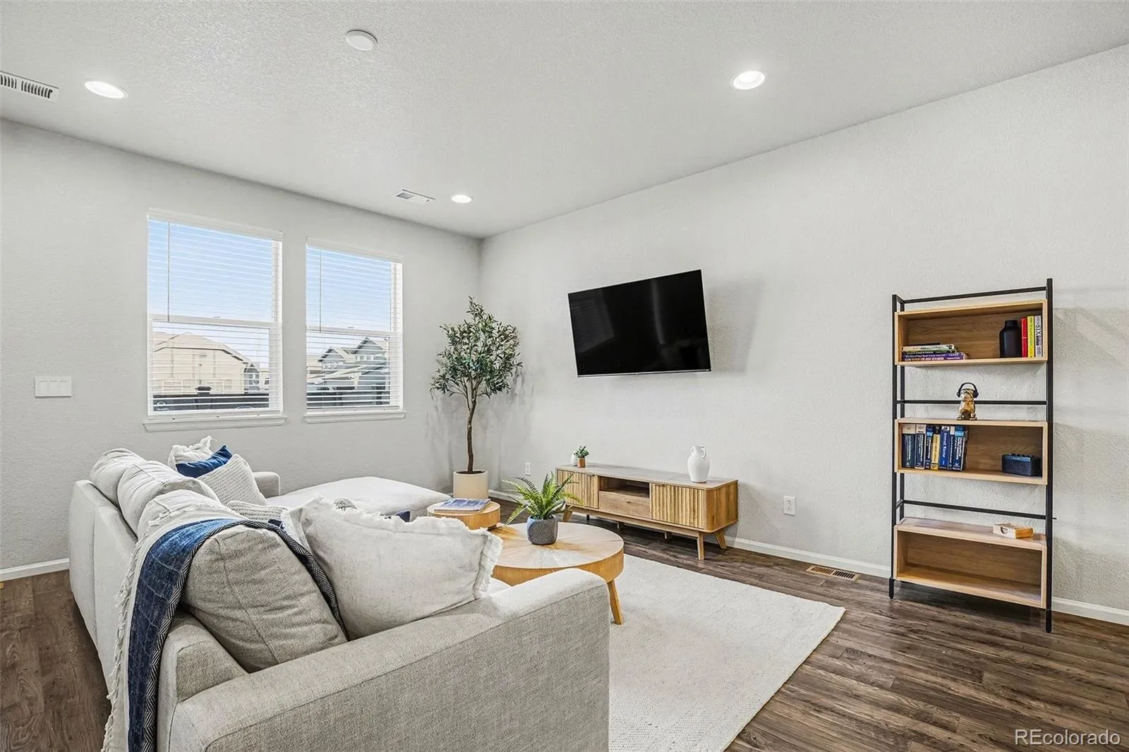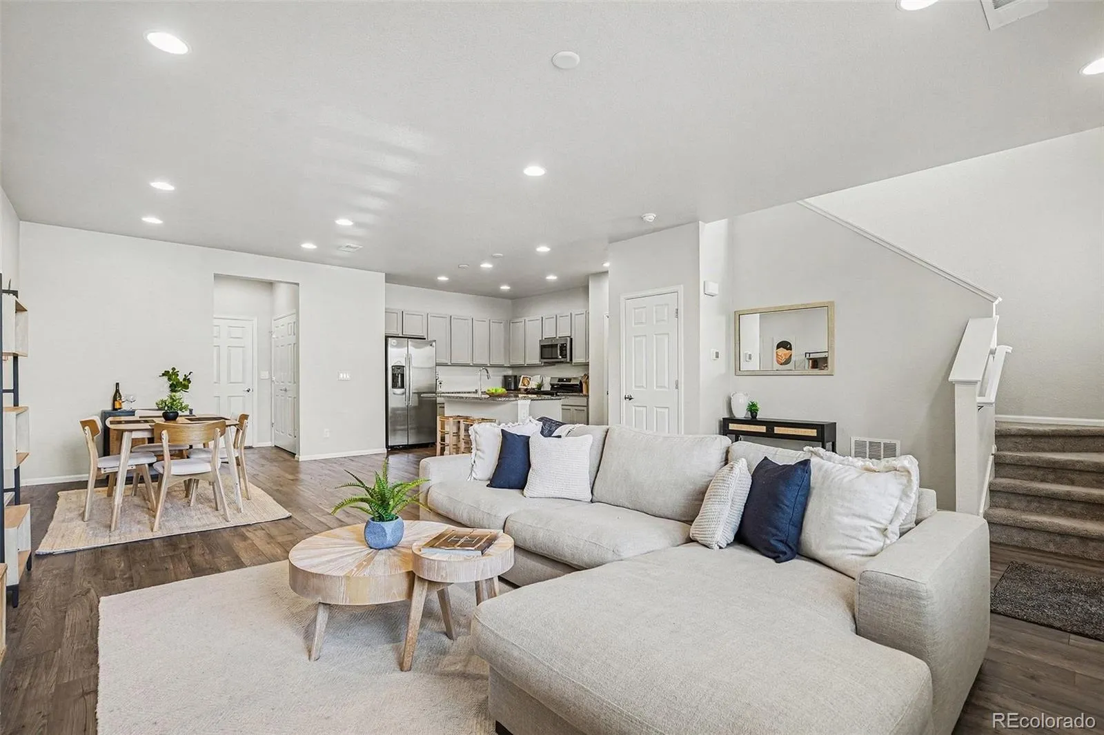 Welcome to this 3 bedroom, 3 baths 2023 built townhome in the Altaira at High Point neighborhood. Walk into an open living space featuring modern laminate flooring, which leads to the spacious kitchen boasting stainless steel appliances, granite counter tops, large pantry and a kitchen island to entertain and prep your favorite meals. The kitchen sits across from the dining area with lots of space for an oversized dining table set or a small and cozy eating area, the choice is yours. The main level also has a 1/2 bath for your convenience, nicely positioned to the back, and just before stepping into the oversized attached garage. Upstairs you’ll find the primary bedroom with a 3/4 bath, double sinks, water closet and a large walk-in closet. There are also 2 additional nice sized bedrooms with a full bath and don’t overlook the highly desired upper level laundry room! Along with the stunning interior elements, this home completes the package with a front patio area providing low-maintenance outdoor space for relaxing and entertaining morning or night time. And there’s more… home is only a few minutes walking to the nearest coffee shop and to the Gaylord Hotel for year round fun and happenings, walking and bike trails, pickleball courts and the community park. You’ll enjoy being only a few minutes to drive to the airport, seasoned and new restaurants, retail shops, the light rail at Pena, E-470 and other major highways. Schedule your showing today and get ready to fall in love with your new home!