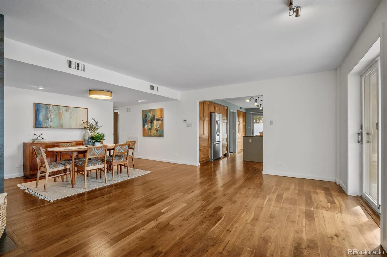 Welcome to 4605 S Yosemite St. Unit C-105, a beautifully updated 2-bedroom, 2-bathroom condo in Denver’s Stoney Brook community, offering nearly 2,000 square feet of single-level living. This ground-floor residence features hardwood floors, an open floor plan, a spacious and beautifully remodeled kitchen, and a generous primary suite with exceptional storage. Large windows and remote-controlled blinds enhance the natural light, and a newly installed west-facing patio door expands the indoor-outdoor connection. Vehicles are protected from the elements with the home’s two, assigned, underground garage parking spaces.
