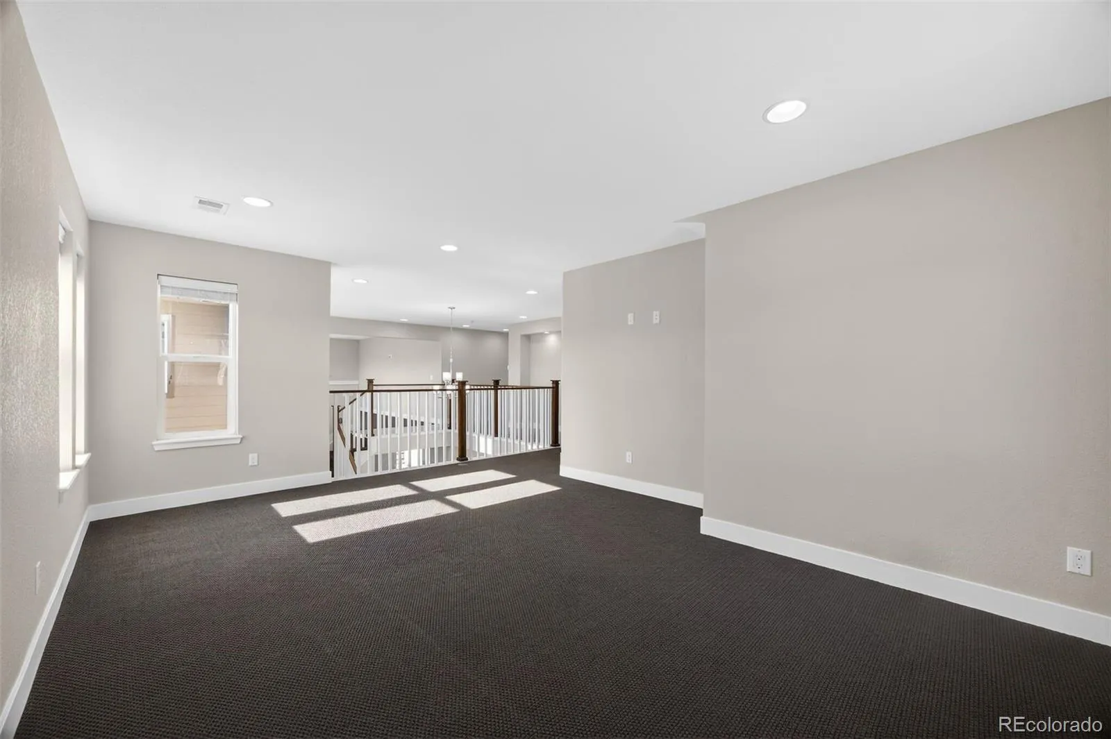 Inside, warm wood floors, abundant natural light, and recessed lighting create a bright and inviting atmosphere on every level. The kitchen serves as the heart of the home with granite countertops, rich cabinetry, stainless steel appliances, and a thoughtfully designed butler’s pantry that enhances both storage and entertaining. A built in granite table extends from the oversized island, offering the perfect space for casual dining or gathering with guests. The open concept layout flows seamlessly into the living areas, where surround sound elevates everyday living and continues upstairs into the spacious loft.