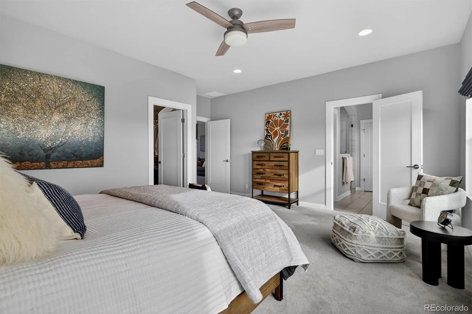 A refined blend of modern design, energy efficiency with an array of owned solar panels, & Colorado lifestyle: this exceptional David Weekley Homes Energy Star–Certified residence offers elevated living on an oversized corner lot just minutes from the heart of Denver. This sought-after Topaz model showcases thoughtful architecture and contemporary finishes throughout. Designed for effortless entertaining, the open-concept main level is anchored by a chef’s kitchen featuring a generous quartz island, stainless steel appliances, gas range, walk-in pantry, custom lighting, & a dedicated wine/coffee bar. Expansive windows and sliding glass doors lead seamlessly to a 15’ x 13’ covered deck, with panoramic views stretching from Downtown Denver to the Front Range, perfect for sunset dinners. Durable luxury plank vinyl flooring flows through the main living areas, while the living and dining spaces remain comfortably connected, creating a natural hub for everyday life. // Upstairs, the primary suite is a serene retreat with a spa-inspired bath & oversized walk-in closet. A sunlit loft thoughtfully separates the primary bedroom from two additional bedrooms, complemented by an upstairs laundry room with built-in storage for everyday ease. The finished walk-out basement continues the home’s light-filled, spacious feel with high ceilings, abundant windows, a large recreation area, & an additional bedroom and bath: ideal for guests, a home gym, or media space. Outside, the expansive backyard backs to a greenbelt and the Clear Creek Bike Trail, while the home fronts to a pocket park, offering ample space to play. // Located in the vibrant Midtown community, residents enjoy access to Trailside K-8 School, a Montessori preschool, community center, garden, microbrewery, multiple dog parks & playgrounds, bike trails, & RTD Light Rail access. A new 20+ acre park is just west of the neighborhood, and Trader Joe’s & Downtown Denver are only minutes away. *LENDER INCENTIVES AVAILABLE
