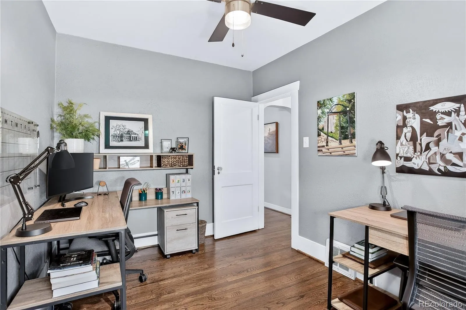 Renovated 1928 Craftsman in Denver’s iconic Platt Park neighborhood, just steps from the boutiques, restaurants, and amenities of South Pearl Street. This expertly remodeled bungalow blends historic charm with modern functionality and abundant natural light. Interior features include refinished hardwood floors, dimmable can lighting, and updated kitchen and bathrooms with designer-level finishes. The remodeled kitchen offers Cambria Brittanicca Warm quartz countertops, gas range, updated lighting, modern hardware, and new sink and faucet. Built-ins flank the formal dining room, creating a seamless connection between the living space and kitchen, ideal for everyday living and entertaining. The renovated main-level bathroom includes a new tub, toilet, and designer vanity and serves two bedrooms, or a bedroom plus office/media/flex space. New hardwood stairs lead to a finished basement with two additional (non-conforming) bedrooms, including a private lower-level primary retreat. The primary suite features a walk-in closet with ELFA system, custom laundry area with walnut open shelving, quartz countertops, porcelain farmhouse sink, and custom cabinetry. The primary bathroom includes a dual vanity and walk-in shower with Delta fixtures and high-end porcelain tile. Double doors open to a nursery or en-suite office. Additional upgrades include new windows and window treatments, central heating and air, new furnace, new insulation, updated exterior trim paint, and a new garage door. The fully fenced, low-maintenance backyard features custom hardscaping, dining area, fire pit, and string lighting, perfect for Colorado living. Convenient access to Light Rail, downtown, and DTC completes this exceptional home.