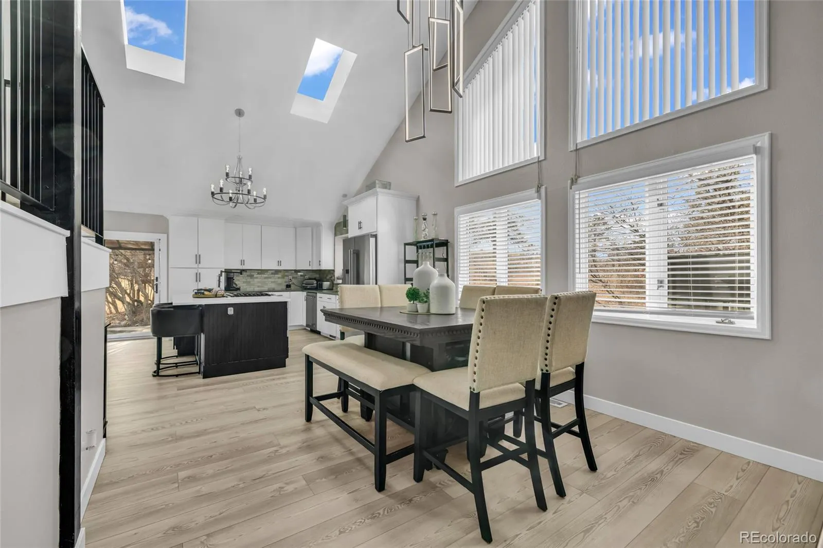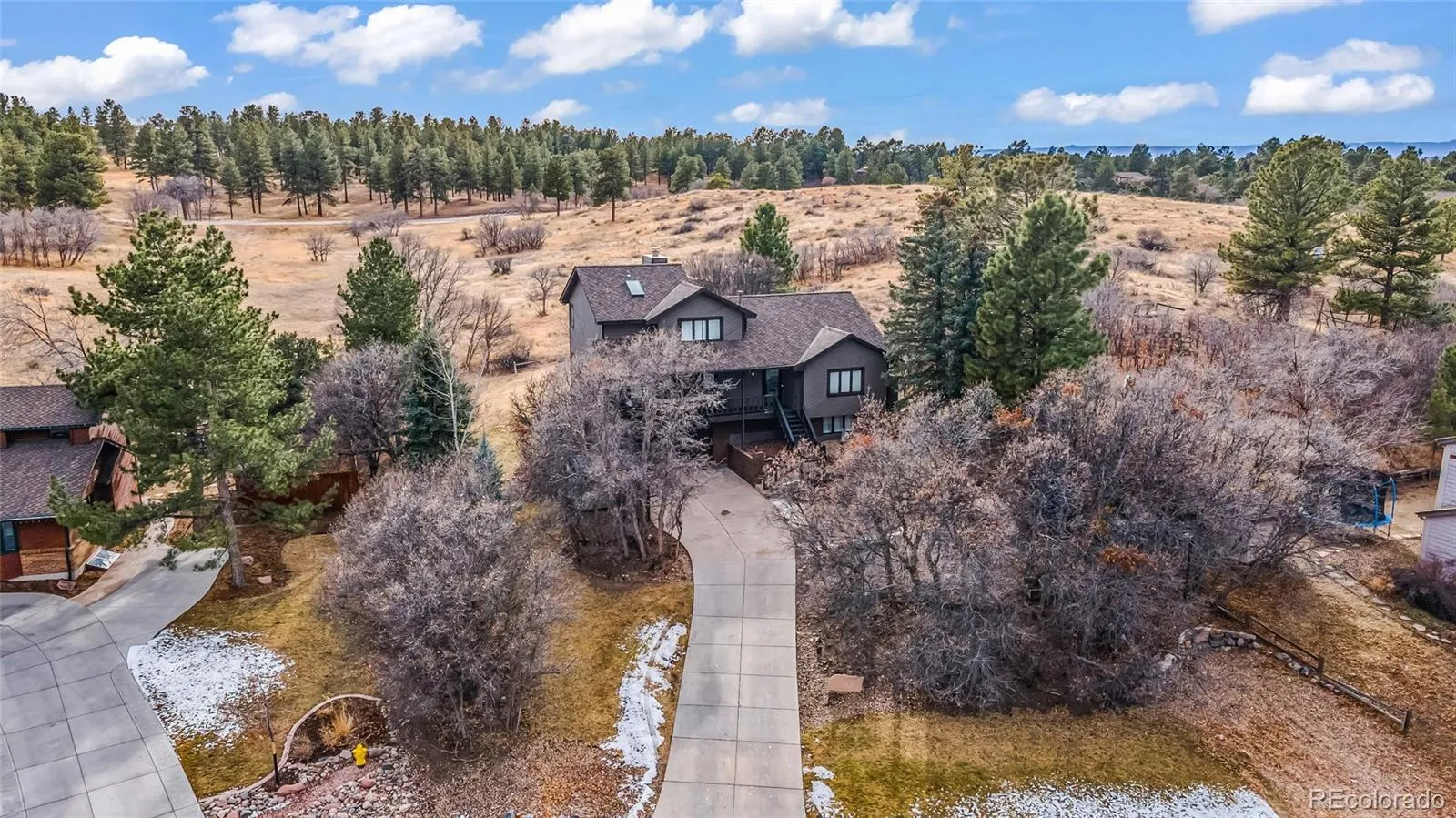 SPECTACULAR MODERN REMODEL!! Welcome to this amazing FULLY REMODELED Pinery home with exceptional privacy and panoramic views backing to acres and acres of GORGEOUS OPEN SPACE! Located on a quiet, beautifully treed lot, this 5-bedroom, 4-bath residence offers over 3,000 sq. ft. of functional living space and classic Colorado appeal. A welcoming front porch invites you in — perfect for morning coffee or evening relaxation.