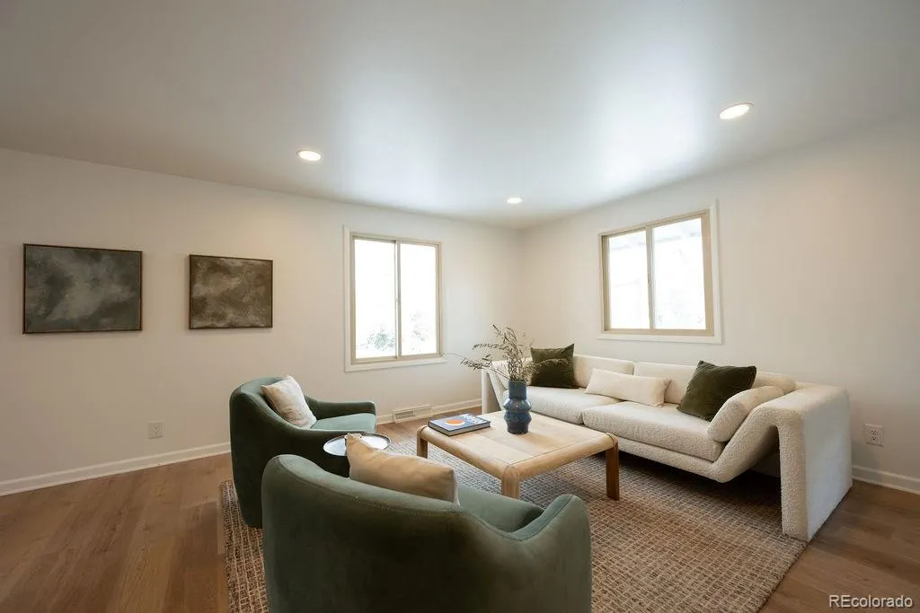 Step inside this beautifully reimagined 4-bedroom, 3-bathroom sanctuary, perfectly situated on a spacious corner lot within the highly sought-after Cherry Creek School District. This home strikes the ultimate balance between modern style and worry-free ownership, boasting a brand-new roof, a new central AC system for year-round comfort, a new garage door and motor, and a newly paved driveway. The interior impresses immediately with a sprawling open layout anchored by light oak LVP flooring and custom railings. The heart of the home is the stunning chef’s kitchen, featuring exquisite leathered quartzite countertops, new stainless-steel appliances, new cabinetry, and a center island designed for gathering. The lower level is equally inviting, featuring abundant natural light, a cozy brick wood-burning fireplace, and a generous flex space that easily adapts to a media lounge, home office, or gym. The dedicated mudroom and laundry room, right off the attached two-car garage, provides a functional place to keep tidy. Retreat to the luxurious primary suite, complete with a private en-suite bath and exclusive access to a private deck. It’s the perfect vantage point to enjoy your morning coffee or keep an eye on the fun happening in the yard below. The expansive backyard is an outdoor oasis featuring a paver patio for entertaining, a playset, and ample space for gardening or relaxing in the sun. Ideally located between Cherry Creek and the Tech Center with effortless highway access, this home offers the best of Denver living.