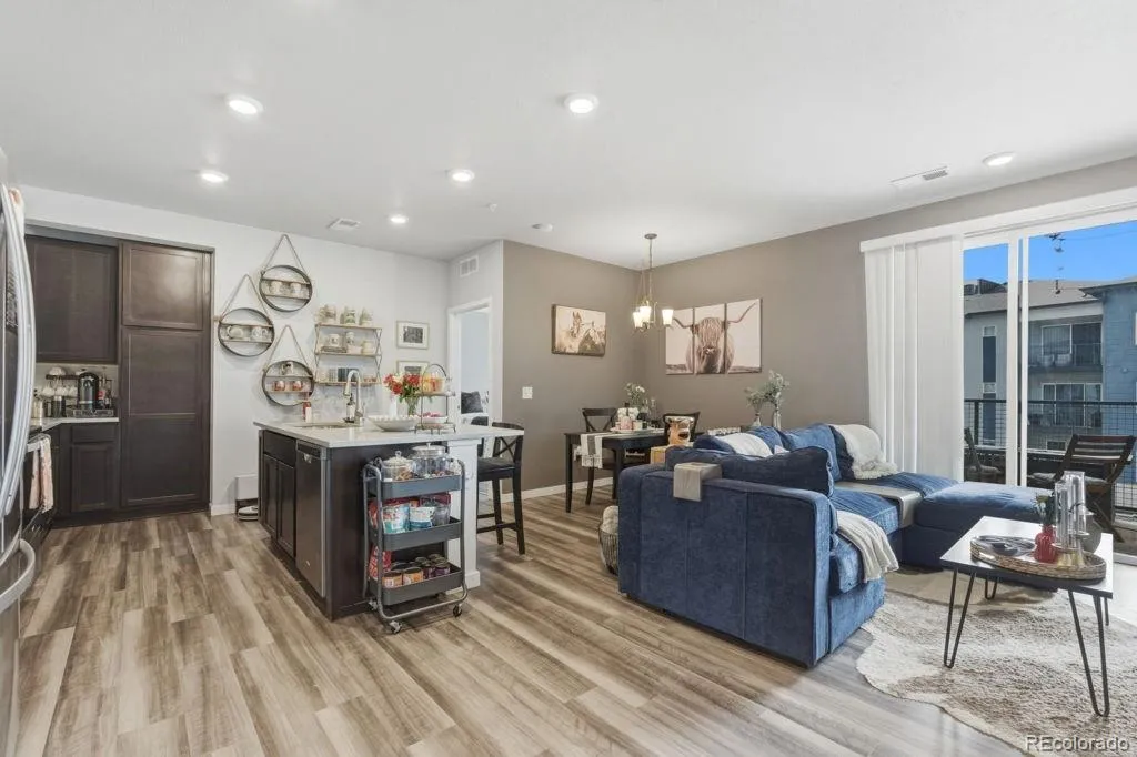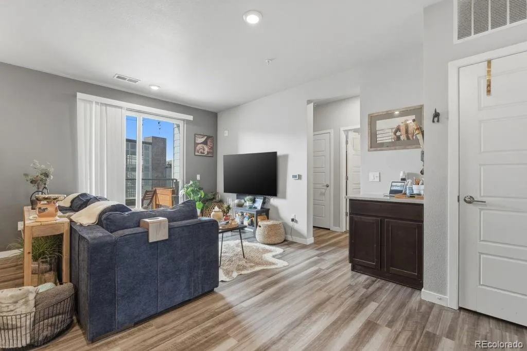 Located at 9287 Twenty Mile Road offers you fast access to Parker Road, E-470 for easy access to all of the Denver Metro. You can stay healthy as you are within walking distance to great dining, hospital services and many other conveniences without even starting your car. Walking trails are right there and give you walking or biking avenues to all of Parker and the Cherry Creek pathway areas. There is new interior paint and new luxury vinyl flooring throughout. This spacious living area is filled with natural light with patio doors that open onto the covered balcony which faces southwest and boasts of limited but beautiful view of the mountains. Entertainment should be on the calendar with the central kitchen, granite counter tops and island that also can serve as a breakfast bar. Dining area is also within this open flow in the living area. The primary suite includes en-suite bath and walk in closet. The second bedroom has an adjacent full bath just outside for easy access. Laundry room is also within the home. Modern lighting is throughout the home. If you own an EV there is a free charging station on the premises and an additional fee for charge station. A beautiful place to relax when you get home from that frustrating day at work or just relaxing on the weekends. Occupancy day of closing.