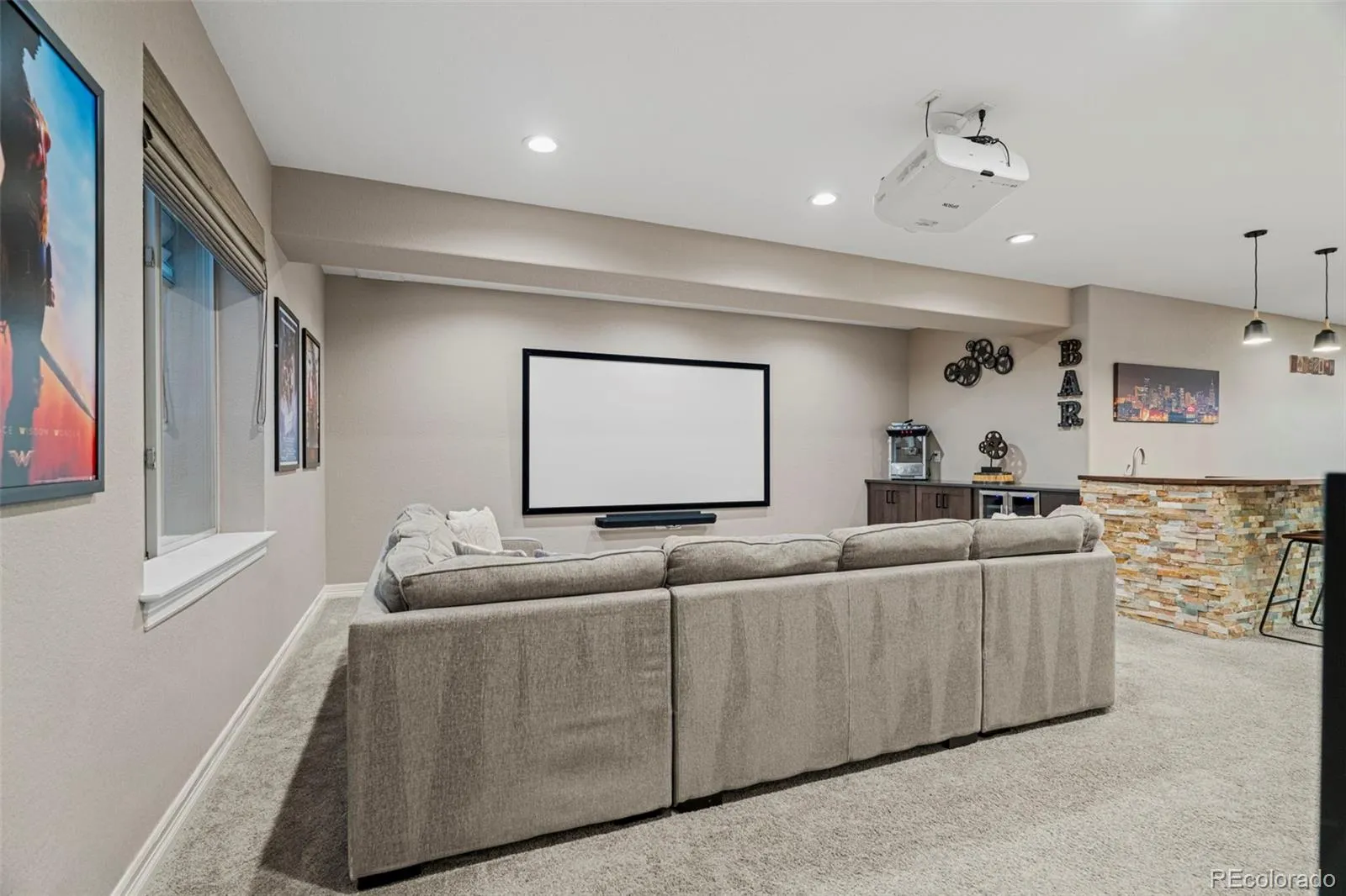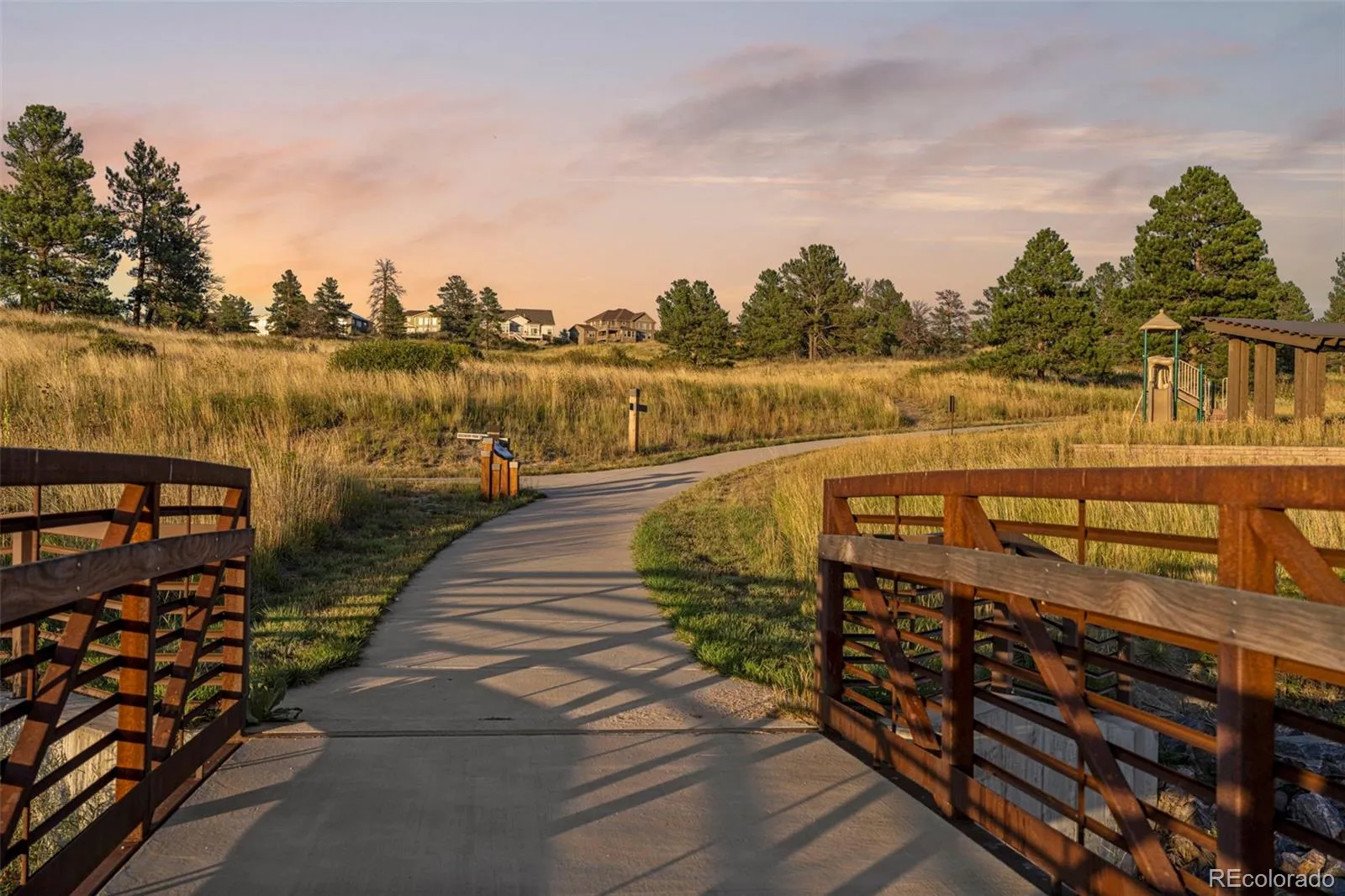 Incredible Toll Brothers Bella model located in the highly sought-after Highlands at Parker, tucked into a quiet cul-de-sac and backing to dedicated open space and miles of trails with breathtaking mountain views. This luxury 5-bedroom, 5-bath residence offers 5,665 finished square feet and showcases dramatic architectural details including a sweeping curved staircase with wrought-iron spindles, wide-plank hardwood floors, 8’ doors, soaring ceilings, and abundant natural light throughout. The main level features a stunning gourmet kitchen with leathered granite and quartz countertops, oversized island with seating, custom lighting, 5-burner gas cooktop with stainless hood, French-door refrigerator, double convection ovens, walk-in pantry, breakfast nook, and a spacious family room with 19’ ceilings, gas fireplace with floor-to-ceiling stacked stone, and a private second staircase. Additional main-floor highlights include a study with French glass doors, formal dining and living rooms with crown molding and custom batten walls, butler’s pantry, powder bath, mudroom, laundry with utility sink, and an oversized 3.5-car garage with 12.5’ ceilings and suspended storage. Upstairs offers a cozy sitting area, a luxurious primary suite with 5-piece bath, soaking tub, seamless glass shower, dual vanities, and a light-filled walk-in closet, plus a guest suite, two additional bedrooms with mountain views, and a Jack-and-Jill bath. The fully finished 1,573-sq-ft basement features a media room with dedicated surround sound, wet bar with walnut top, wine fridge, studio/office, exercise room with sauna power, expansive storage with tankless water heater, and a private guest suite with spa-inspired bathroom, dual shower heads, Italian tile and heated floors. Outdoor living impresses with a covered front porch, year-round soffit lighting, professional landscaping, turf backyard, hot tub, water feature and solar panels which produced 11,000 kWh in 2025!—this home is truly exceptional.