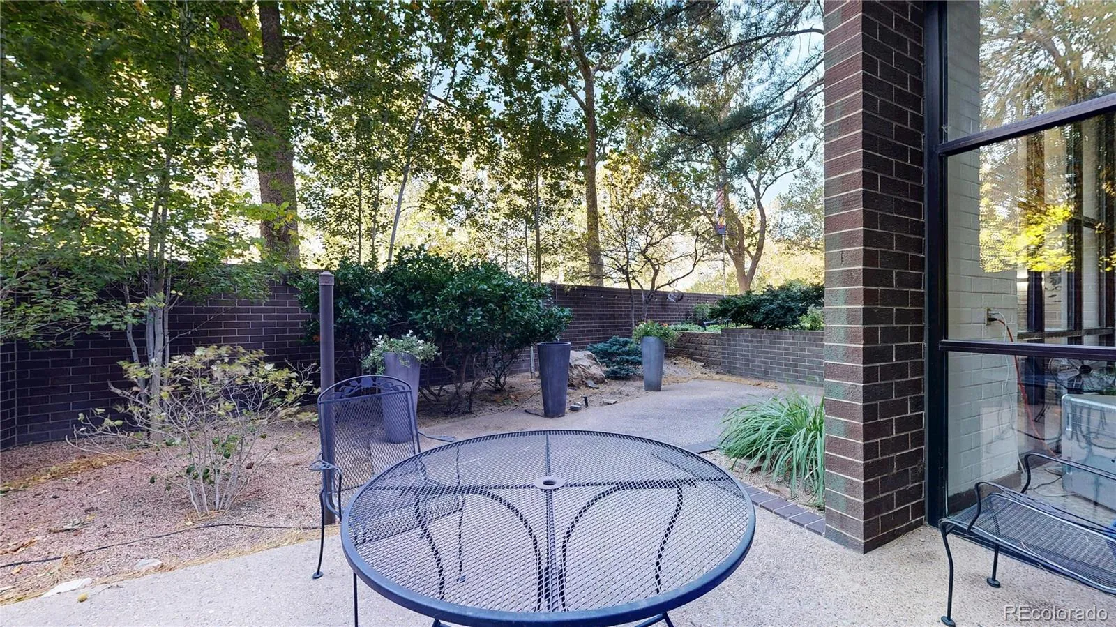 Welcome to this fully remodeled and ultra rare ground-level condo, perfectly situated in Denver’s Washington Park neighborhood — just steps from local coffee shops, restaurants, and boutiques. This turnkey home blends modern upgrades with timeless charm and provides a flexible floorplan ideal for comfortable city living or investment. Step inside to brand new light oak laminate vinyl plank flooring and a spacious family room that opens to a private patio and the communal courtyard—ideal for entertaining or relaxing outdoors. The dining area features a stunning new chandelier and a classic painted brick accent wall that adds warmth and character. The updated kitchen offers generous counter space, quartz countertops, new stainless steel appliances, a smart fridge with touchscreen, and a charming brick wall nook—perfect for a coffee bar or prep station. The large primary bedroom also has direct patio access and courtyard views. The bathroom is thoughtfully updated with a stylish vanity, white penny tile shower pan, and designer floor-to-ceiling vertical tile for a spa-like feel. Enjoy excellent building amenities including an indoor pool, rec room, study/work area, pool table, ping pong, and dedicated concierge with secure entry. Residents enjoy one of Denver’s most iconic green spaces as a daily luxury plus centrally located near downtown Denver, DTC, local universities, and public transportation.