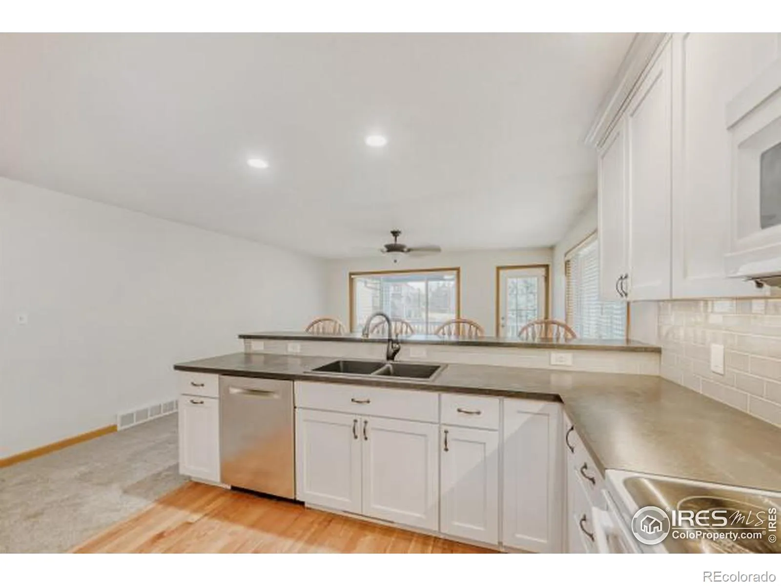 Move-in ready ranch home with an excellent floor plan in an established Longmont neighborhood with NO HOA and NO covenants! The main level offers comfortable one-level living with a light and open living/dining area, remodeled kitchen featuring a breakfast bar, abundant cabinetry, and generous counter space. The kitchen opens to the family room and flows to a covered back deck-perfect for indoor/outdoor living. Primary bedroom with en-suite bath, second bedroom, and shared bath all on the main level. Convenient main-level laundry connects to the attached two-car garage. New carpet throughout.The light-filled garden-level basement includes a spacious rec room with gas fireplace, two oversized bedrooms, a 3/4 bathroom, and a large unfinished storage area with great potential for additional living space. Recently painted exterior. Floor plans available in MLS supplements. Buyer to verify square footage. Quick close possible.