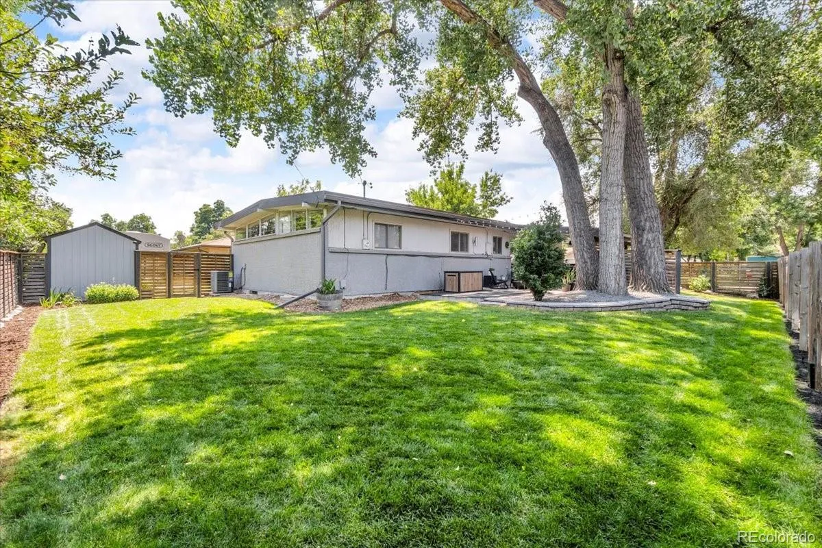 Mid-Century Modern gem located in Dream House Acres, adjacent to DeKoevend Park! Situated on a spacious ¼-acre lot, this beautifully maintained home offers easy access to DTC and Centennial. Enjoy the tranquility of a quiet neighborhood, unbeatable park & trail access, & proximity to everyday conveniences – Streets at SouthGlenn (.3 miles) and Cherry Hills Marketplace (.8 miles) with shopping, dining, & entertainment options galore. The main level is expansive with a primary suite and an open, light-filled floor plan enhanced by abundant architectural windows. Original hardwood floors, a scalloped ceiling, and exposed stone deliver timeless Mid-Mod character, while thoughtful modern updates include beautiful bathrooms, kitchen, new fixtures / ceiling fans, & smart deadbolts, thermostat, & lighting. The kit showcases stainless appliances, granite counters, & flows seamlessly to a large covered patio, ideal for indoor / outdoor living & entertaining. The kit is open to the dining & living rm, & the connected covered patio flows to the private, fully-fenced backyard. On the East side, there is an attached garage, along with a side driveway & opportunity to add a covered carport. The side driveway extends to the rear of the property for maximum space & recreational parking. Downstairs, enjoy a full basement that adds 2 additional bedrooms, liv. room, gear room, ¾ bathroom, lg. storage room w/ built-in workbench, & expansive laundry room, offering sink, storage, & folding areas. Recent improvements include newer roof (2023), gutters, fascia, end caps, & insulation—all with a transferable 10-year warranty. Additional highlights include option to transform gear area into a lower level kitchen, Gear shelves & the Armoire in office can be included. This home seamlessly blends mid-mod style, impressive lot backing to greenbelt, & outdoor amenities with an amazing location—don’t miss your opportunity to own a truly unique property. 3D Zillow Tour: https://bit.ly/2723EEuclidPl