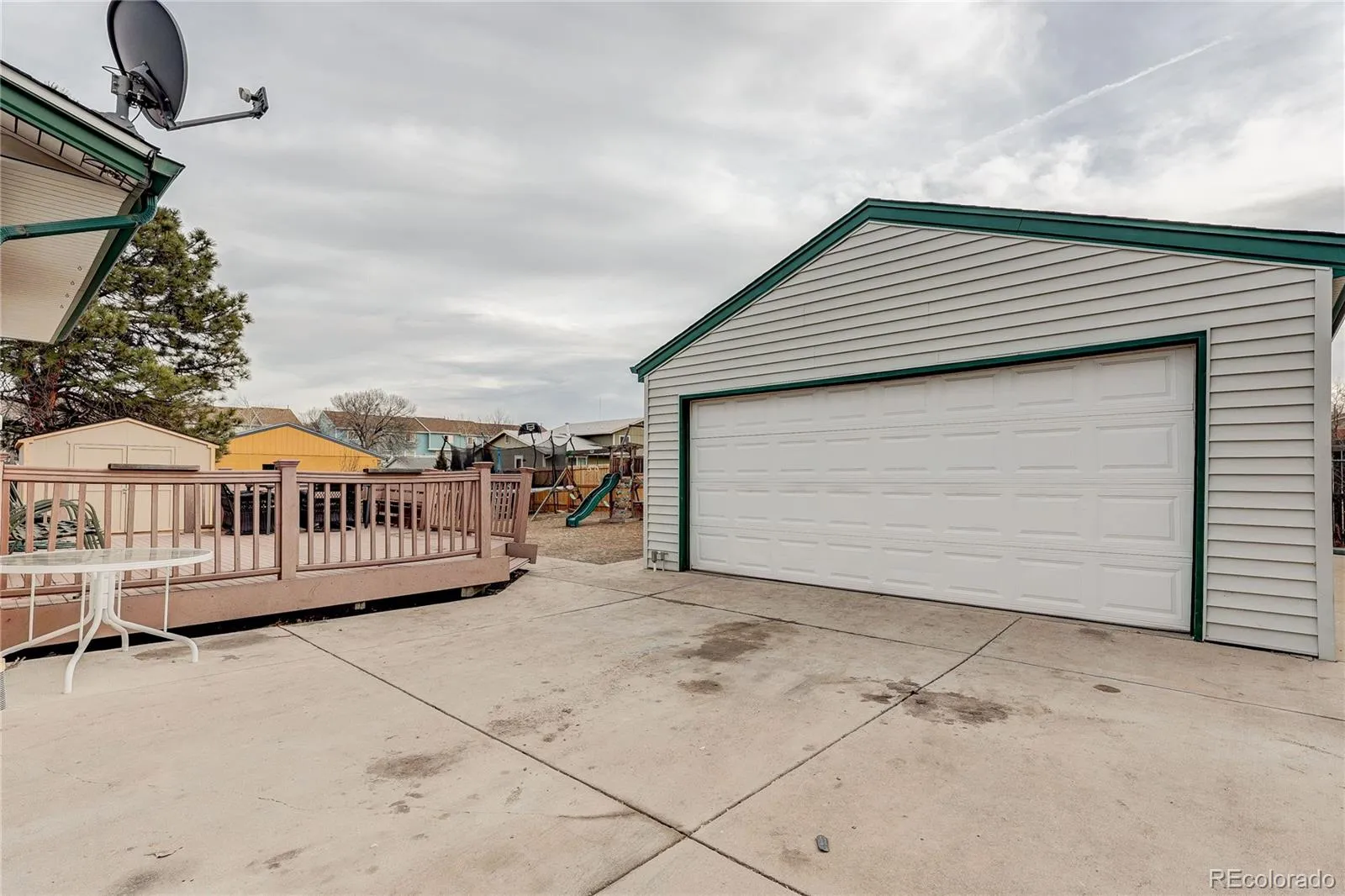 Great Starter in Thornton! Come see this move in ready charmer with 4 beds/1 bath. This is a great multi level floorplan in a quiet location. The main level boasts beautiful new luxury vinyl flooring and a spacious kitchen. Upper and lower have newer carpet, paint, moldings and doors. Just outside you have a huge deck, perfect for entertaining and a patio. Oversized 2 car garage with plenty of space for vehicles etc. A great size yard and no HOA if you need to store extra vehicles, boat, RV etc. Come take a look today!