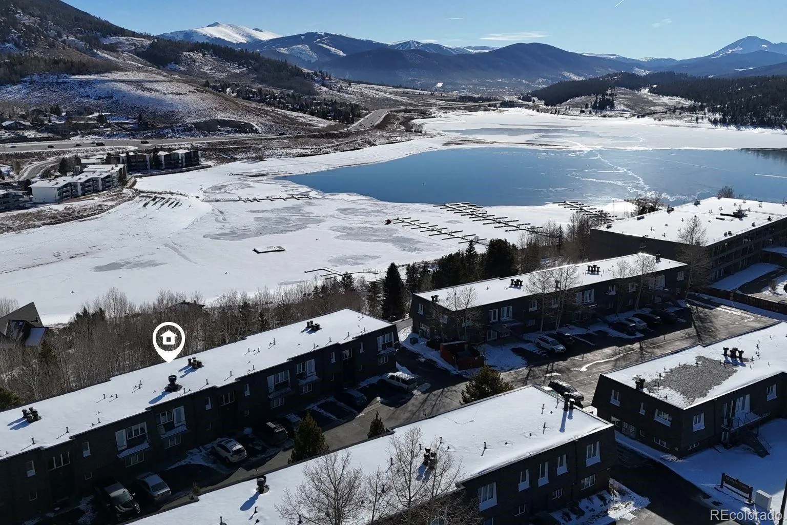 Experience top floor living in the heart of downtown Dillon at this 2 bedroom, 2 bath condo in the Chateau Claire complex. This south facing condo offers sweeping lake and mountain views, abundant natural light, and an open layout anchored by a cozy wood-burning fireplace. Step onto your private balcony overlooking Lake Dillon, or head out to the adjacent bike path, marina, and amphitheater in the summer. In the winter, take the free bus to any of the 5 world class ski resorts. This is a rare opportunity for a rentable mountain retreat at a good value.