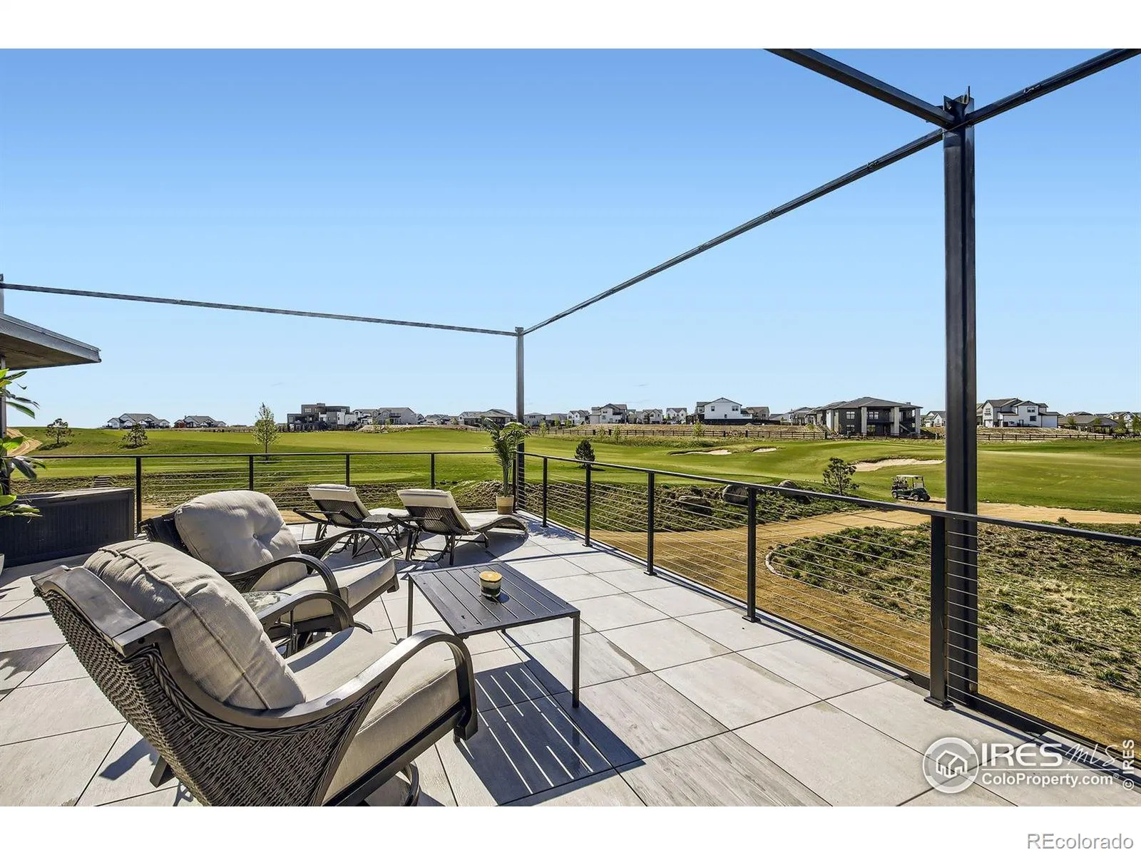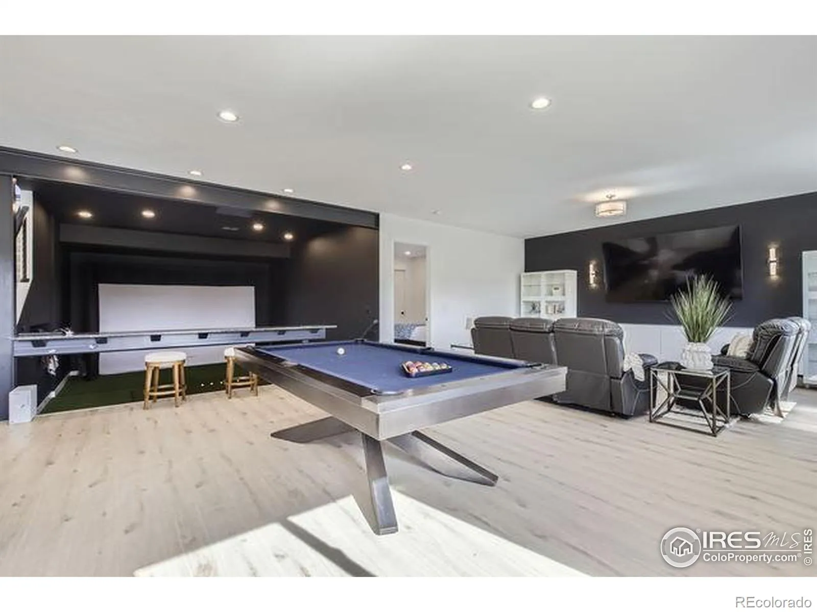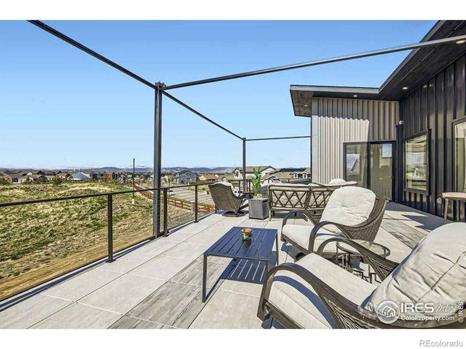 Welcome to elevated Colorado living at its finest. Perched above the #1 green & #2 tee box of the prestigious Raindance National Golf Course, this custom-built masterpiece offers an unrivaled blend of modern design, resort lifestyle, and mountain-view serenity. With over 6,377 sq ft of impeccably designed living space, this 4 bedroom, 5 bathroom estate includes a 602 sq ft private casita-complete with a flex-room, full bath, living area, and kitchenette-perfect for guests, multigenerational living, or luxury office/studio space. The heart of the home is a grand open-concept main floor featuring floor-to-ceiling windows, a fully collapsible glass wall, & seamless indoor-outdoor integration to the expansive deck with built-in hot tub & panoramic mountain views. The chef’s kitchen stuns with high-end appliances, massive island, designer cabinetry, and a butler’s pantry. Retreat to the main-level primary suite sanctuary with a spa-inspired bath, large shower & oversized custom walk-in closet. Downstairs, a daylight partial walkout basement features two additional en-suite bedrooms, a full bar, game area, & your own state-of-the-art golf simulator lounge. Cap it off with an 840 sq ft rooftop patio, offering unobstructed vistas of the Rocky Mountains, the course, & Windsor’s spectacular sunsets.