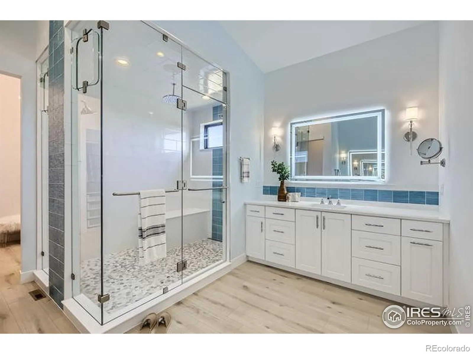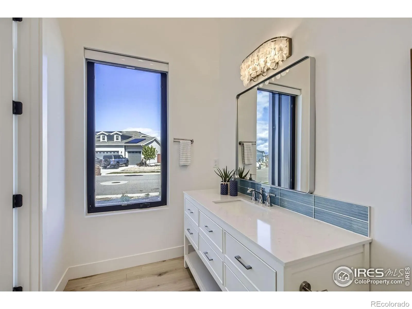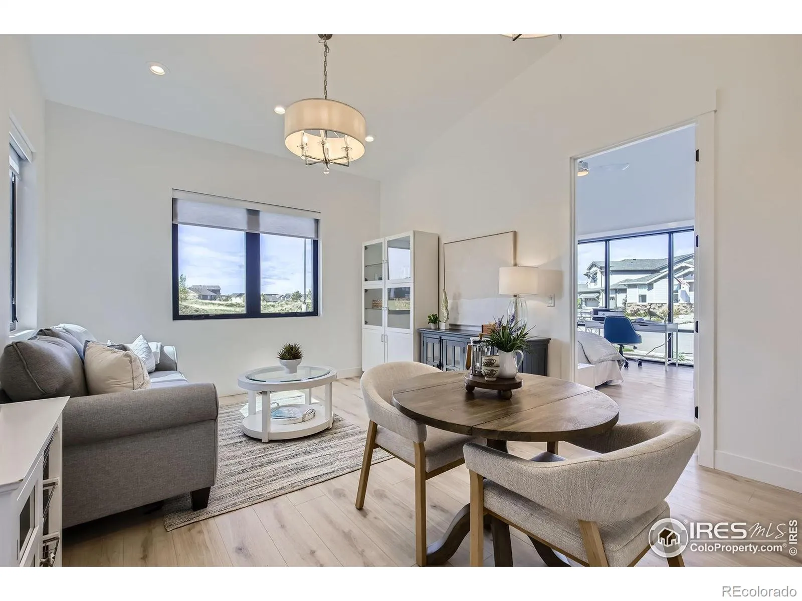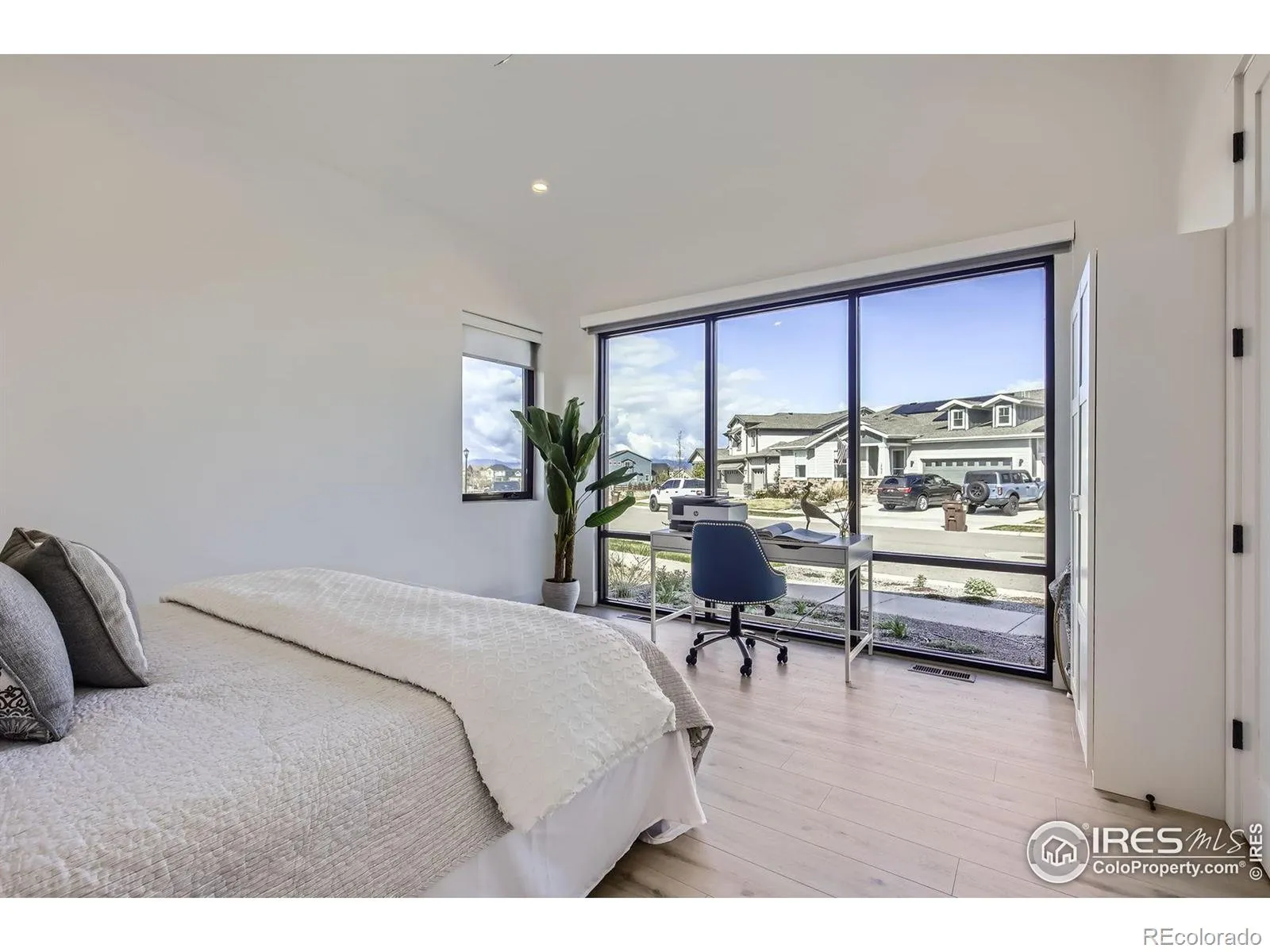 Welcome to elevated Colorado living at its finest. Perched above the #1 green & #2 tee box of the prestigious Raindance National Golf Course, this custom-built masterpiece offers an unrivaled blend of modern design, resort lifestyle, and mountain-view serenity. With over 6,377 sq ft of impeccably designed living space, this 4 bedroom, 5 bathroom estate includes a 602 sq ft private casita-complete with a flex-room, full bath, living area, and kitchenette-perfect for guests, multigenerational living, or luxury office/studio space. The heart of the home is a grand open-concept main floor featuring floor-to-ceiling windows, a fully collapsible glass wall, & seamless indoor-outdoor integration to the expansive deck with built-in hot tub & panoramic mountain views. The chef’s kitchen stuns with high-end appliances, massive island, designer cabinetry, and a butler’s pantry. Retreat to the main-level primary suite sanctuary with a spa-inspired bath, large shower & oversized custom walk-in closet. Downstairs, a daylight partial walkout basement features two additional en-suite bedrooms, a full bar, game area, & your own state-of-the-art golf simulator lounge. Cap it off with an 840 sq ft rooftop patio, offering unobstructed vistas of the Rocky Mountains, the course, & Windsor’s spectacular sunsets.