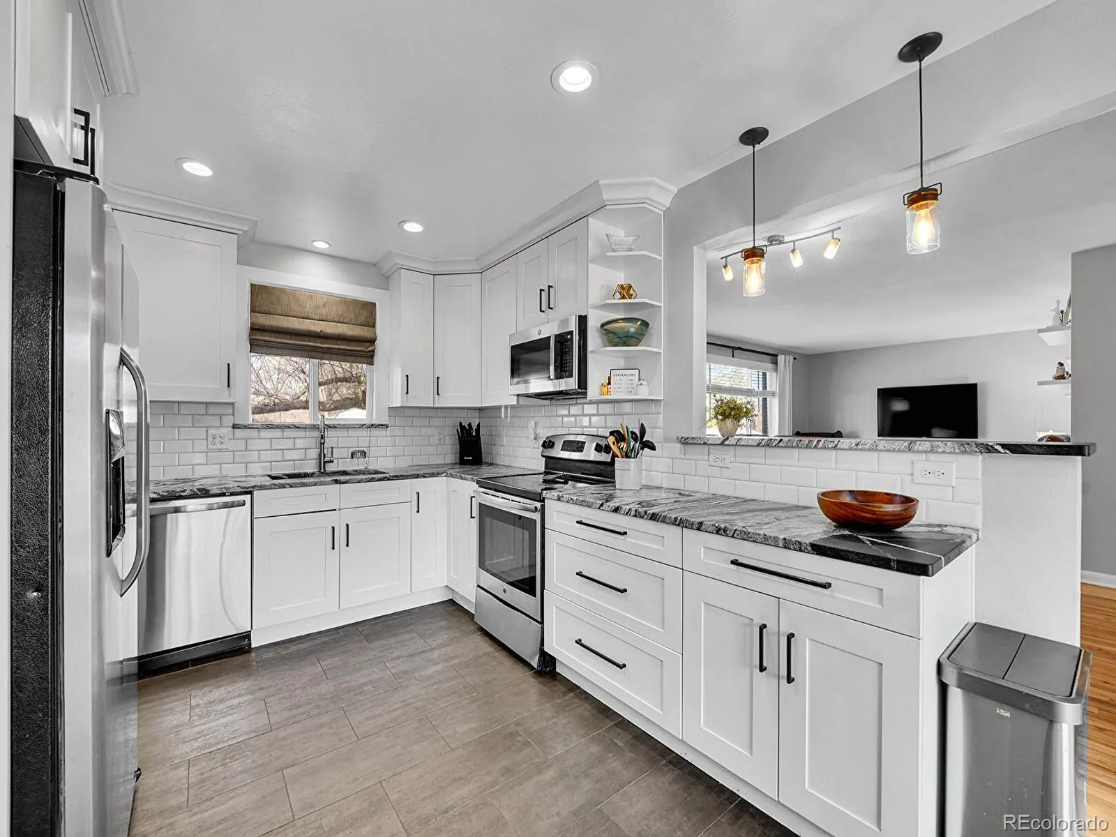 *OPEN HOUSE Saturday 1/17 11-1* Set on a generous .21-acre lot in sought-after Cherry Knolls, this ranch-style home is made for effortless main-level living with thoughtful updates, a finished basement, and a spacious backyard! Opening with mature trees and a lush lawn, the extended front porch creates a welcoming atmosphere that extends throughout the 4-bed, 2-bath home. Enjoy cozy weekends or lively game nights in the bright living room, anchored by a massive picture window with front-yard views. The updated kitchen boasts striking granite slab countertops, stainless steel appliances, and a counter-height peninsula ideal for casual conversations or late-night cocktails, flowing into the dining area with direct patio access for easy indoor-outdoor entertaining. The airy, main-level primary bedroom offers a peaceful retreat, while two additional bedrooms and a recently renovated full bathroom with dual sinks complete the level. Downstairs, a finished basement offers extended living space, including a second den and adjacent spare room with storage, ideal for a home gym or dedicated office. A spacious bedroom and nearby ¾ bath offer a private suite for guests or multigenerational living, while an unfinished laundry and storage space keep everything organized and out of sight. In the backyard, enjoy the lush lawn for play, al fresco dinners on the expansive patio, or sunny afternoons tending to garden beds. Includes a charter membership for nearby Cherry Knolls Swim Club! Located a short stroll from Cherry Knolls Park and The Streets at Southglenn and only 15 minutes from Downtown Littleton and Chatfield State Park, endless recreation is right outside your front door.