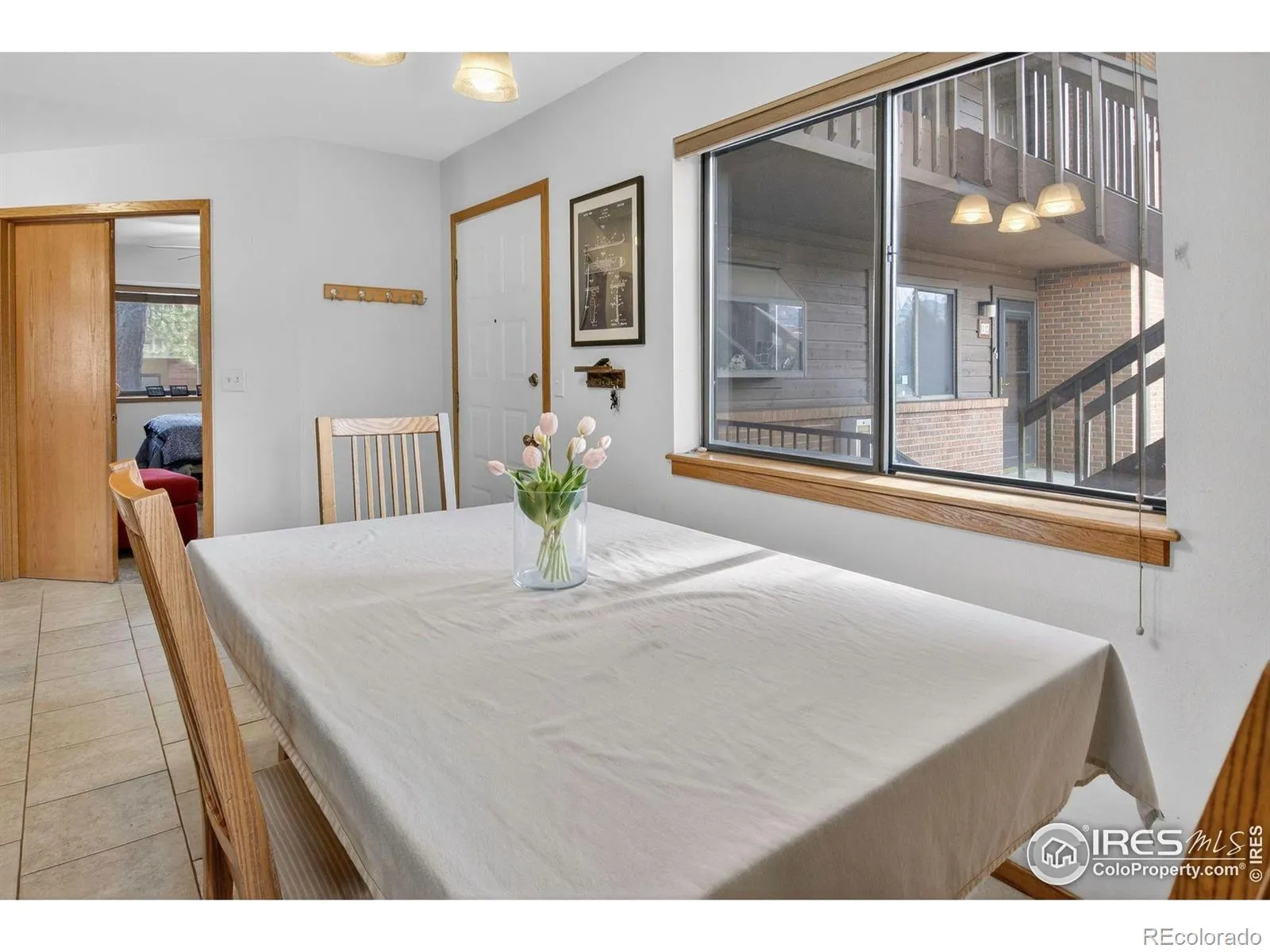 Outstanding opportunity located just East of CU Boulder Campus, this condo is a non-conforming 4-bedroom, 3-bath student or professional rental with strong upside. The property is leased through July 2026, offering stable income today and the opportunity to pre-lease at higher rents. Beautifully bright, open, and spacious, this well-maintained corner condo offers south, east, and west exposures, abundant closet space, walk-in closets, and a large utility and laundry room ideal for extra interior storage. The kitchen features newer cabinetry, tile floors, stainless steel appliances, a slate tile backsplash with glass and travertine accents, premium Juperana Prima slab granite countertops, a breakfast bar, and a garden window with partial Flatiron views. Updated bathrooms, a finished basement with wet bar, and a versatile fourth non-conforming bedroom – perfect for a home office or study – add to the condo’s appeal. Enjoy a covered, screened-in rear porch with additional storage closet, plus a large detached two-car garage located directly out the front door. Located in desirable SE Boulder with easy access to CU, the HOA swimming pool and hot tub, East Boulder Rec Center, and the popular South Boulder Creek Trail. Just 10 minutes to Chautauqua Park and Pearl Street, this is a wonderful opportunity to own a spacious condo in a prime Boulder location.