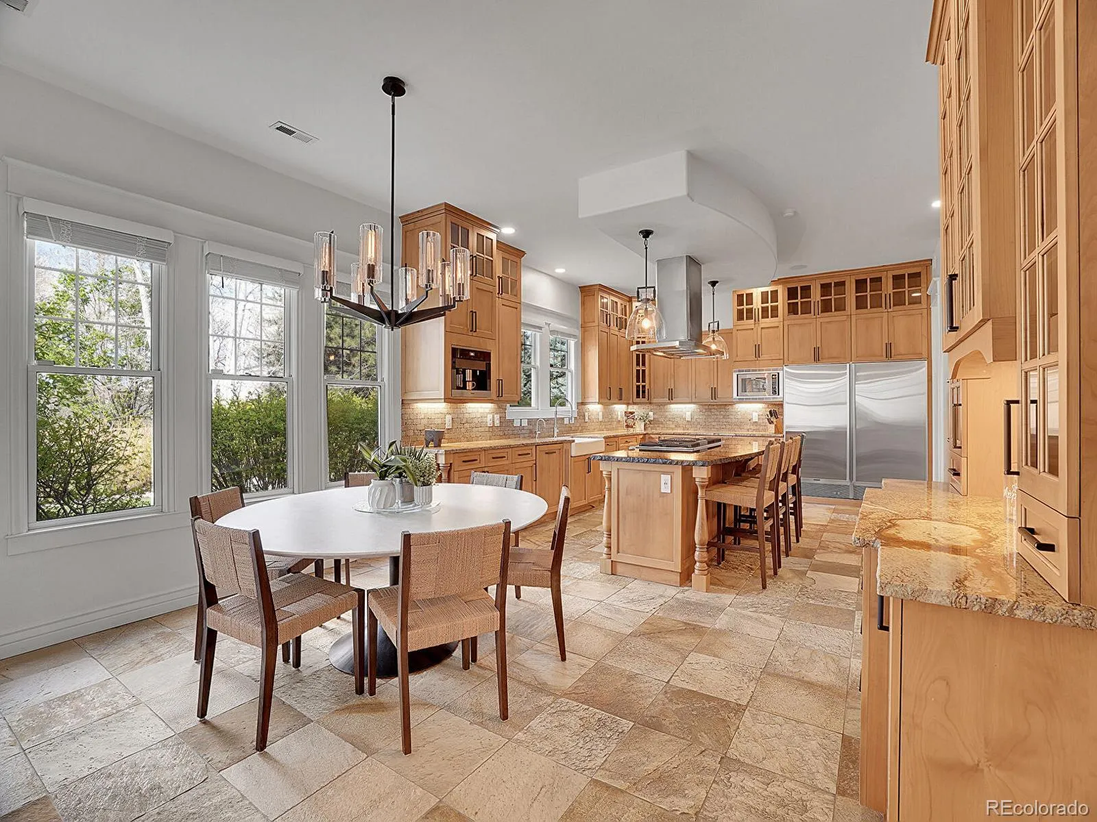 Timeless custom estate nestled behind wrought-iron gates on one of Old Cherry Hills’ most exclusive lanes! Enveloped in lush greenery and meticulously maintained, enjoy a rare combination of privacy, craftsmanship, and resort-style living. Curated elegance unfolds as hardwood flooring flows throughout an expansive, light-filled interior. Grand, open-concept living spaces center around a floor-to-ceiling stone fireplace in the great room, enhanced by exquisite custom millwork, designer lighting, and expansive walls of windows. The chef’s kitchen is a true showpiece—outfitted with top-tier appliances including a five-burner gas range with griddle, dual convection ovens, two dishwashers, and a built-in Miele espresso machine. Slab granite countertops, a farmhouse sink, walk-in pantry, and wine cabinet add form and function. The main-level executive office is designed for inspired achievement, featuring bespoke built-ins, an adjoining den with fireplace, a private bath, and direct access to a secluded front patio with firepit. The upper-level primary suite is a sanctuary with a private den, dual-sided fireplace, custom walk-in closets, and an indulgent spa-inspired bath. A secondary, main-level primary suite invites multi-generational living with a private entrance and cozy fireplace. The lower level hosts a spacious rec room with wet bar and a professional-grade workout room. The heated, covered patio is framed with a canvas enclosure and clear panel inserts, offering year-round enjoyment of the outdoor kitchen, integrated TV, and luxurious Marquis hot tub. The landscaped backyard offers a serene water feature and a full-size, lighted sport court. Additional highlights include a newer standing seam metal roof, whole-home water purification system, custom closets by Closet Factory, and laundry on each level. This extraordinary home reflects the highest standard of Cherry Hills living—where craftsmanship meets comfort in a setting of exceptional beauty and privacy.
