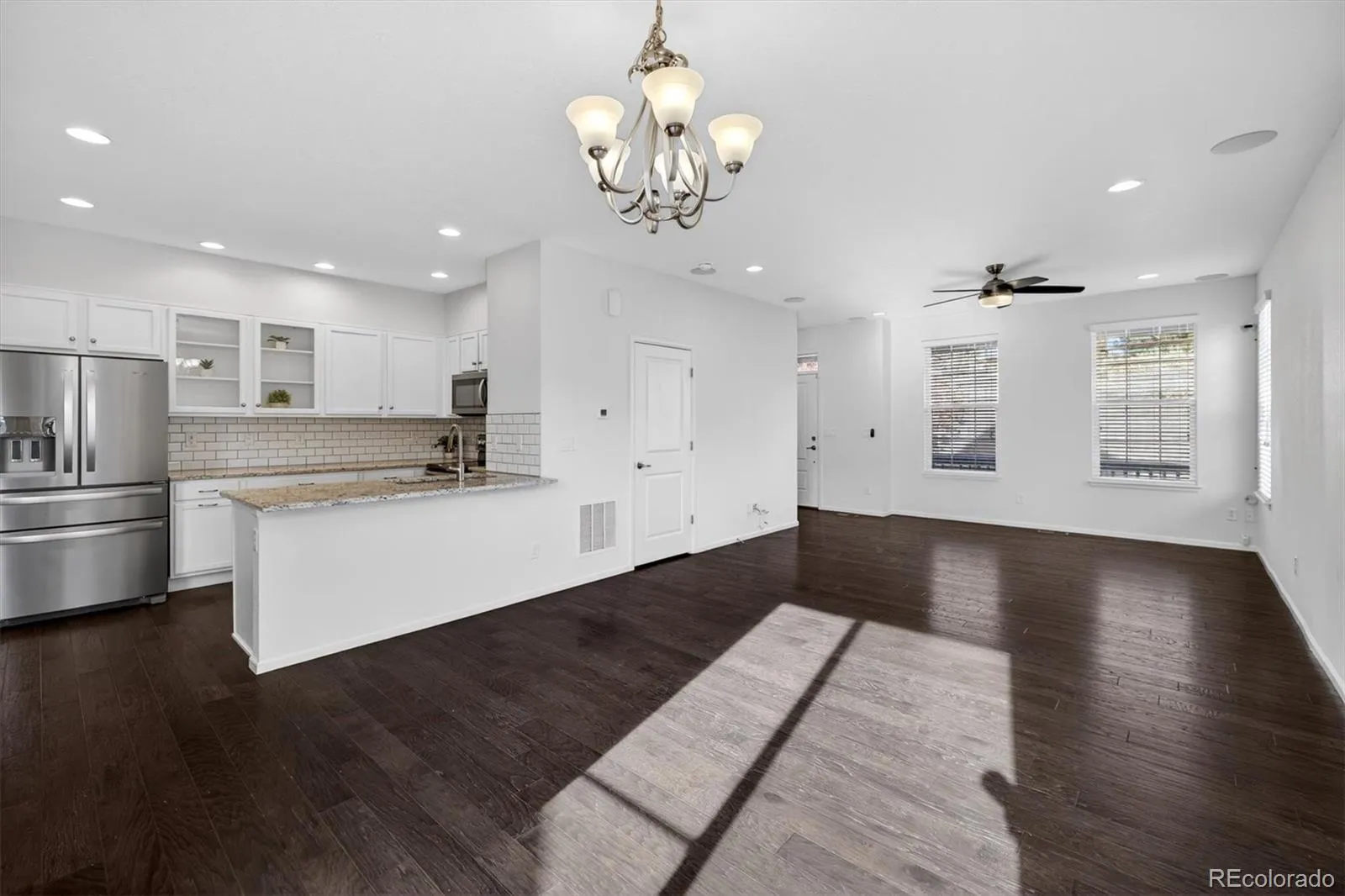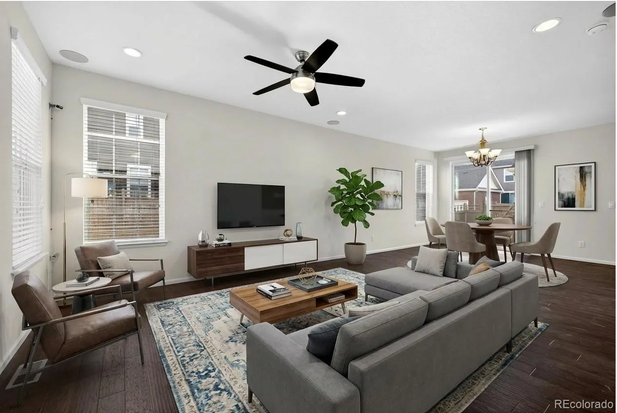 Inside, the open layout features 3 bedrooms, 3 bathrooms, 1,500 finished square feet, plus an unfinished basement with storage, crawlspace access, and future expansion potential. Built by Lennar/CalAtlantic, this is the popular Sparkle model, known for its efficient design and open-concept living. The main level features 9-foot ceilings, wood flooring, and abundant natural light from south- and southeast-facing windows, creating a bright and cozy atmosphere throughout. The living room includes in-ceiling surround sound, enhancing everyday living and entertaining.