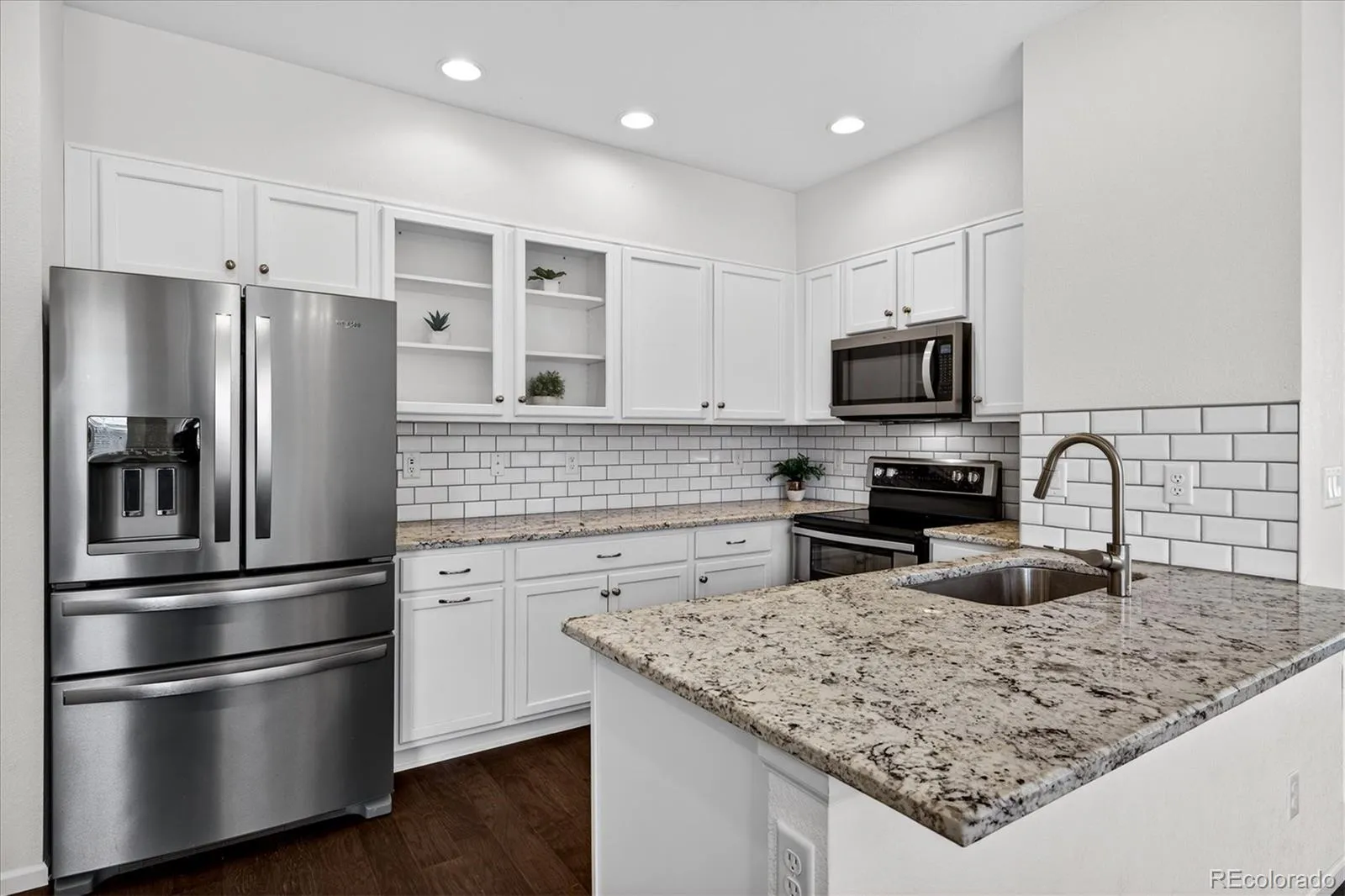 The kitchen offers granite countertops, a subway tile backsplash, stainless steel appliances (all included), and a convenient office or computer nook. A main-floor laundry room and mud area provide added functionality and connect directly to the private two-car attached garage.