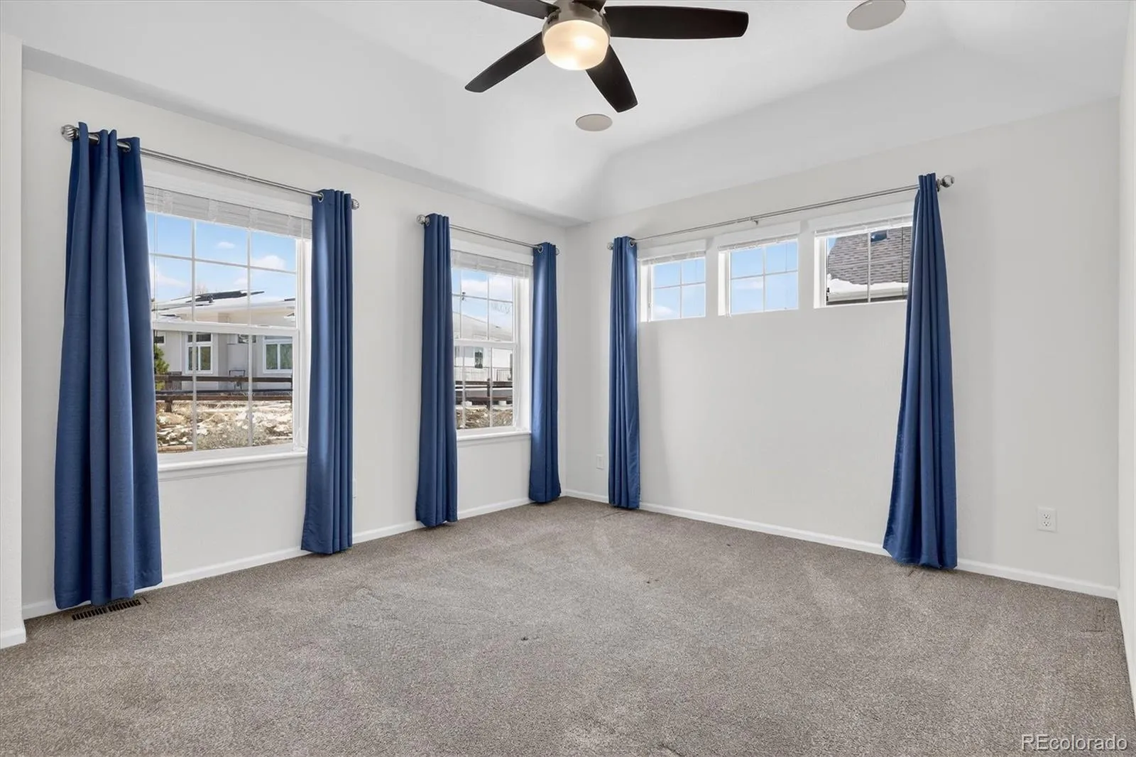 Upstairs, the former loft has been thoughtfully converted into a third bedroom, adding flexibility and value to the layout. The vaulted primary bedroom features in-ceiling surround sound and a private bathroom with marble tile flooring and a decorative tiled shower. A second bedroom and an additional full bathroom complete the upper level.