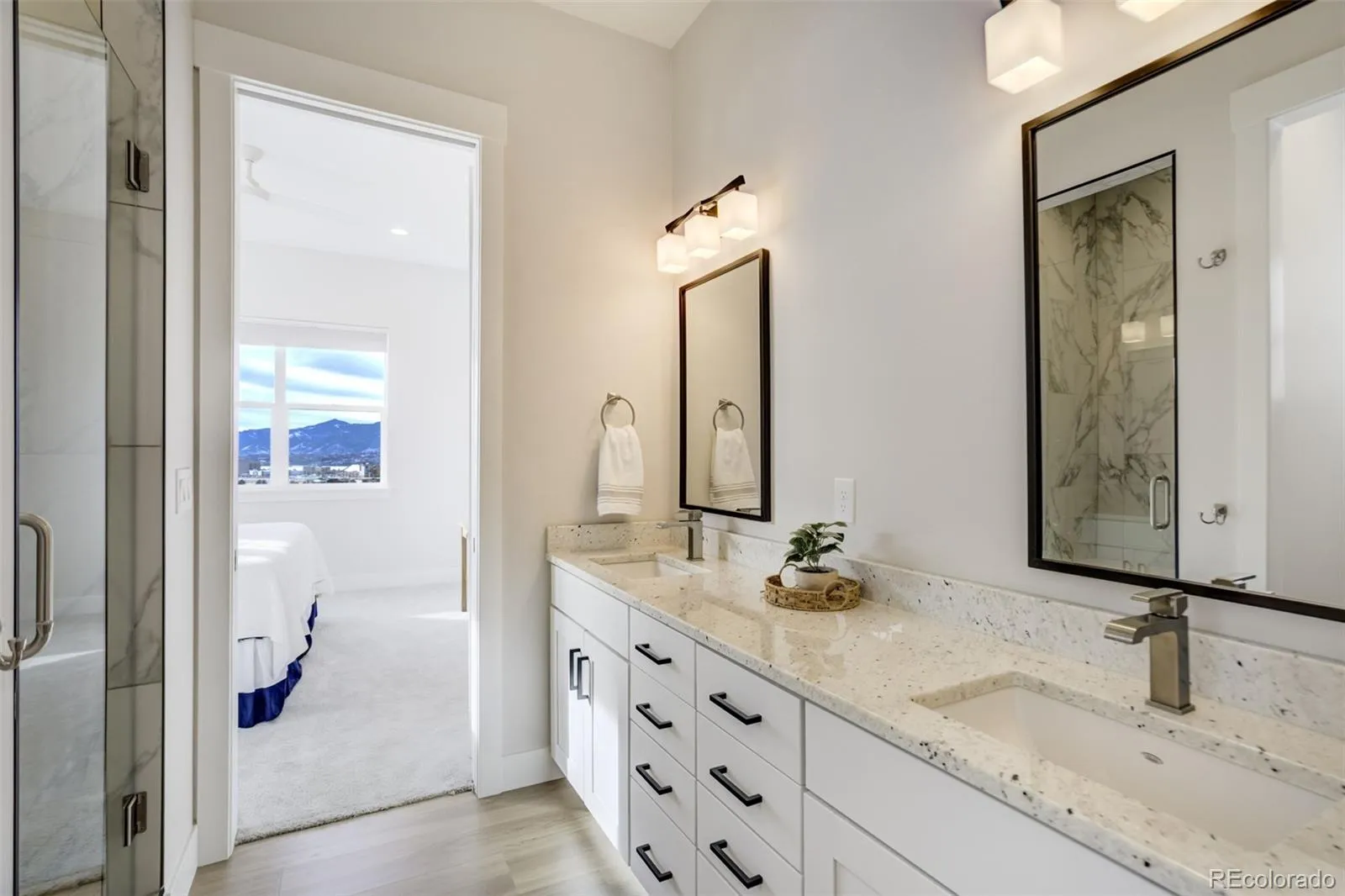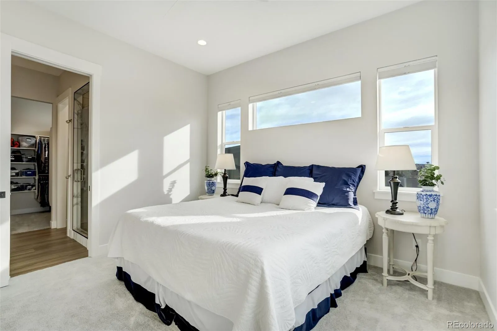 oversized custom shower, Carrara marble countertops, and a generous walk-in closet with built-ins. Additional bedrooms