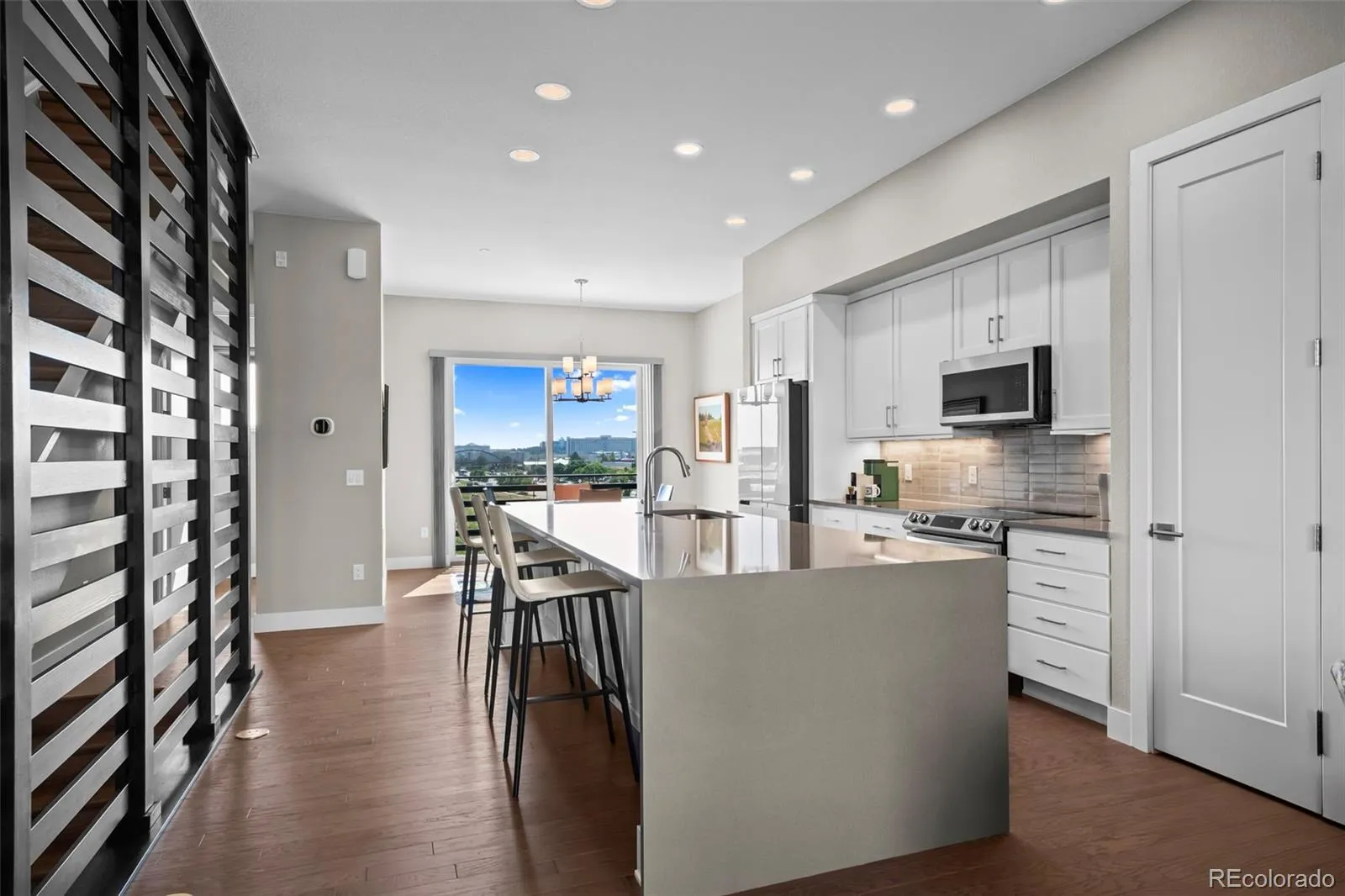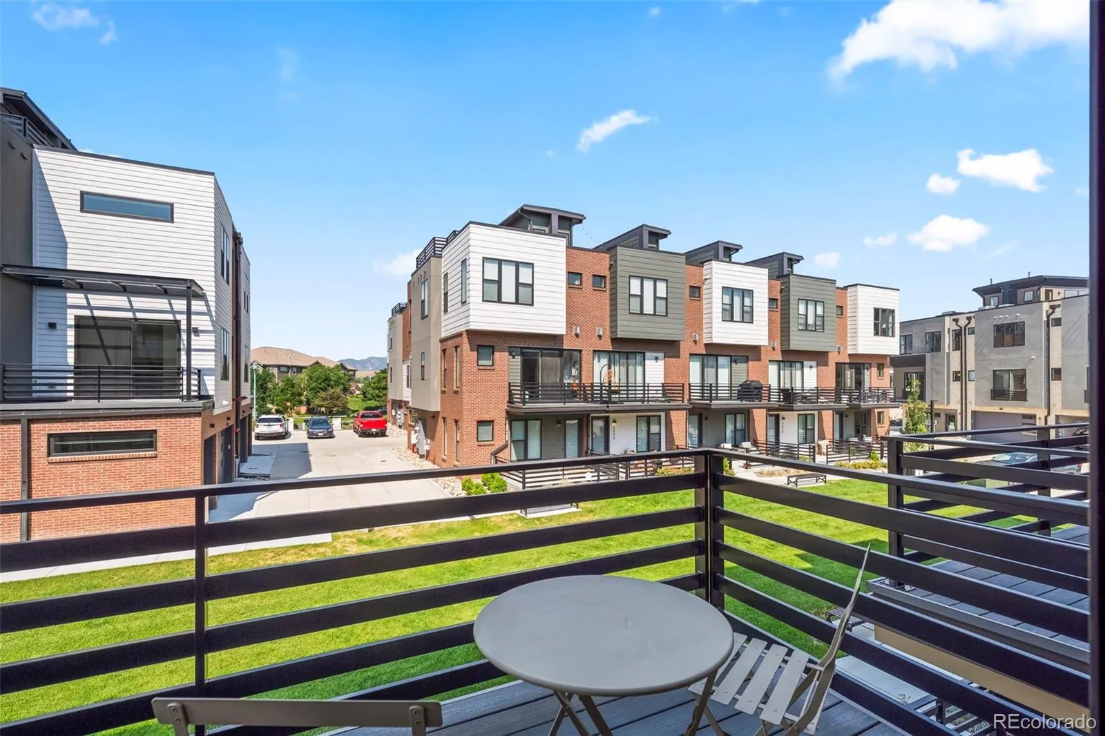 Welcome to 2673 Nicholas Way in Montmere at Autrey Shores, a lakefront community in Superior. Designed for modern living and effortless comfort, this contemporary 3 bedroom, 3.5 bath residence offers nearly 1,850 SQFT of thoughtfully curated space across three levels, highlighted by upscale finishes and stunning Flatiron views showcased thru oversized windows and multiple outdoor living areas. The open-concept main-level featuring soaring 10-foot ceilings and a chef-inspired kitchen that seamlessly connects the living and dining areas. The kitchen is appointed with a large waterfall quartz island, stainless appliances, pantry, and Samsung Bespoke 4-door refrigerator with beverage center. Each bedroom offers the privacy of its own en-suite bath, including the upper-level primary suite complete with a spa-like 5-piece bath and soaking tub, and convenient upper-level laundry with included LG Wash Tower. The first-floor bedroom & bath is ideal for guests, home office, or fitness space. Enjoy exceptional outdoor living with three private spaces: a fully enclosed front patio, a covered West-facing balcony, and a spacious rooftop deck with a gas hookup-ideal for entertaining, or relaxing under the Colorado sky with East/West views. The attached 2-car garage is fully finished with drywall, paint, epoxy flooring, and 220V outlet for EV charging. Additional highlights include upgraded wood flooring and tile thru-out (no carpet), custom-designed closets, designer window and door treatments & modern smart ceiling fans & lighting. Ideally located a short stroll to Autrey Reservoir, scenic trails, parks, open space, the Superior Community Center and Louisville Library Hub, Flatiron Crossing Mall, Lifetime Fitness, shopping, dining, and with easy access to both Boulder and Denver. Truly a place to call HOME!