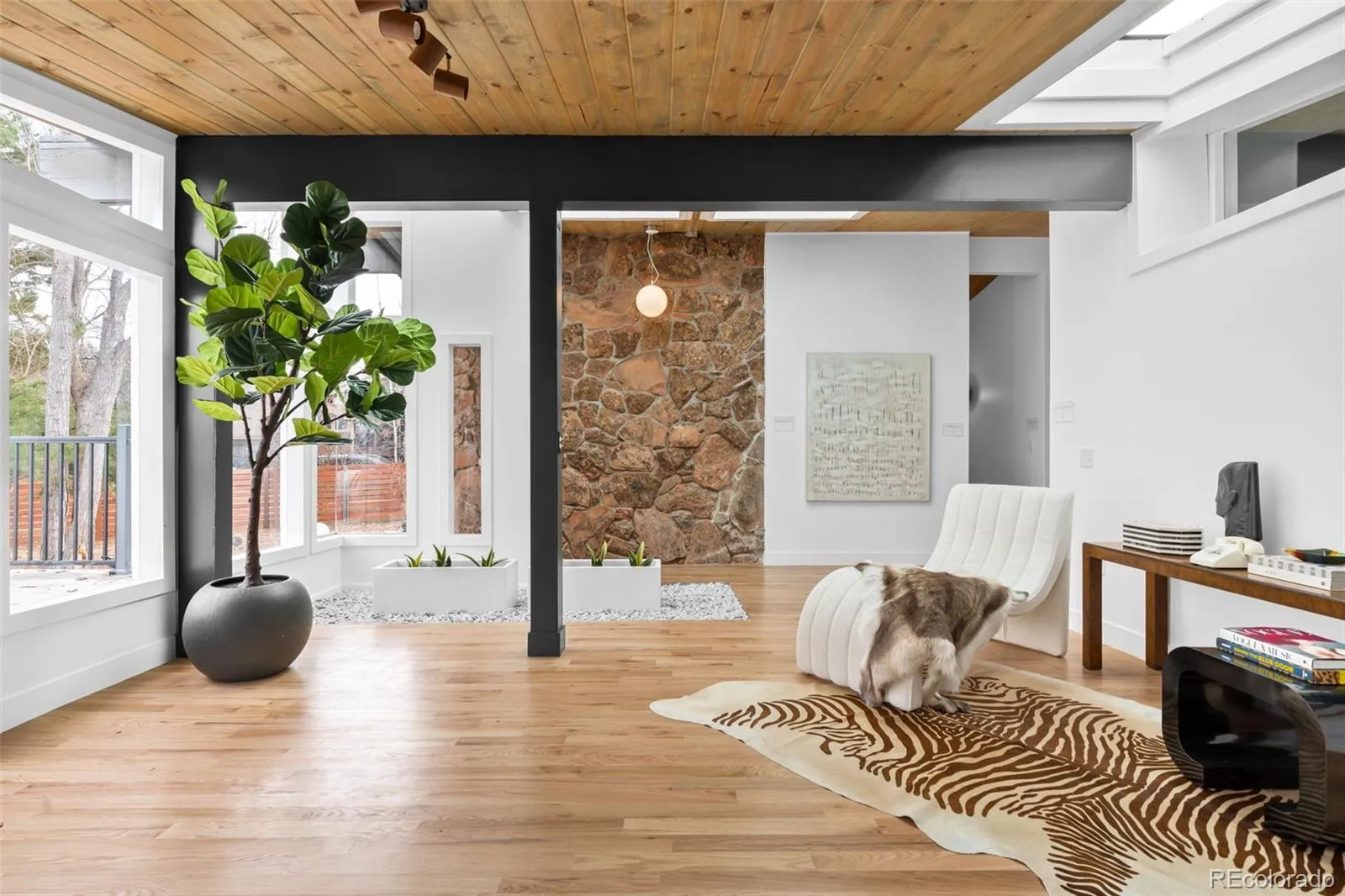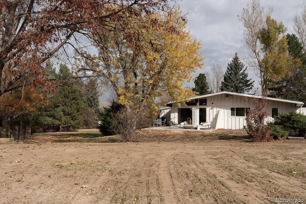 Welcome home to your Boulder oasis 10 minutes to downtown. Fully remodeled Mid Century Modern ranch. A beautiful 4 bedroom plus an office is waiting for you to bring it home for the holidays. The front living space is basking in natural light with tongue and groove vaulted ceilings, too many sky lights to count, and moss rock walls – it doesn’t get more mid century than that! Just off the front living space is a rooftop deck offering beautiful views of the sunset over Longs Peak (yes! Mountain Views!). The kitchen is not to be missed with quartz counter tops, 36″ gas range, and cabinets for days. You will love entertaining guests in your dining room over looking your nearly one acre lot, outfitted with a nano door to seamlessly blend the inside and outside. In the winter months make dinner cozy by firing up the wood burning fireplace. The rest of the main floor is dedicated to your primary suite and two guest bedrooms. The primary features double walk in closets and a period correct 4 piece primary bath. Two additional secondary bedrooms and shared hall bath round out the main floor. Heading downstairs to the basement you will find a huge flex space, big enough for a pool table and movie set up! Get cozy in this space too with the second wood burning fireplace. One additional bedroom and one office space occupies the basement along with the 3/4 bath and dedicated laundry room. Stepping outside into your own oasis you’ll find tons of mature trees, a yard big enough to hose football games, pickle ball court, or both! On this nearly 1 acre lot the possibilities abound. Brand new septic and sewer line 2025, Roof replaced in 2024, new hvac, new well pump etc! Buyer and Buyer agent to verify any and all information used for advertising, and deemed important to them. Permits available on city/county website, all finals have passed, for Buyer and Buyer Agent to review. Square Footage measured by Licensed Appraiser.
